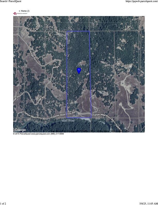 40 South-facing acres in Mad River, CA with 700ft. of Mad River frontage, bordering National Forest land!! Here you will find forested terrain, space for open grazing, and abundant privacy. This property is ideal for off-grid living, recreation, or agriculture. No structures or utilities—ready for your vision! Peaceful, secluded, and rich in natural beauty, this is a wonderful opportunity to own property in Humboldt County.