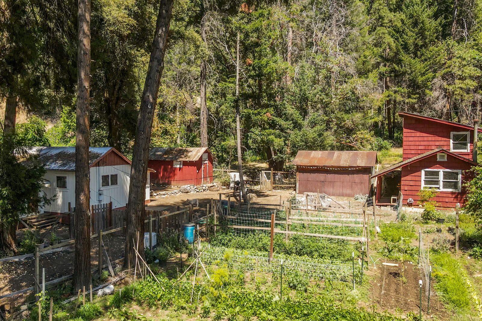 Discover a rare investment or multi-family living opportunity with three separate living units on a picturesque .43-acre parcel in Del Loma, bordering U.S. Forest Service land and fronting the tranquil Pelletreau Creek. The main residence offers approx. 950 sq ft with a full kitchen, living room, dedicated laundry room, one bedroom, and one bathroom-ideal for an owner's unit or long-term rental. The second unit is a charming 309 sq ft space with its own kitchen, bedroom, living area, and bathroom-perfect for guests, extended family, or rental income. The third unit, at 286 sq ft, features a cozy layout including a kitchen, living room, bathroom, and a lofted bedroom, giving it a unique, cabin-like appeal. Additional features include:•Two large storage buildings•Chicken coops for your homesteading needs; Established garden areas ready for planting; Creek frontage from Pelletreau Creek; Easy access right off the highway. Whether you're looking to live in one unit and rent the others, host vacation rentals, or build your own self-sufficient mini-homestead, this property offers flexibility, income potential, and natural beauty in equal measure. Two septic systems service the property.