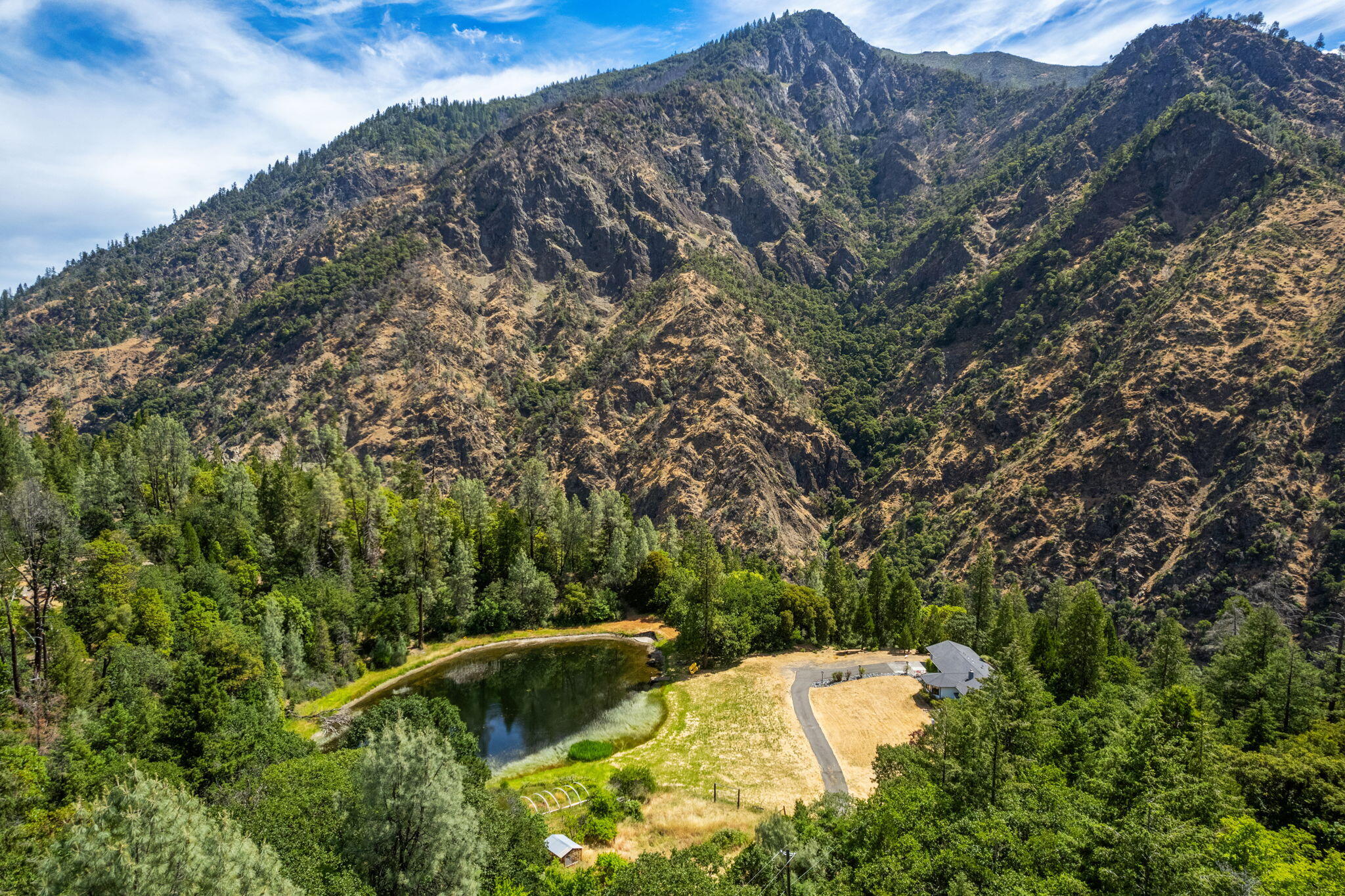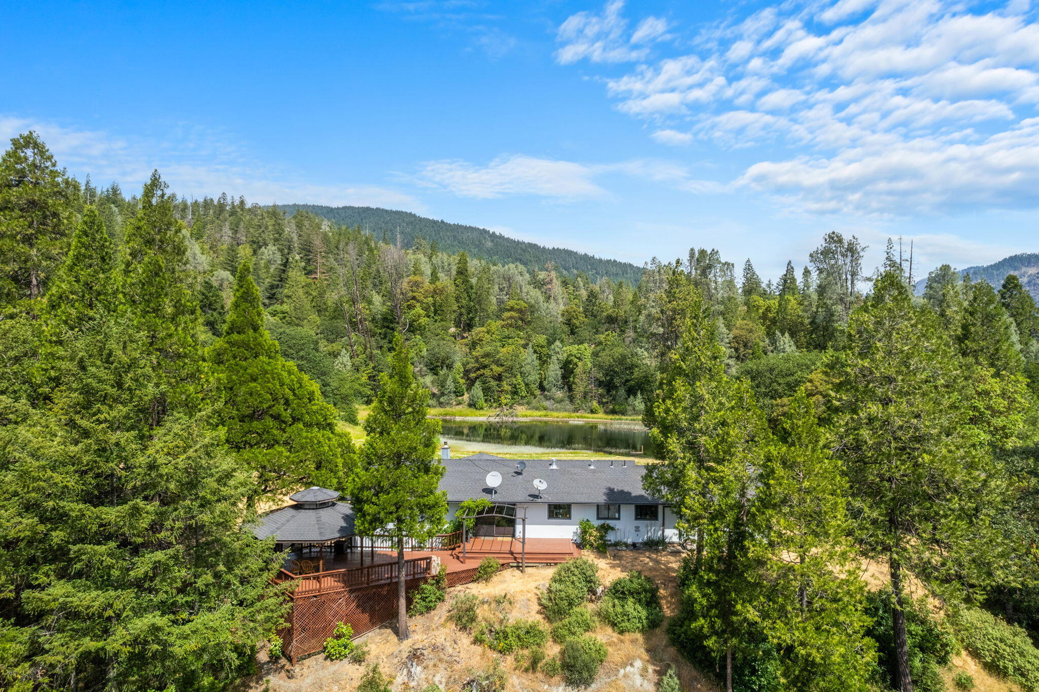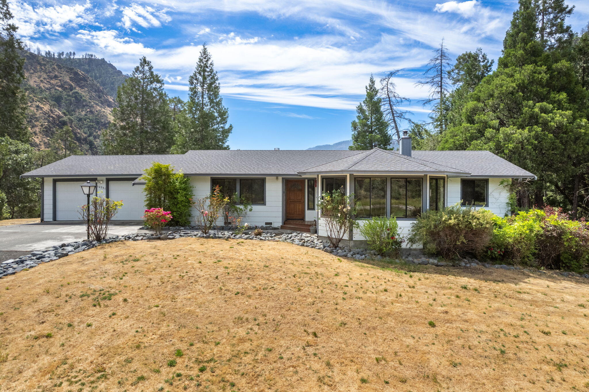 Perched above the Trinity River, this stunning property offers privacy and breathtaking views of Ironside Mountain. The 3-bed, 2.5-bath home includes an oversized attached garage with a bath, cold storage below, and a detached 30x40 shop with two 12-ft roll-up doors. Utilities include public electric service, propane, and a private well and spring for water. Here you can enjoy gardening by the pond, or an adventurous and steep hike to the river to a secluded sandy beach for a swim in the emerald waters. Or, simply unwind with a book on the deck while soaking in the nature that surrounds. Whether you're seeking a full-time residence or a mountain getaway, this property combines the best of Trinity County living - water, wilderness, and wide open skies.