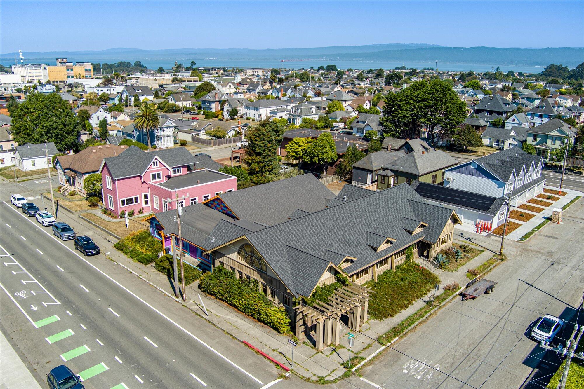 A remarkable property located just blocks from Downtown Eureka. This former church, originally built by Franklin Georgeson in 1914 with an addition in 1966, features rich wood details from the open truss ceilings to casings, down to the fir flooring and beautiful stained glass details Offering a combined 8,280 sf the two buildings are connected via the narthex but can easily be separated. Recent upgrades to this historic property include new 50-yr roof, double paned windows throughout, electrical, including wiring and LED fixtures, security system, along with various hardware and fixtures throughout. Zoned R3, allowed uses in addition to high density residential include care homes and day care facilities. Other uses such as civic, government, instruction and assembly allowed with CUP.