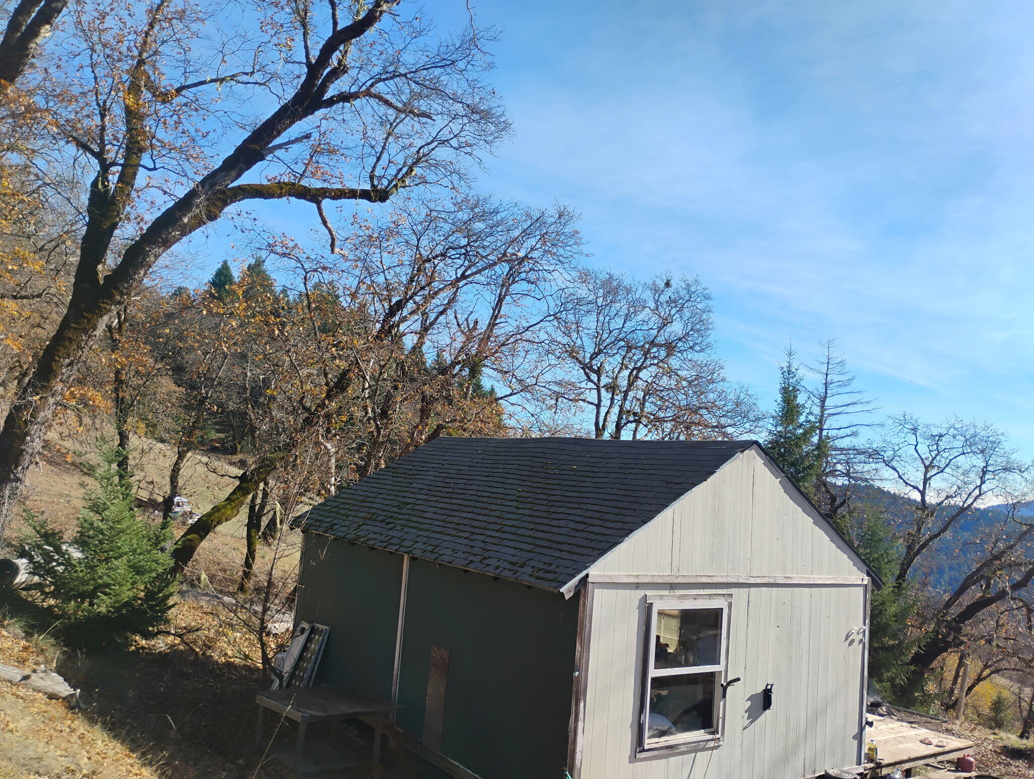 Nestled on forty serene acres, this property is wrapped in the beauty of oak forest, with ten acres of old-growth oaks crowning the top of the land. A year-round artesian spring flows into a spring box and gently gravity-feeds fresh water throughout the property. Two quiet ponds, nine water tanks, and a generous 30,000 gallons of storage make the whole place feel abundant and self-sustaining. A charming 24' × 16' cabin with a loft sits tucked among the trees, warmed by a propane fireplace and kept comfortable with solar power and a solar-driven fan. The propane fridge, cozy layout, and simple comforts make it a perfect retreat. Nearby, a brand-new septic system and a level pad are ready for an RV or the home of your dreams. For growing, there are four greenhouses totaling 6,000 sq. ft. with mixed lighting and dep tarps, plus 12,500 sq. ft. of fenced outdoor garden spacewith permits allowing up to 18,500 sq. ft. The garden area is fully fenced, with 150 sturdy metal cages ready for plants. Everything is set up to feel organized, peaceful, and productive. The entire property basks in gentle southern light and looks out over the beautiful Mad River, sitting just above the fog line for sunny mornings and glowing sunsets. The river is less than five minutes away, offering an easy walk or quick drive to a favorite swimming spot. Tucked behind two locked gates and with only one neighbor, the land feels private, quiet, and deeply calming. Your own peaceful sanctuary in nature.