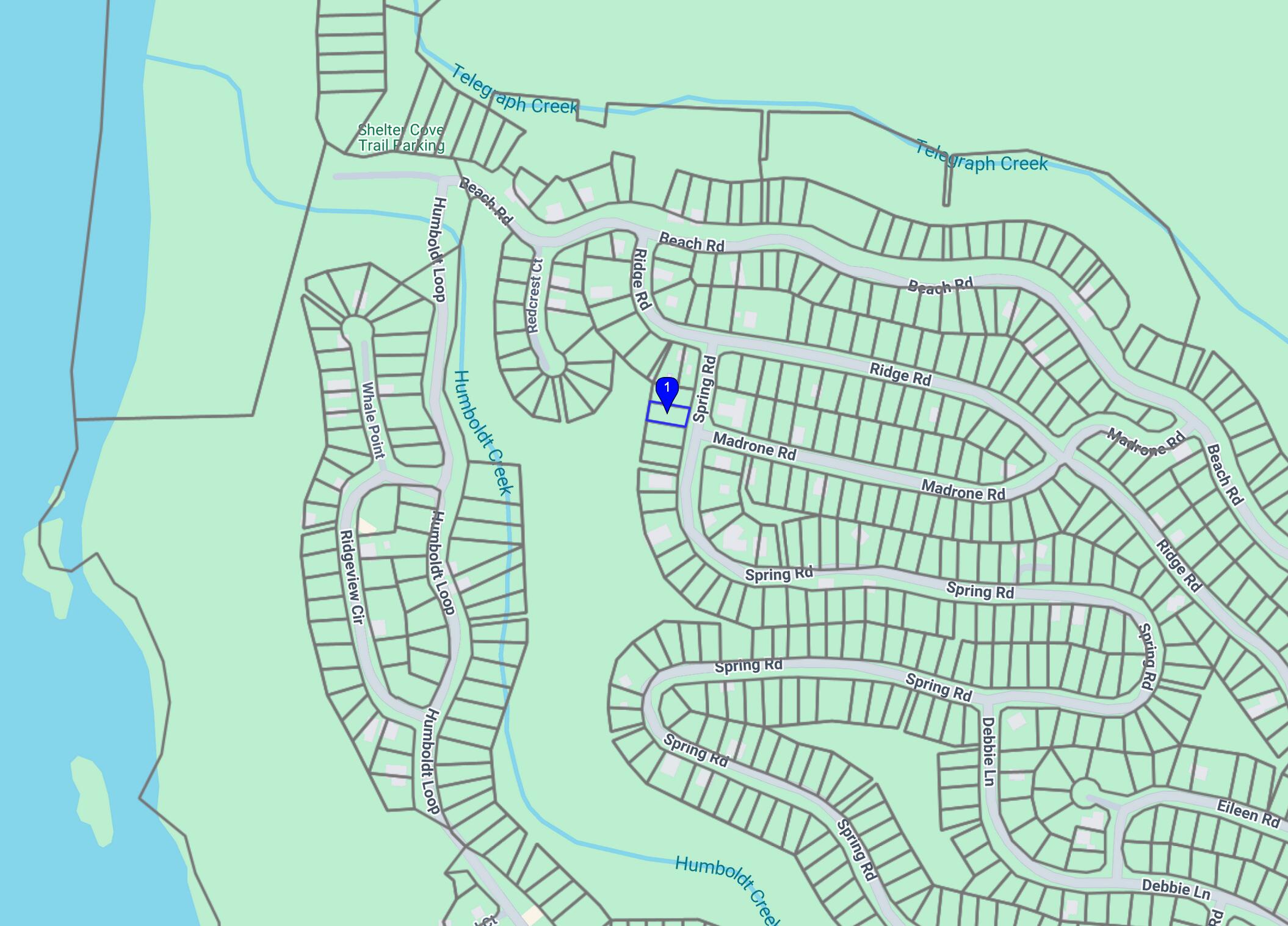Prime 0.13-acre lot in Shelter Cove—an emerging destination on California's Lost Coast. Surrounded by cliffs, black sand beaches, and redwoods, this vacant parcel offers strong potential as a vacation rental, peaceful retreat, or long-term investment. Utilities are available at the street or nearby. Minutes from beaches, golf, restaurants, a brewery, the airstrip, fishing, surfing, scenic trails, and breathtaking views. Zoned residential with no HOA, low taxes, and growing tourism. Enjoy unmatched access to nature with the comforts of a quiet, close-knit coastal community. Spend your mornings watching waves crash along the shore, your afternoons hiking the iconic Lost Coast Trail, and your evenings enjoying radiant sunsets followed by stargazing beneath pristine skies.
