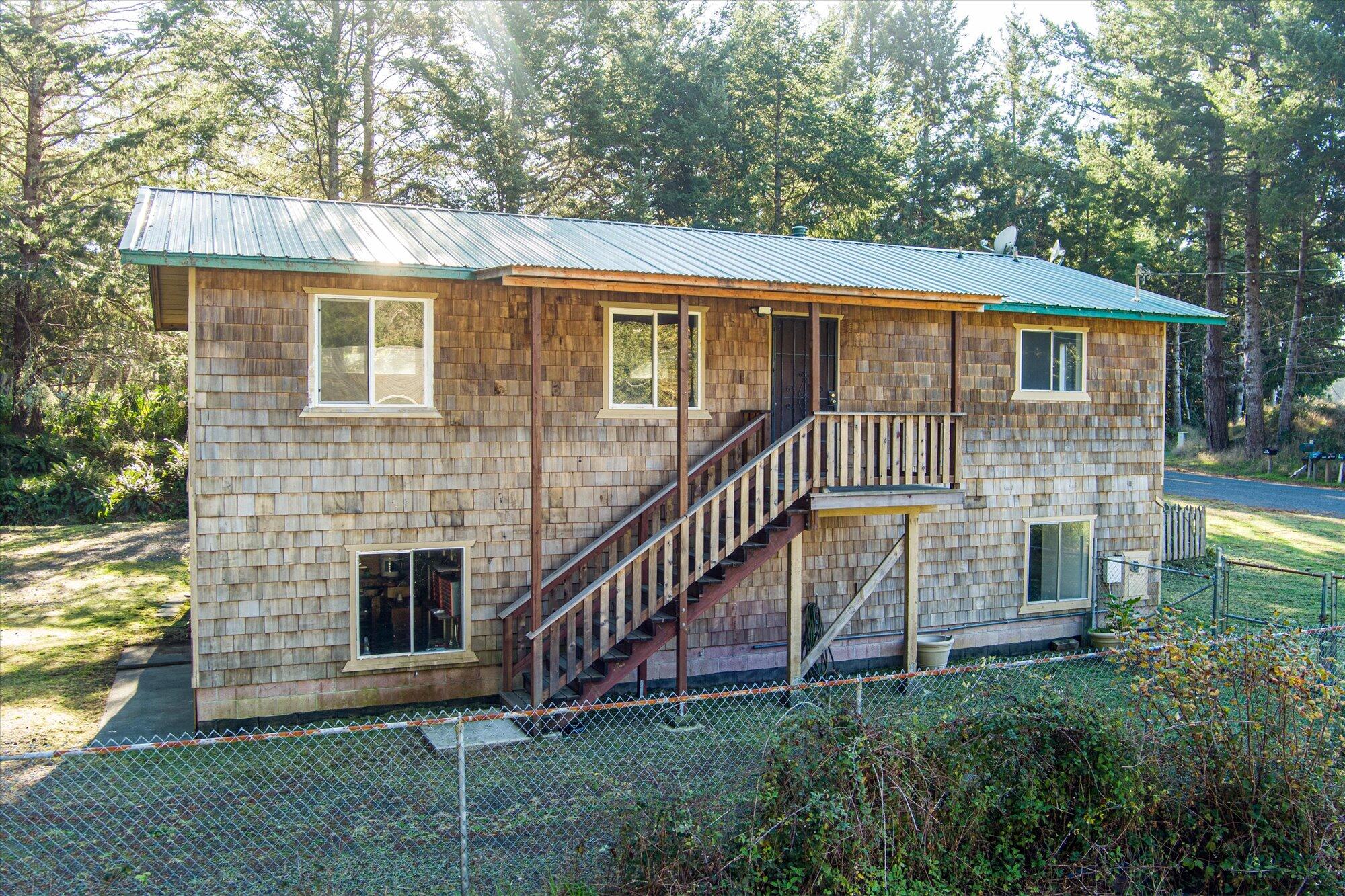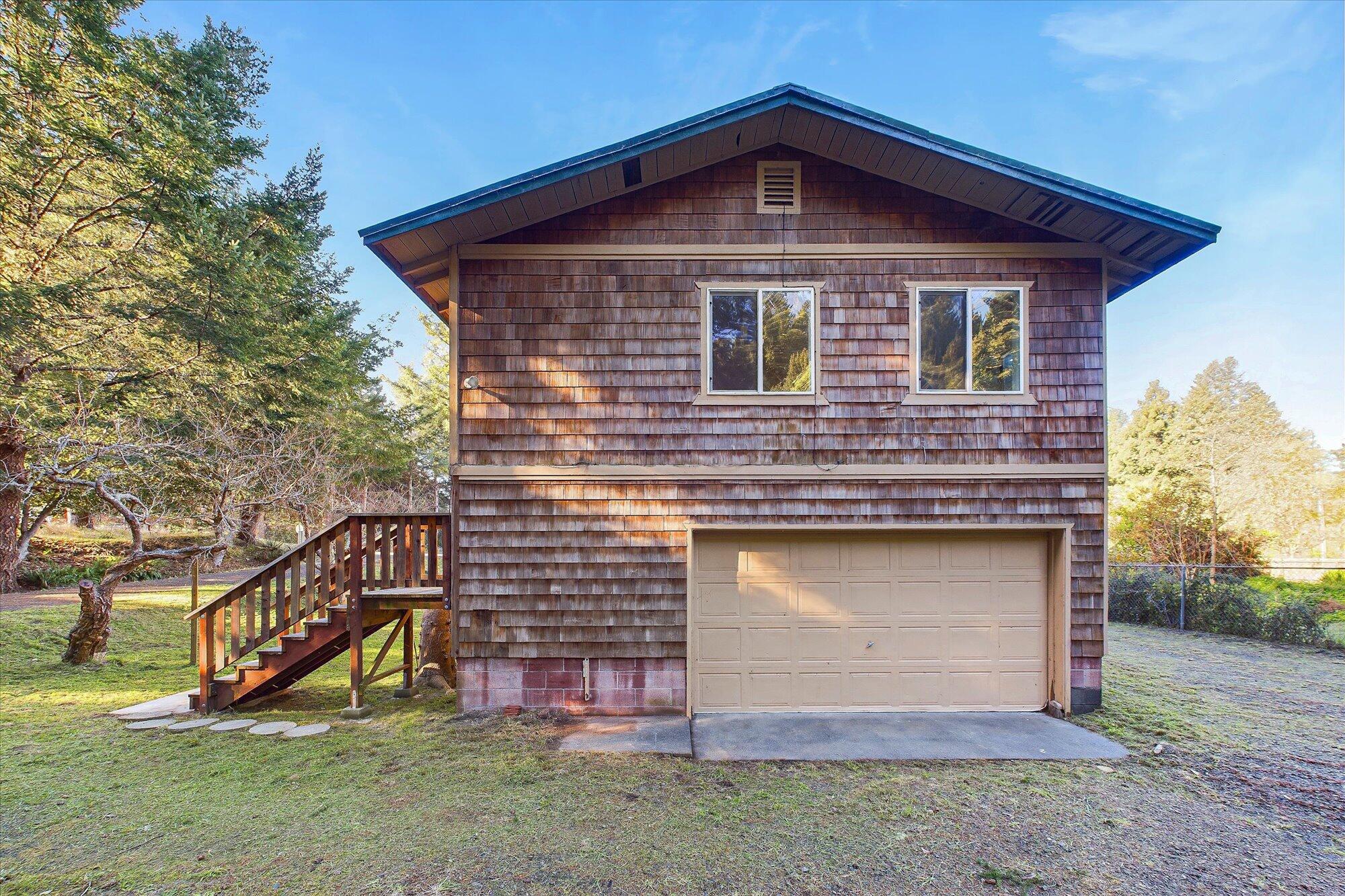 Take advantage of a rare opportunity to transform it into your ideal dream home or vacation rental retreat. Offering a simple, functional layout, this property is a true blank canvas ready to bring your vision to life—all in an unbeatable location. Situated on a generous double lot in beautiful Shelter Cove, the property provides ample space for RV parking, room for a boat, and plenty of flexibility. The home showcases an old-growth redwood frame with a classic redwood shingle exterior, delivering a timeless oceanside aesthetic. The upper level features the main living area with an open-concept design, a rustic coastal double-galley kitchen, and a partial blue-line ocean view. This level also includes a spacious bedroom, full bathroom, and convenient laundry room. Built on a concrete slab with a cinder block stem wall and topped with a durable metal roof, the lower level offers ground-level access to a two-bedroom guest suite or in-law quarters. This space includes two private entrances, abundant storage, a laundry room, a half bath, and an attached garageperfect for golf carts, a hobby room, or workshop. Adding even more value, the property also includes a detached two-car garage built in 2004. This versatile home offers endless possibilities for full-time living, vacation use, or investment potential in a truly special coastal setting.