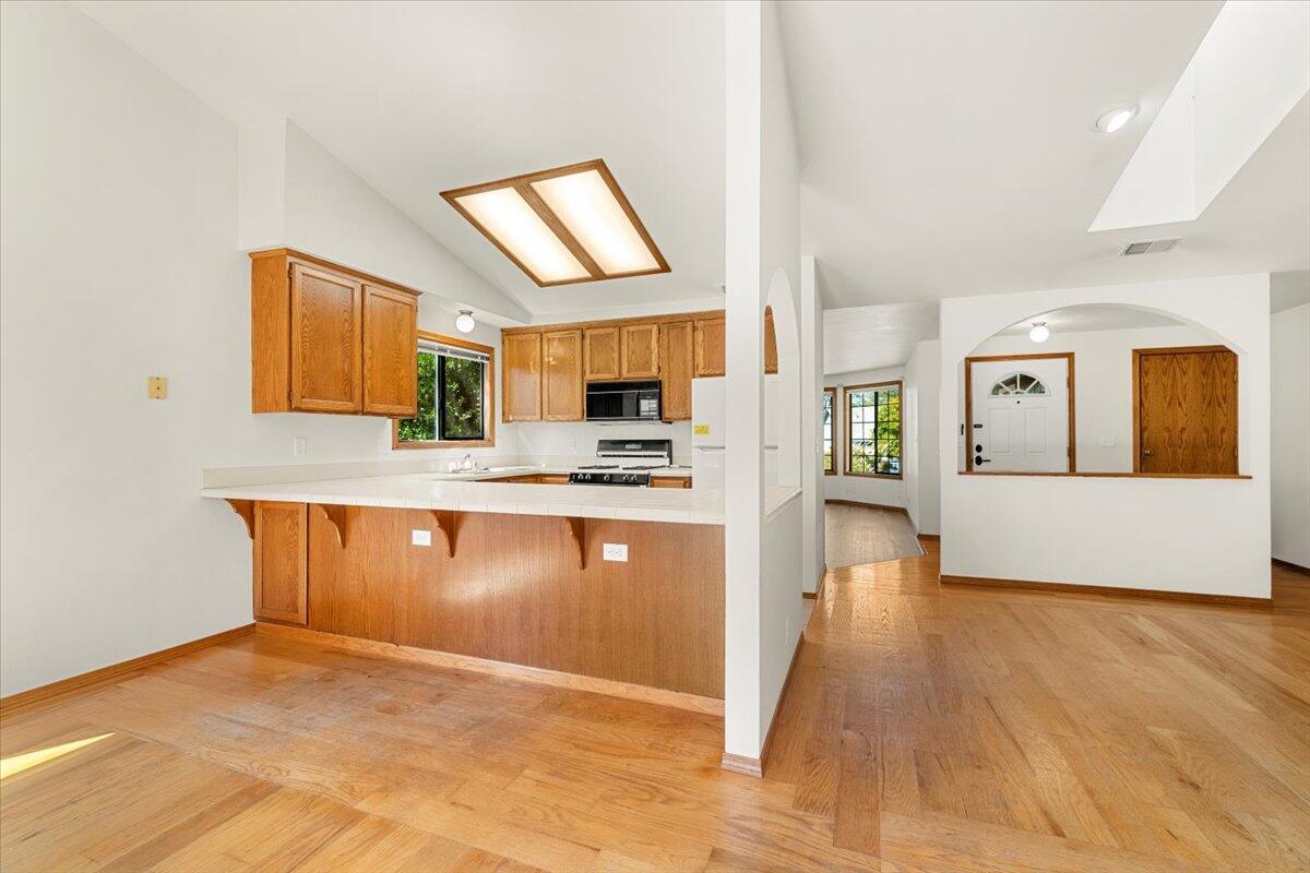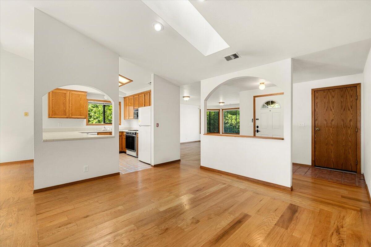 This beautiful, well-maintained home sits on a spacious 0.23-acre lot, offering plenty of room to enjoy your south-facing yard and newer deck. Located on a quiet street, this 3-bedroom, 2-bathroom home features a fantastic yard, fully paid solar system to help offset monthly electric bills, and a 4-year-old roof for peace of mind. Step inside to an inviting open floor plan highlighted by arched wall accents, vaulted ceilings, skylights, oversized bedrooms, and hardwood flooring. The separate living room/den provides the perfect space for a home office or extra lounge space. Additional updates include a new furnace, water heater, carpet and a rear fence-making this home truly move-in ready.