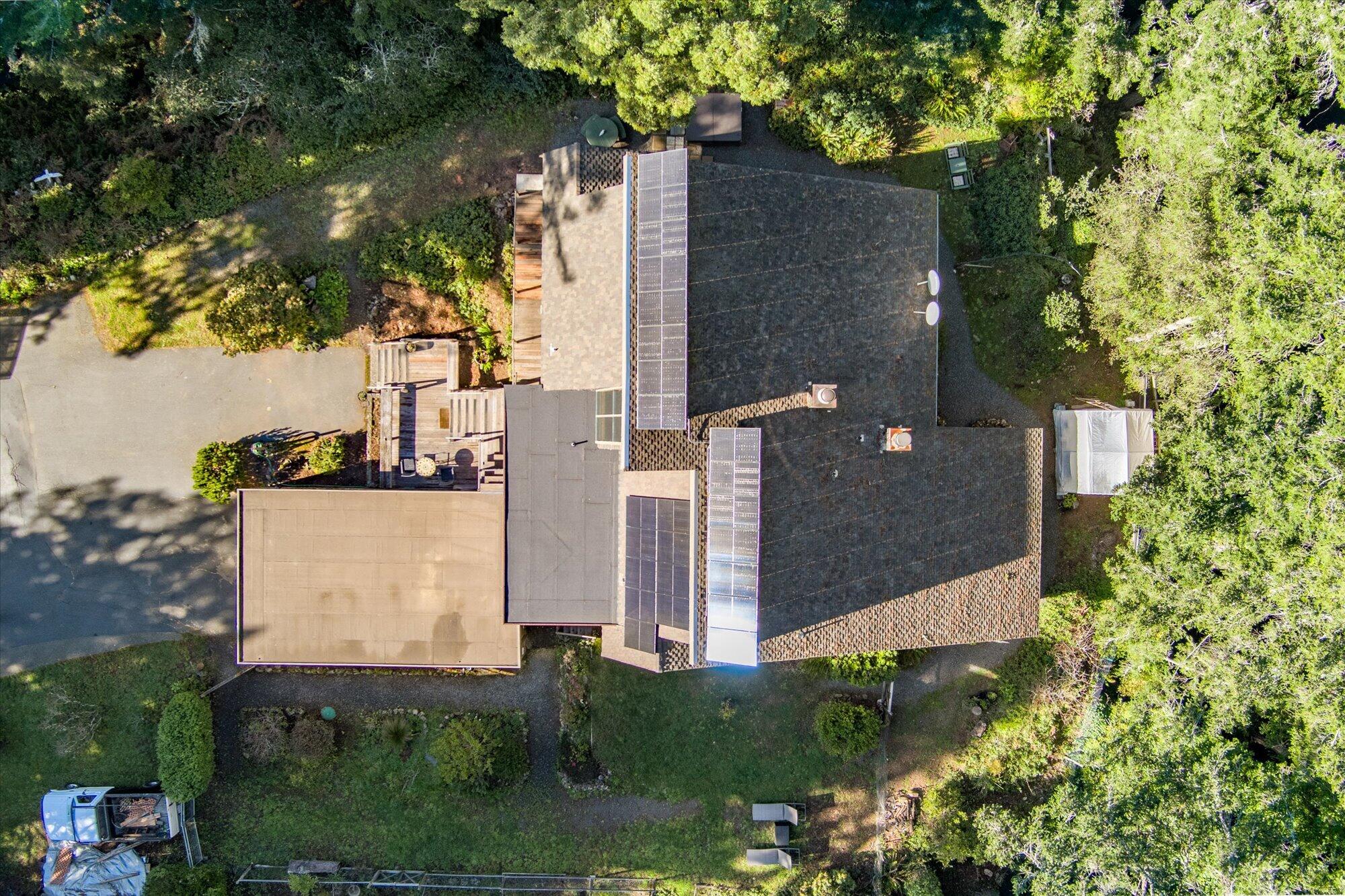 **ULTRA PRIVATE PROPERTY** Discover this beautifully unique, custom-built home nestled in a serene, park-like setting on 3.4 private acres in desirable Trinidad. You will appreciate The private, gated driveway that leads to this ample, 4-bedroom home. It is surrounded by a majestic redwood canopy, and is the perfect place to raise a family with Trinidad school just minutes away, or to retreat for a beach vacation in any season. Step inside and be greeted by floor-to-ceiling windows that flood the home with natural light and showcase breathtaking sunsets. The open-concept living space features rich hardwood and tile flooring throughout, soaring cathedral ceilings, and exposed redwood and cedar beams. The chef's kitchen is thoughtfully designed with custom cabinetry, a full-size side-by-side Sub-Zero refrigerator, double ovens, and a six-burner gas stove, perfect for entertaining. Additional amenities include a hot tub, solar panels with batteries, a new roof, central vacuum, a pool table upstairs, and a fenced area for horses, complete with a shelter along the main road. Check with Humboldt County to see if an additional structure at this location is feasible. This home blends natural beauty, craftsmanship, and privacy in one exceptional package. Don't miss the opportunity to own your own Redwood retreat just minutes from the charming town of Trinidad and the stunning Northern California coastline. Listing Broker and agents DO NOT guarantee the information in this MLS Listing is accurate. It is the duty of any person, buyer or entity using this MLS listing to exercise due diligence to independently verify this information.