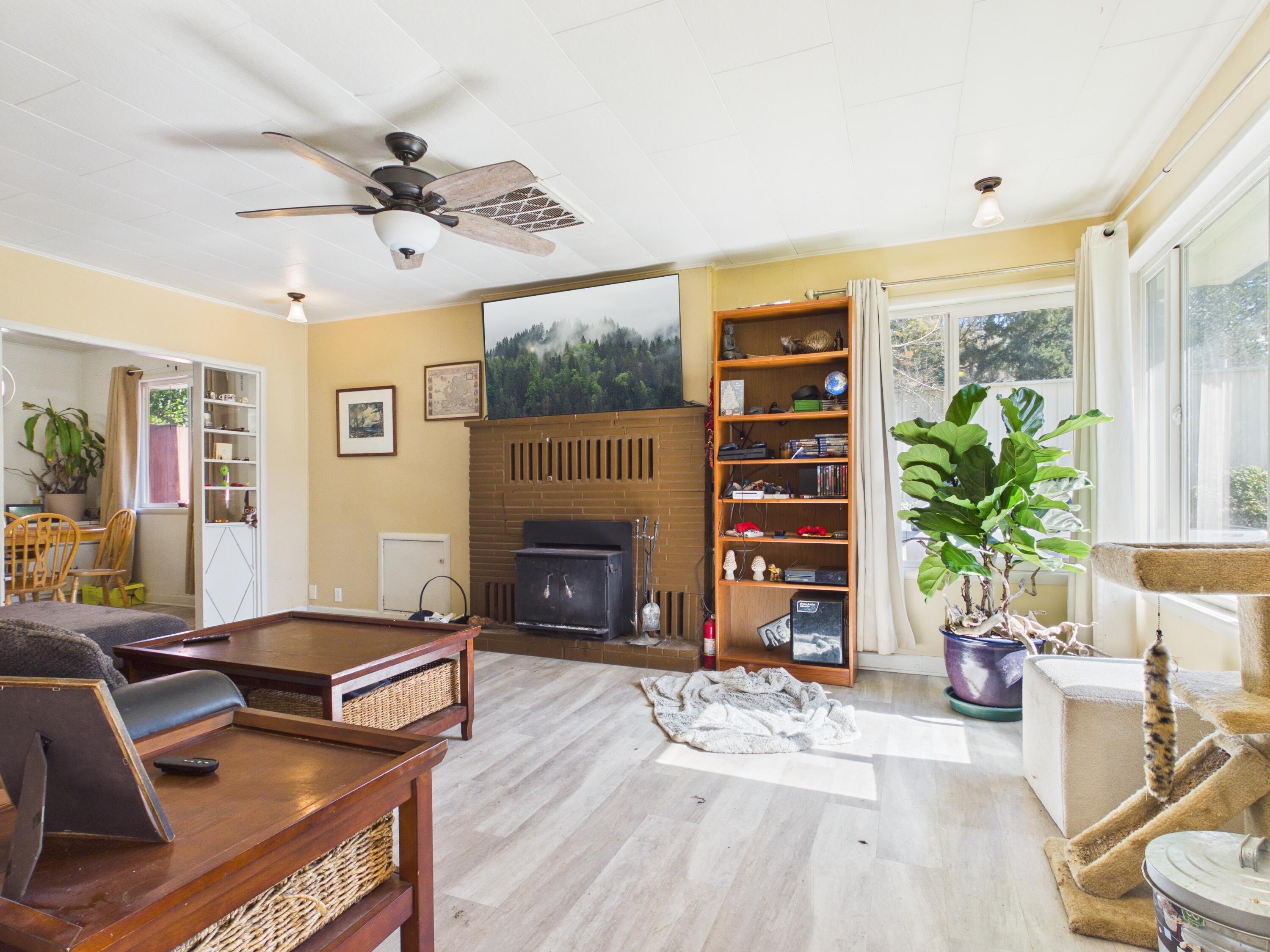 Double lot located on a quiet street in Redway. This three-bedroom, one-bath home offers a spacious living room, separate light-filled dining area, comfortable bedrooms, and indoor laundry. Remodeled recently to include new double pain windows, new kitchen countertops and freshly painted exterior. The front yard includes fruit trees and open space for outdoor enjoyment. The backyard features raised garden beds and a chicken coop.Conveniently located near local schools, the post office, and shopping, while offering a peaceful setting. Schedule a showing to see all this property has to offer!