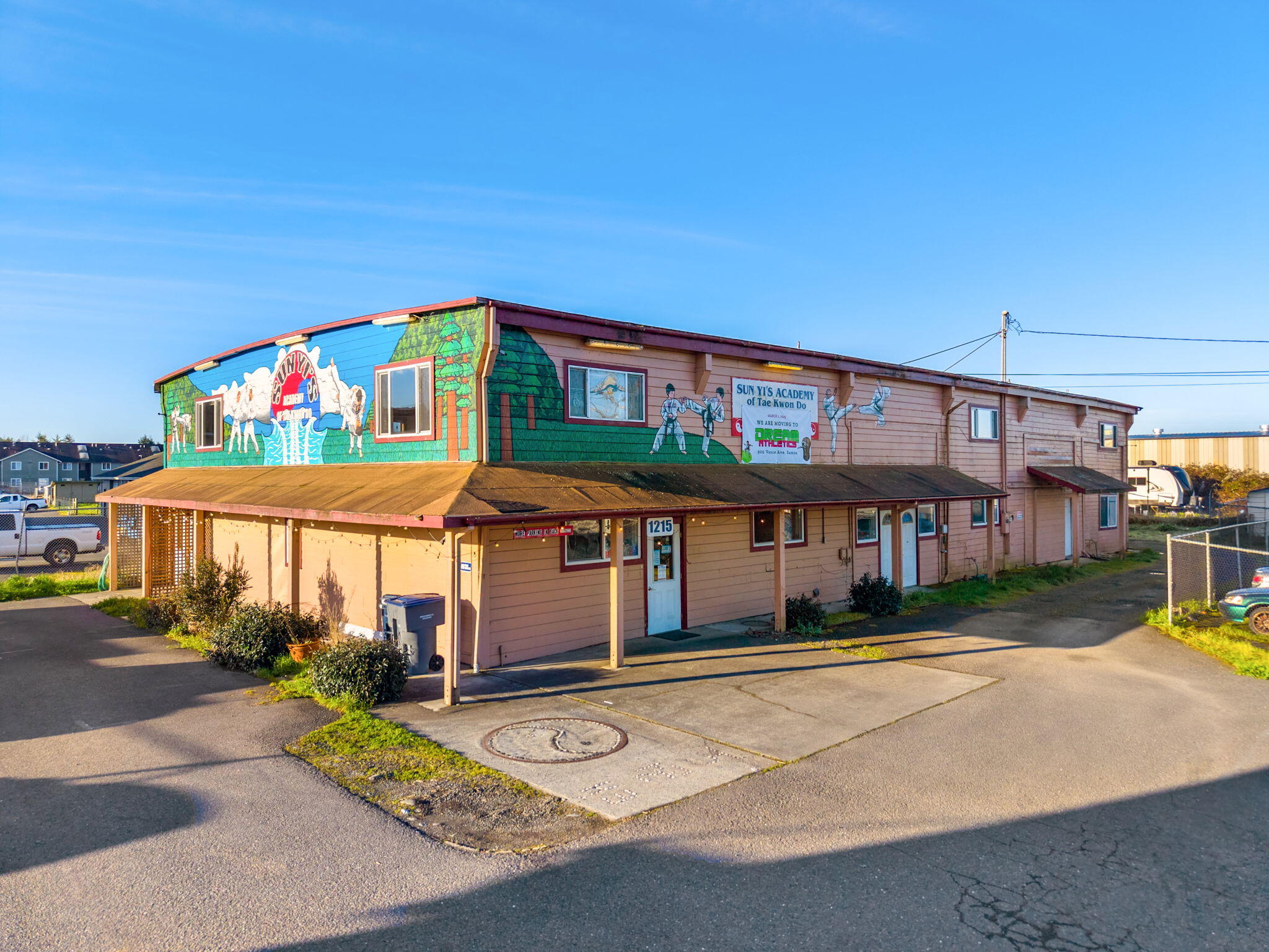 Great north Arcata location for this mixed use commercial building. Totaling 10,000 sf, this 3-unit, 2-story building is zoned Industrial Limited (IL). Most recently the home of a martial arts academy, the main unit features a reception area, kitchen, multiple private offices, gym and studio spaces, and 2 locker rooms. This would do well as continued fitness space or a variety of other uses including but not limited to carpentry, printing, and wholesale businesses There is a residential 1b/1ba apartment upstairs, and a shop/storage area with office, restroom and roll-up door, great for rental income or additional space for your business.