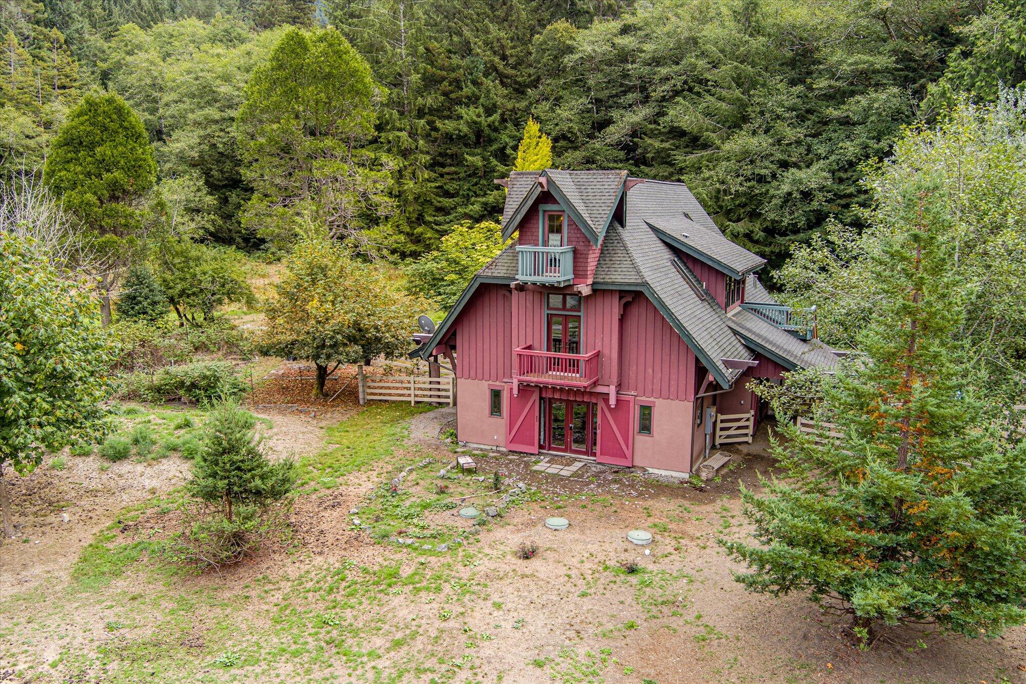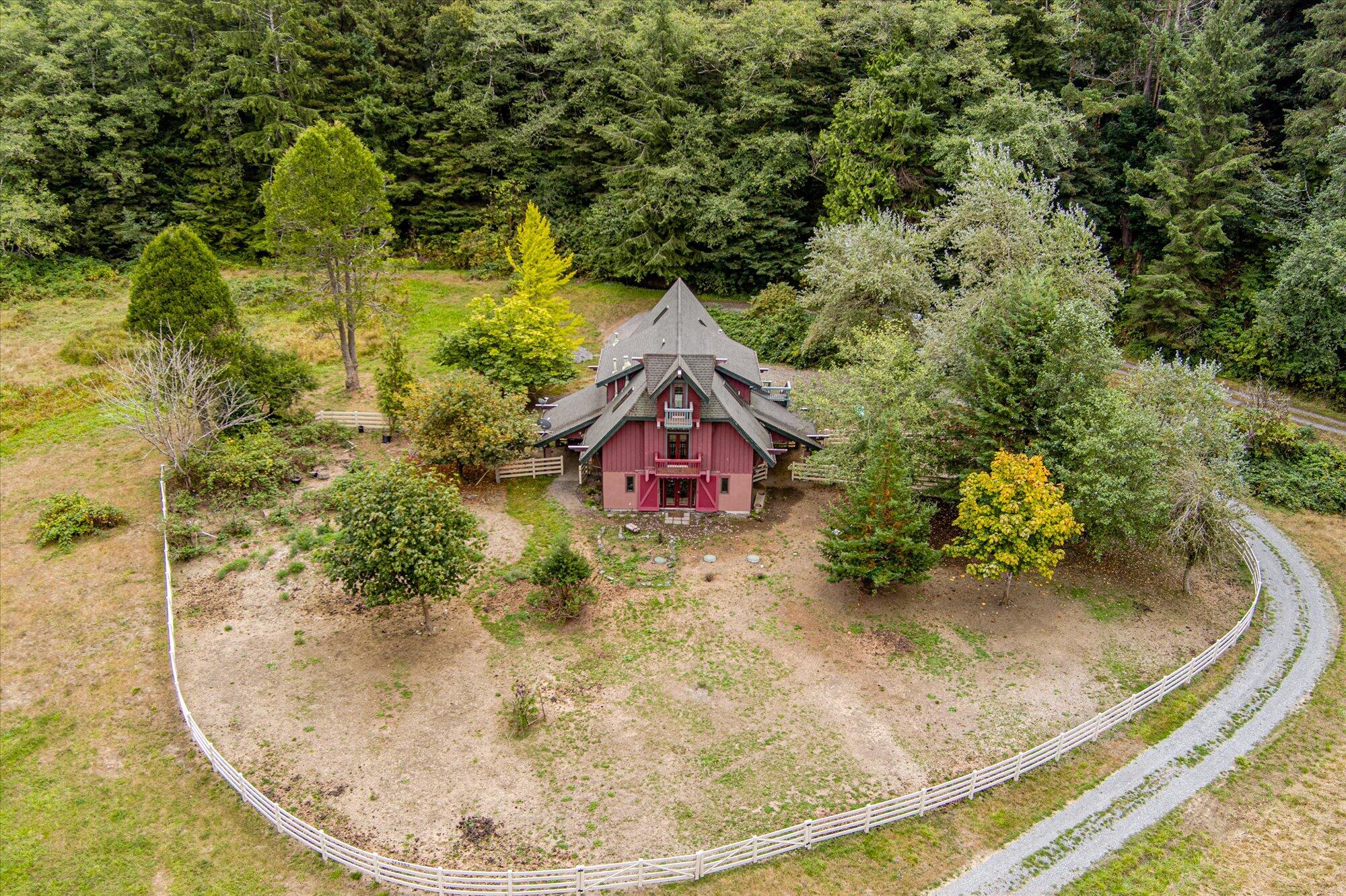 This distinctive tri-level custom residence is situated on approx. 3.6 acres surrounded by Redwood National Park and out the door access to Prairie Creek Redwoods State Park hiking and biking trails. The upper level presents a 1 bed/1 bath dwelling w/ two loft areas, its own kitchen space, old-growth white oak plank flooring and vaulted ceilings. The bathroom offers a luxurious experience with a soaking tub and shower, while the balcony affords exceptional views of wildlife and serene landscapes. The lower level encompasses a separate Granny Flat with its own entrance featuring two sleeping areas, a ¾ bathroom, an efficiency kitchen and private outdoor area + a balcony with panoramic views of the towering redwoods, seamlessly integrating interior comfort with the grandeur of the natural surroundings. Recessed lighting and dual-pane windows contribute to both comfort and energy efficiency throughout the residence. This property further includes a three-car garage, separate horse stables, and cross-fencing, offering extensive space for recreational vehicles, animals, and hobbies. This magical home has a wide variety of potential uses; multi generational living, income potential and possible short term rental. (has previously been a successful vacation rental) A truly unique opportunity to live among the redwoods and enjoy custom touches at every turndon't miss your chance to make this special home yours!