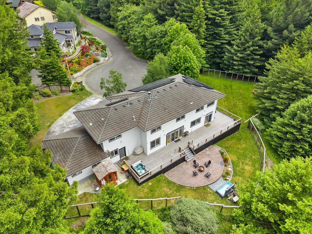 Refined Forest side Luxury in Woodland Heights! Privately situated at the end of a serene cul-de-sac and bordering the majestic Arcata Community Forest, this custom-designed Woodland Heights estate stands as the neighborhood's crown jewel. Set on its largest lot at 1.57 acres, surrounded by natural beauty, the home offers an exceptional blend of luxury, privacy, sustainability, and effortless indoor outdoor living. From the moment you enter, soaring ceilings and abundant natural light create a sense of openness and calm. The thoughtfully crafted floor plan features four spacious bedrooms, three of which have a large each with a walk-in closet, plus a versatile bonus room ideal for a home office, gym, studio, or guest suite. At the heart of the home, the chef's kitchen delivers both form and function with slate tile floors, an induction cooktop, dual Bosch dishwashers, double ovens, two sinks, hidden garbage receptacles, and a generous walk-in pantry. Formal and casual dining spaces make entertaining as comfortable as it is elegant. The spa-inspired primary suite provides a daily retreat complete with a jetted soaking tub, dual shower heads, and refined finishes. Upstairs, a dedicated laundry room with its own sink, ample counter space, and extensive cabinetry adds convenience and charm. Throughout the home, bamboo floors, granite countertops, and thoughtful detailing speak to craftsmanship and care. Step outside and discover your private sanctuary. A Finnish style sauna, soothing waterfall fountain, relaxing hot tub, and Trex deck encircling a cozy firepit lounge are all set against the quiet backdrop of the forest. The fully fenced, low maintenance yard maximizes both privacy and peace. Sustainability meets luxury with twenty five owned solar panels, a Tesla charger, concrete shingle roof, and Hardie board siding, offering durability and high efficiency living for years to come. A finished three car garage with epoxied floors, abundant built-in cabinetry, sink, and ample work surfaces provide both functionality elegance and storage rarely found at this level. Ideally located just minutes from Cal Poly Humboldt, the Arcata Plaza, coastal beaches, St Joseph and Mad River hospitals, and the local airport offering direct daily flights to San Francisco and Burbank, this home is perfectly suited for professionals, academics, remote executives, and creatives seeking a lifestyle rooted in balance. Here you can leave extreme heat, wildfires, and traffic behind while embracing towering redwoods, clean ocean air, and the serenity of a forest-side retreat.