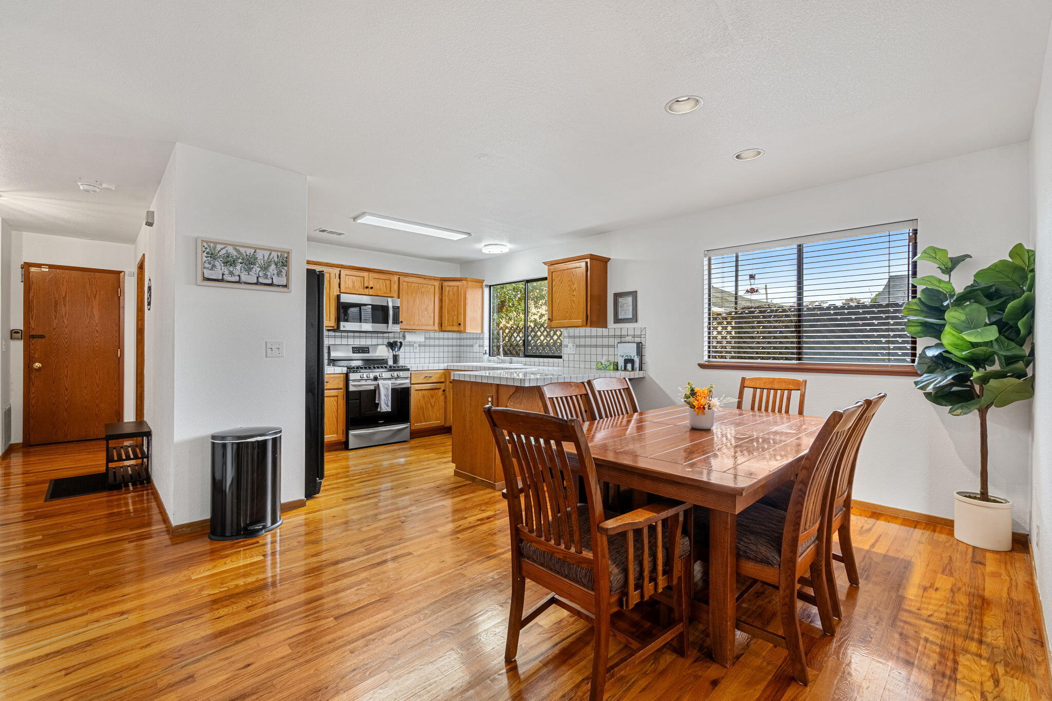 Down a long hedge lined driveway and through a secure gated entrance, a sense of calm sets in. You've arrived somewhere special. Nestled in McKinleyville's beloved Little Pond neighborhood, this two story home blends privacy, space, and comfort in all the right ways. Freshly painted and beautifully maintained, the home welcomes you with a charming covered porch and the sweet promise of fruit trees, apple and peach, lining the path to the backyard. It's the kind of place where summer evenings turn into barbecues under twinkling string lights and autumn mornings are made for coffee on the porch. Step inside, and sunlight greets you from every angle. To the right, a spacious living room offers the perfect spot to curl up with a book or host movie nights. To the left, a functional laundry room with a utility sink and convenient quarter bath makes daily routines feel effortless. No hauling laundry through the garage here. It's all inside and easy. The kitchen sits at the heart of the home, just past the entryway, connecting seamlessly to a light filled dining area and a generous walk-in pantry. Just beyond, the second living room awaits with a cozy wood burning stove and a modern ceiling fan. A sliding glass door leads out to the patio, creating an easy flow for entertaining and everyday living. Out back, you'll find the kind of outdoor space that brings people together. A built-in fireplace, barbecue area, and glowing string lights create the perfect setting for dinners al fresco and weekend gatherings with friends. Upstairs, all three bedrooms are tucked away for peace and quiet. The guest bathroom offers a clever split layout with the vanity separate from the shower and toilet, ideal for busy mornings when everyone's getting ready at once. The primary suite feels like a boutique hotel escape, complete with a dual sink vanity and its own private bathroom enclave. There's even an attached double car garage for all your bikes, beach gear, and storage needs. Living in Little Pond means being close to everything that makes McKinleyville so special. Top rated schools are just a few minutes away. The beaches, Moonstone, Clam, and Mad River, are calling for weekend adventures. Local shops, hospitals, and the scenic Hammond Trail are right nearby, too. This home isn't just well designed. It's well located, well loved, and ready for a new chapter. With room to grow, space to breathe, and the comfort of knowing you're home, it's the perfect fit for anyone looking to put down roots in Humboldt. This home is offered as a Certified Pre-Owned property, including a pre-listing home inspection, seller disclosures provided upfront, and a one-year home warranty for the buyer, offering added transparency and peace of mind. To make the move even easier, the seller is offering up to a $10,000 credit to the buyer at closing, which may be used toward closing costs, interest rate buy-down, or buyer selected improvements, subject to lender approval & and offered with an accepted full price offer.