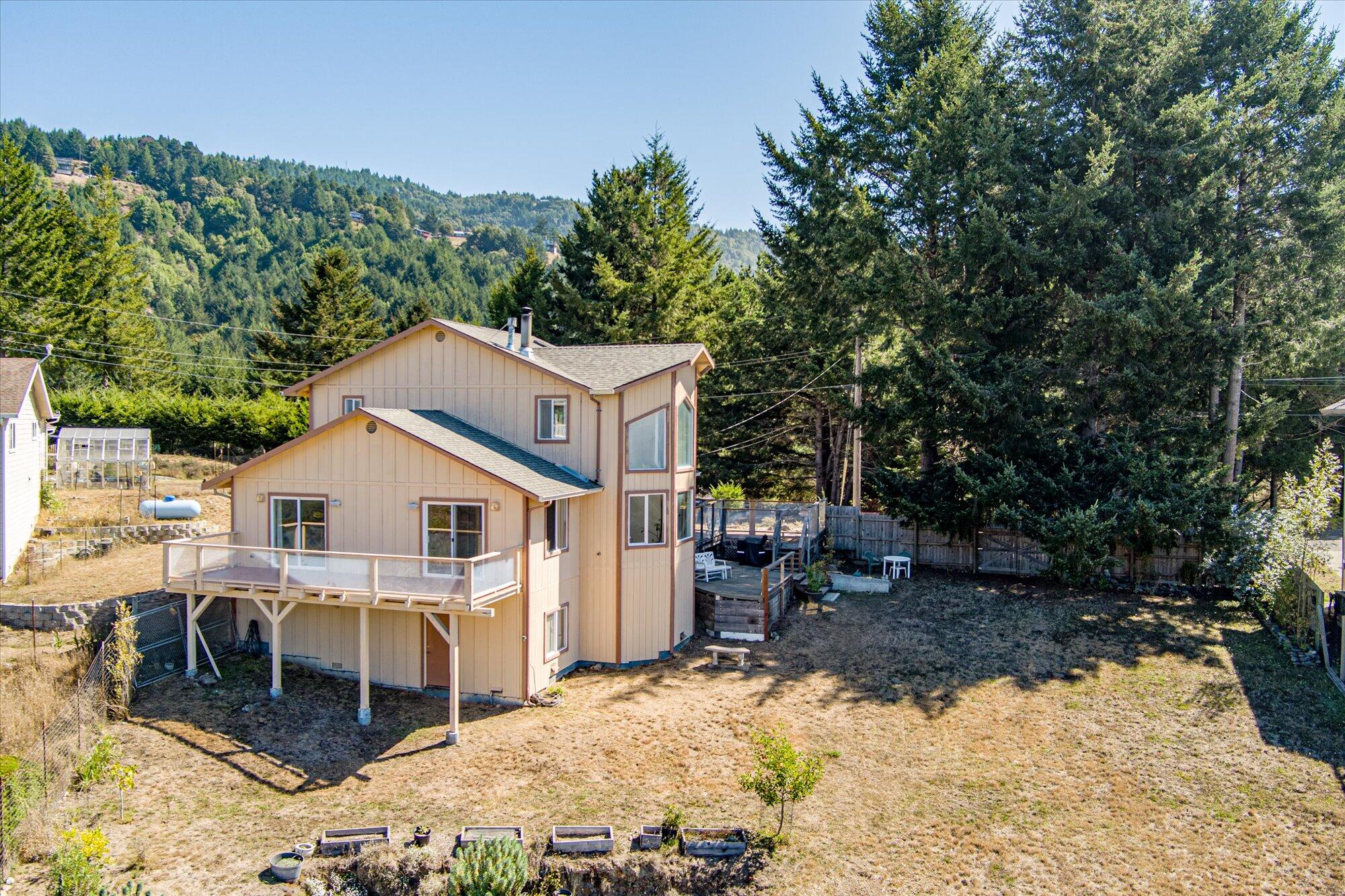 Welcome to 14 High Ct in coveted Shelter Cove, a serene coastal retreat situated on a double lot at the end of a quiet cul-de-sac, offering stunning ocean views & privacy. Inside, the primary suite occupies the entire upper level with his-and-hers closets, dual sinks, soaking tub, shower, and a skylight above the bed. On the main level, the living area offers stunning ocean views through floor to ceiling windows, both a dual-sided fireplace and a propane heater, a fabulous kitchen with Italian marble countertops and floors that opens into the dining area with deck access. You'll also find a 2nd bedroom with slider to ocean view deck, a 3rd bedroom that shares fireplace with living room and ocean view deck with 2nd bedroom, a full bath, and laundry. Outside, the expansive, .34acre, fenced yard gets excellent afternoon sun- great for gardening and pets- and includes two small green houses.An attached 2-car garage with direct entry to house adds convenience. Whether you're looking for a full-time residence, a peaceful getaway, or a vacation rental, this Shelter Cove gem offers incredible views, quiet surroundings, and room to grow. All furnishings and appliances included in sale for easy transition.