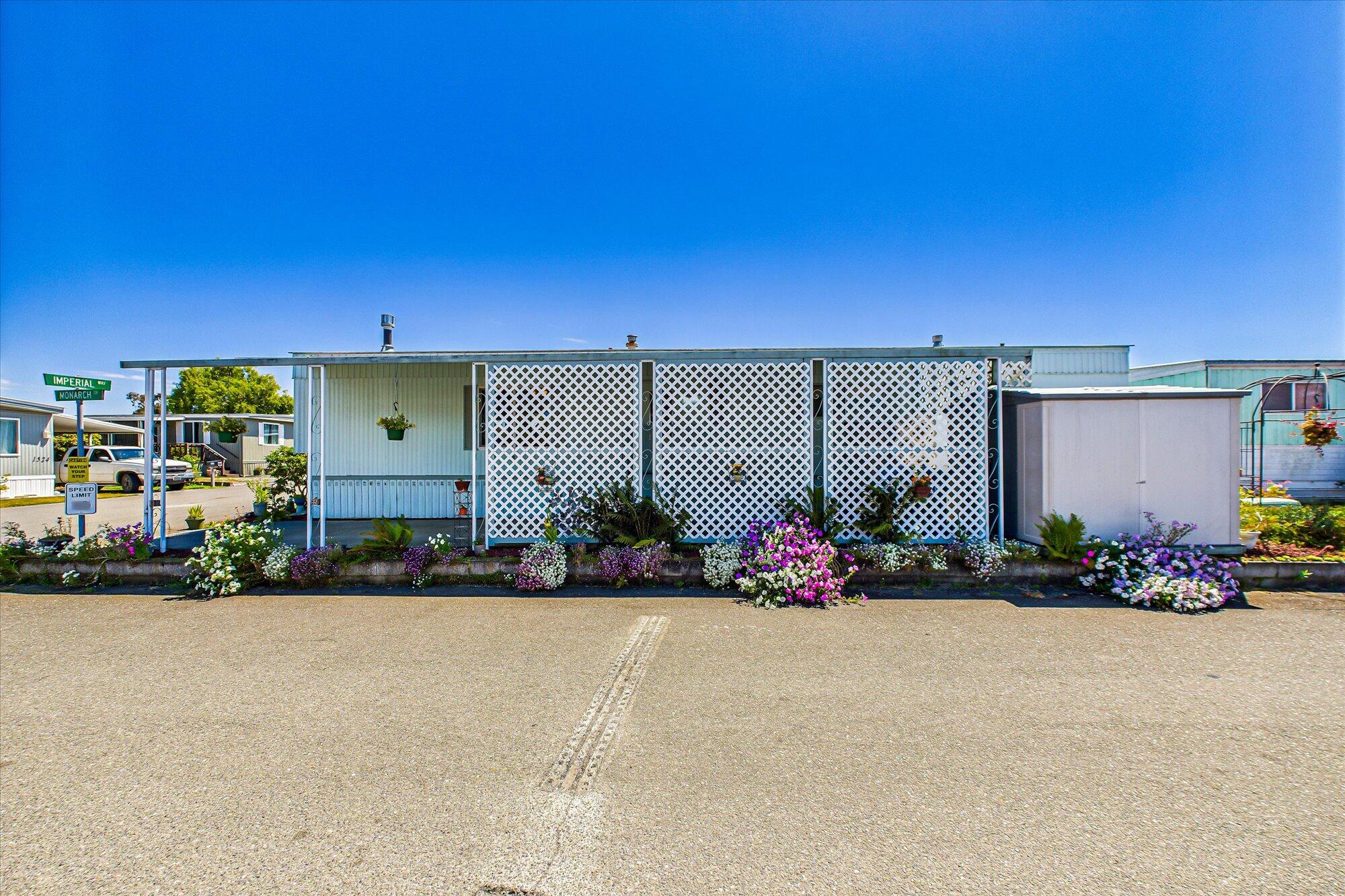 Beautifully maintained and offered fully furnished, this 2-bedroom, 2-bath home in Royal Crest Senior Park provides 1,320 sq ft of comfortable, easy living. Nearly everything is included—furniture, cookware, dishes, linens, patio furnishings, and potted plants making it truly move-in ready. A spacious pantry and two storage sheds add everyday convenience, while colorful flowers and a well-established garden bring charm and life to the outdoor space. The carport features a drop-down gate at the steps, allowing for effortless grocery unloading directly into the home. A great opportunity showcasing true pride of ownership.