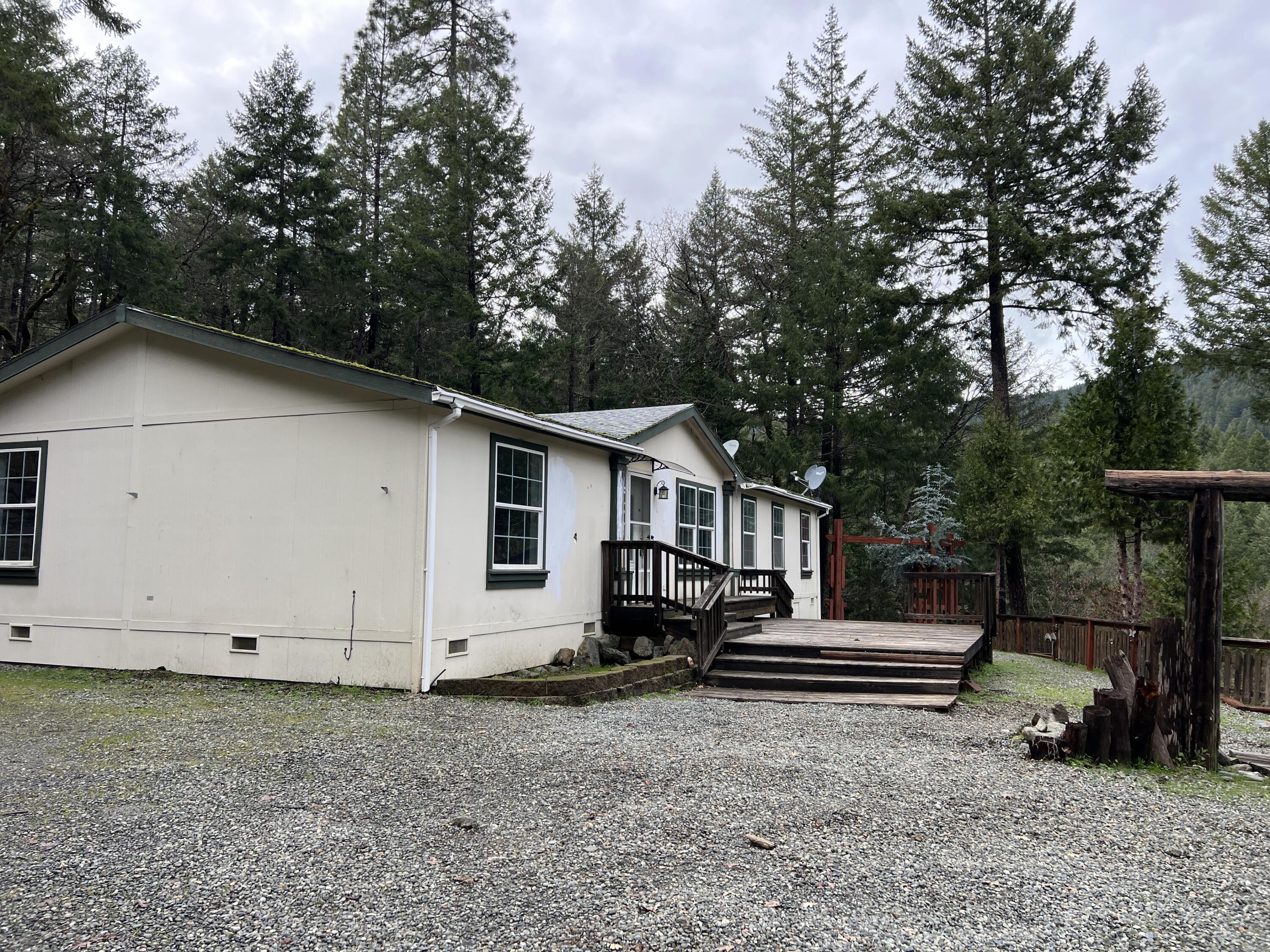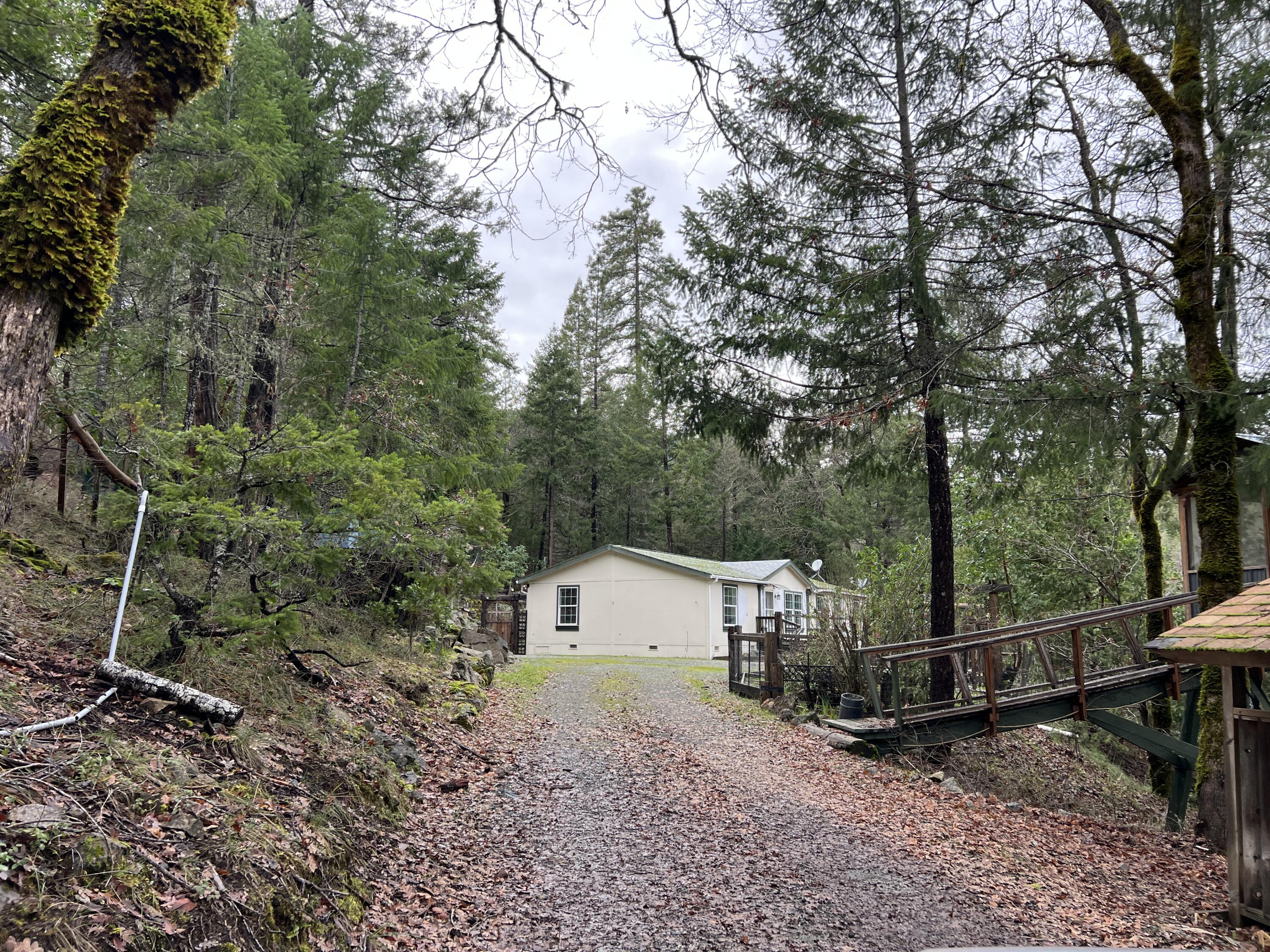 Are you looking for privacy and beautiful views. Look no further, it's right here in Burnt Ranch. You'll find this 2006 Manufactured home with a 433a permanent foundation waiting for your personal touches. This property features out buildings, a tree house, small garden space, fire pit, a bocce ball court, RV parking and a unique foot bridge over the creek. This property is waiting to be your own private Oasis or your Friends & Family gathering spot.