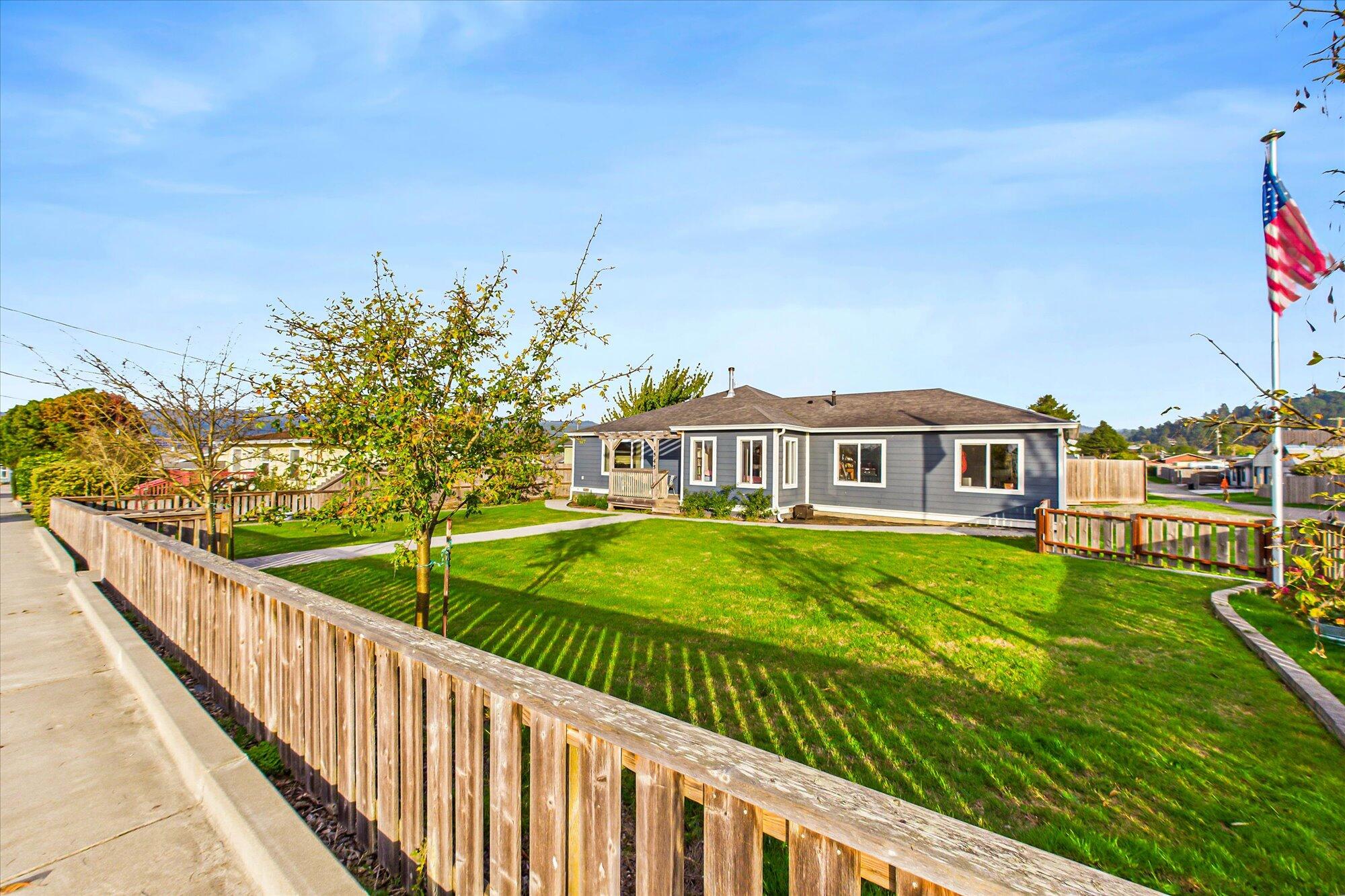 This beautifully finished, turn-key Fortuna home offers comfortable living on a spacious and usable .37-acre lot. Step inside to find an open-concept layout filled with natural light, genuine Acacia hardwood floors, and a cozy wood-burning fireplace complemented by forced air heat. The kitchen is a chef's dream with knotty pine cabinets, quartz countertops, and premium Viking appliances. The primary suite features a walk-in closet and a spa-inspired bath with dual sinks, a soaking tub, and a double shower with a rainfall head. Enjoy outdoor living in the sunny, fully fenced backyard with a patio ideal for entertaining or gardening. Additional highlights include a two-car garage with extra storage above, off-street access, and is move-in-ready! A must-see! Schedule a showing today!