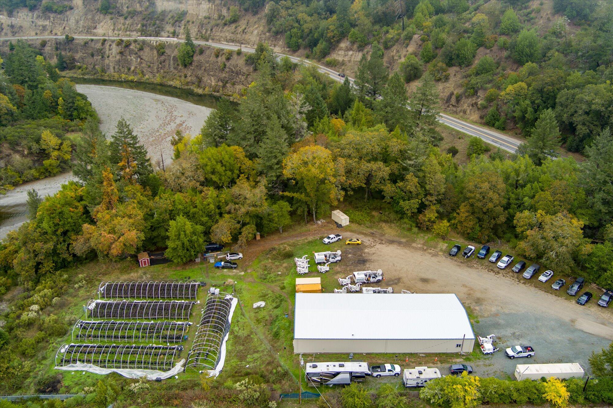 Prime 8.24-acre parcel zoned Heavy Industrial with direct Hwy 101 access. County and state permitted 10,000 sq. ft. cannabis grow—8,000 sq. ft. outdoor and 2,000 sq. ft. available for indoor use. Features a 6,000 sq. ft. unfinished building plus blueprints for an additional 8,000 sq. ft. structure. River bar access at the rear of the property adds unique value and versatility. Excellent investment or expansion opportunity—secure this property before it's gone!