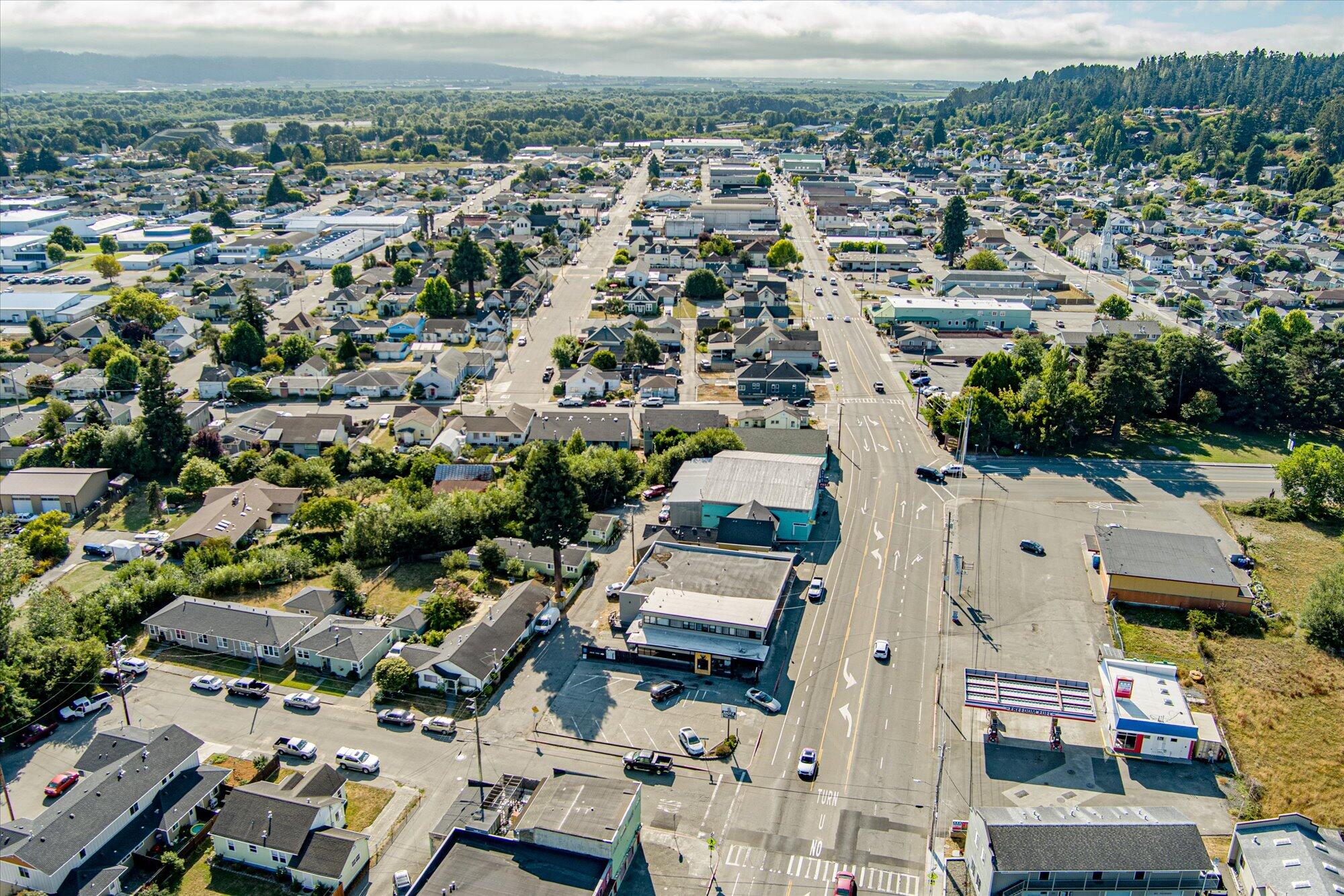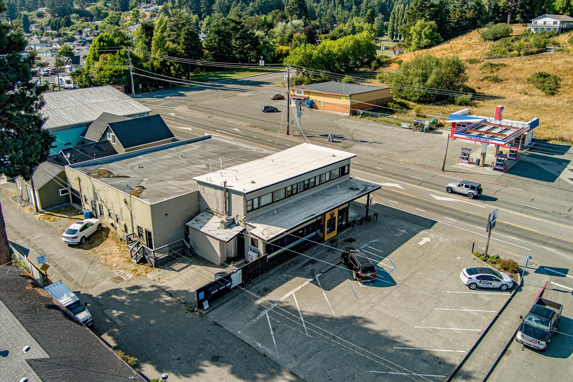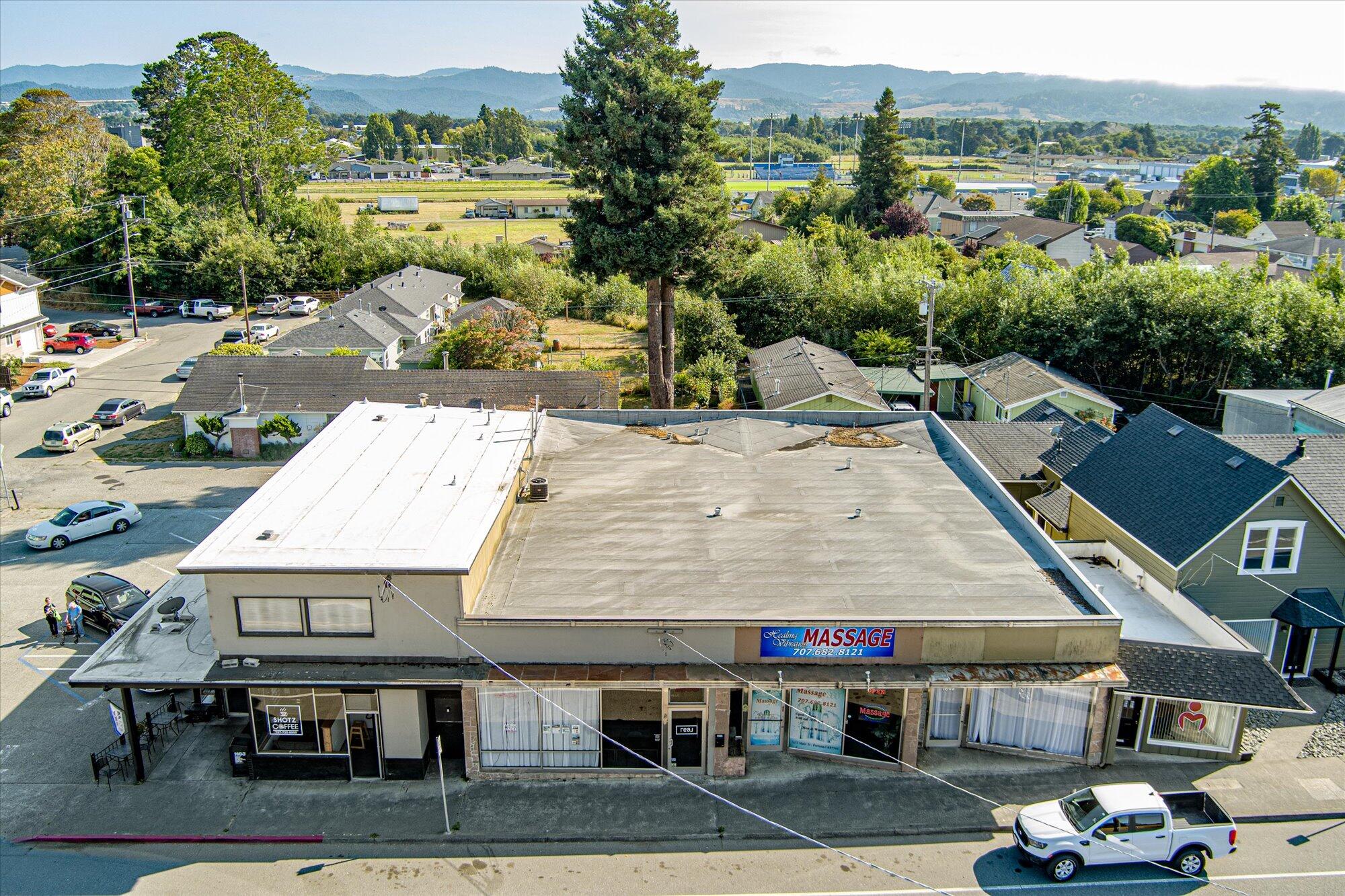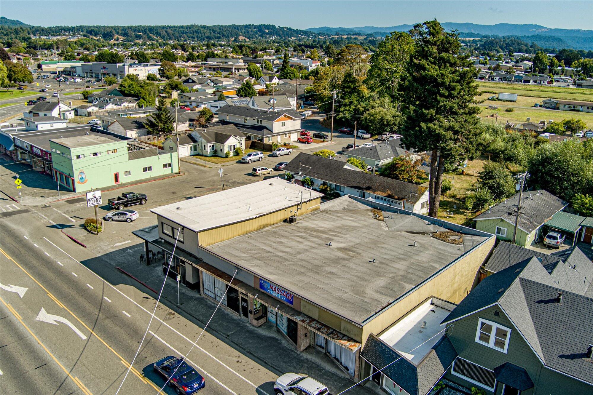 Prime commercial real estate located at 1649-1655 Main Street, Fortuna, on an 11,250 sq. ft. parcel with excellent visibility. Zoned Retail Commercial, this property features a 7,119 sq. ft. multi-tenant building of average quality, comprising four retail units and one residential unit, allowing diverse leasing options. The eastern section includes a developed parking area with drive-through access for added customer convenience. An adjacent 2,250 sq. ft. corner lot offers dual frontage and rear alley access, enhancing accessibility. Together, they provide 10 marked parking spaces, including accessibility features. This property is a valuable investment opportunity in a thriving location, ideal for various businesses.