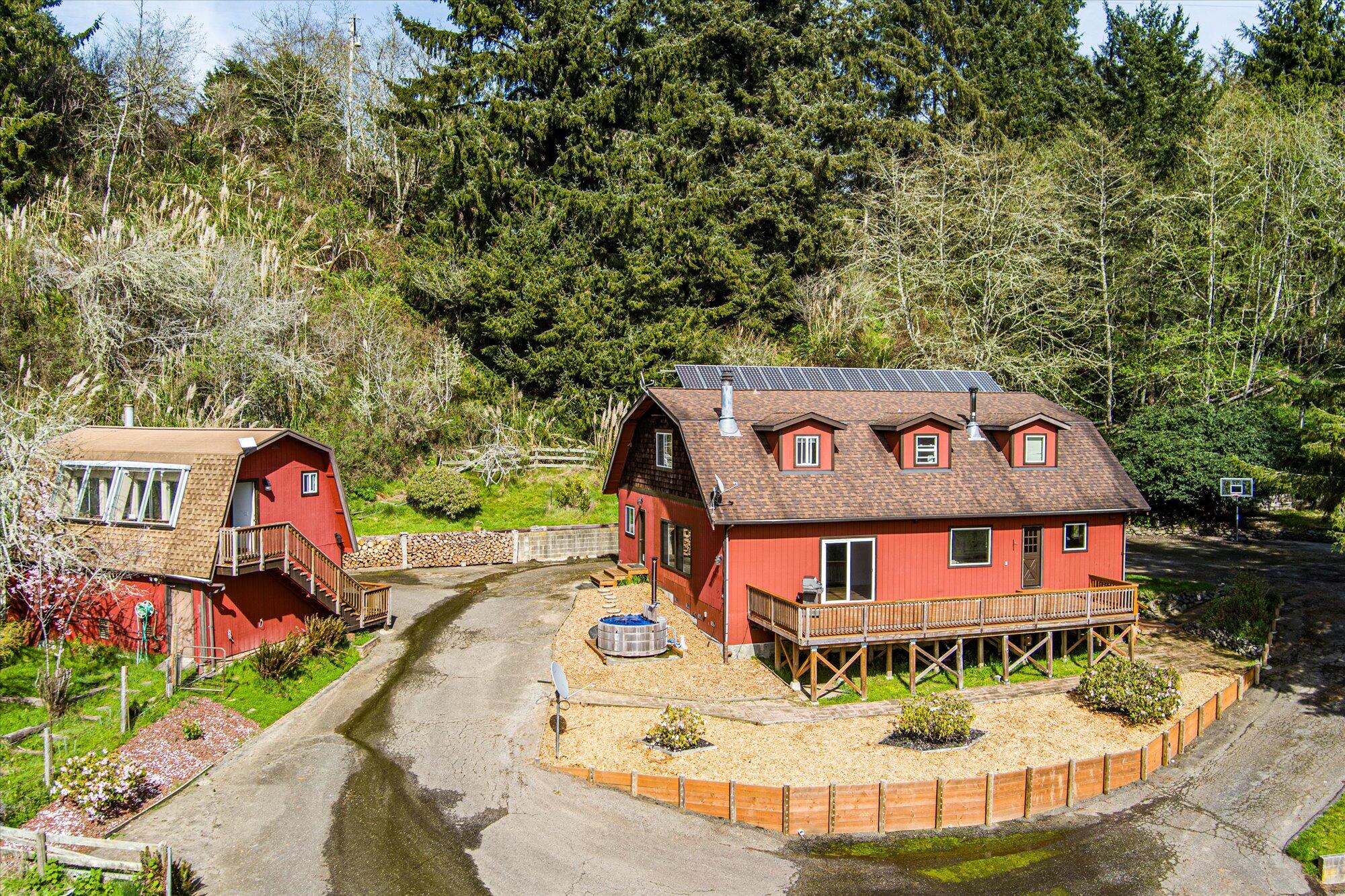 Accepted contingent offer with seller right to cancel with 30 days notice.'' Welcome to 1652 Tompkins Hill Road - a serene 3-bedroom, 3-bathroom home perched on a peaceful ridge overlooking the Eel River Valley. Built in 1973, this 2,500 sq ft home is full of natural light, warmth, and timeless charm, all set on a beautifully elevated lot with unmatched westward views. Inside, you'll find an open-concept main floor with large windows that frame the surrounding landscape. The kitchen flows seamlessly into the living and dining areas, creating a perfect space for everyday living or hosting friends and family. Step outside to the west-facing deck--perfect for sunset lounging, outdoor dining, or simply taking in the peaceful, panoramic views. Just beyond, a wood-fired hot tub offers a cozy spot to unwind under the stars, while the surrounding yard features space to garden and an abundance of fruit trees, creating a private, nature-rich haven that embraces the magic of this hilltop location. Upstairs, the primary bedroom offers a quiet and comfortable retreat with a spacious layout and walk-in closet. The upper-level views and natural light create a calm and inviting space to unwind. Two additional bedrooms and an office round out the upstairs layout, offering flexibility for guests, family, or creative spaces. The property also features 2 additional detached garages, one featuring an upstairs bonus space--ideal for rental income, multigenerational living, or a private studio or home office. Just minutes from Fortuna's shops, schools, and restaurants, this hilltop home offers privacy, space, and spectacular scenery--an ideal combination of rural beauty and everyday convenience. Come experience the peaceful charm of 1652 Tompkins Hill Road. A place to breathe, relax, and call home. This is not a drive-by property! Please make an appointment with your favorite realtor.