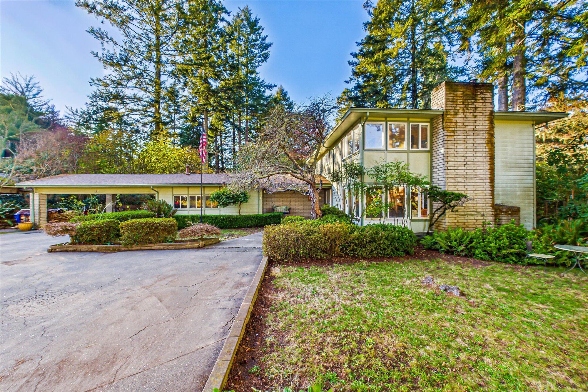19 Pinecrest Drive is a rare opportunity to own a true mid-century home near Redwood Empire Golf Course. This park-like setting 4-bedroom, 3-bath residence blends classic architectural character with modern comforts. Hardwood floors and remodeled bathrooms complement the home's original charm, while dual-pane windows enhance efficiency and natural light throughout. The expansive yard is a standout feature- lush, mature landscaping that simply can't be replicated today, offering privacy, beauty, and a serene outdoor retreat. Inside, enjoy cozy evenings with a wood-burning insert in the main living area and a fireplace in the primary suite, creating a private sanctuary with warmth and character. Practical upgrades include an EV charger and a generator plug-in for added convenience.