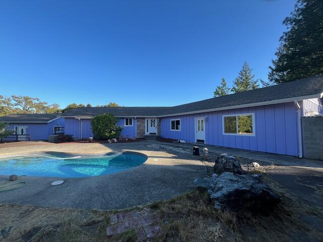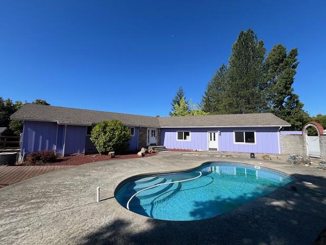 RARE find in the Meadows Subdivision. 5 minutes from town at the end a nice cul-de-sac on 9.6 ACRES. Let the Water Company take care of the water and sewer while you sit back and enjoy all the great views and the pool. This one of a kind immaculate turn key home with low maintenance landscaping and a built in pool! You will love all the trails and multiple decks with beautiful sitting areas. Enjoy your own fruit trees and the large gym steps away from the house with an outdoor shower and an indoor bath. The custom kitchen is a chef's dream with lots of beautiful cabinets, custom counters, gleaming stainless steel appliances and a large Viking cooking stove. There a nice finished office just off the garage and kitchen. All entry doors have stained glass windows. The open concept living room/ dining area is expansive with cathedral wood ceilings and a large chandelier. The entire home has bamboo flooring for easy maintenance. Both bathrooms are tiled with custom light fixtures and mirrors. This little gem is one of a kind and move in ready. Call your Favorite Realtor to see this exceptional property.