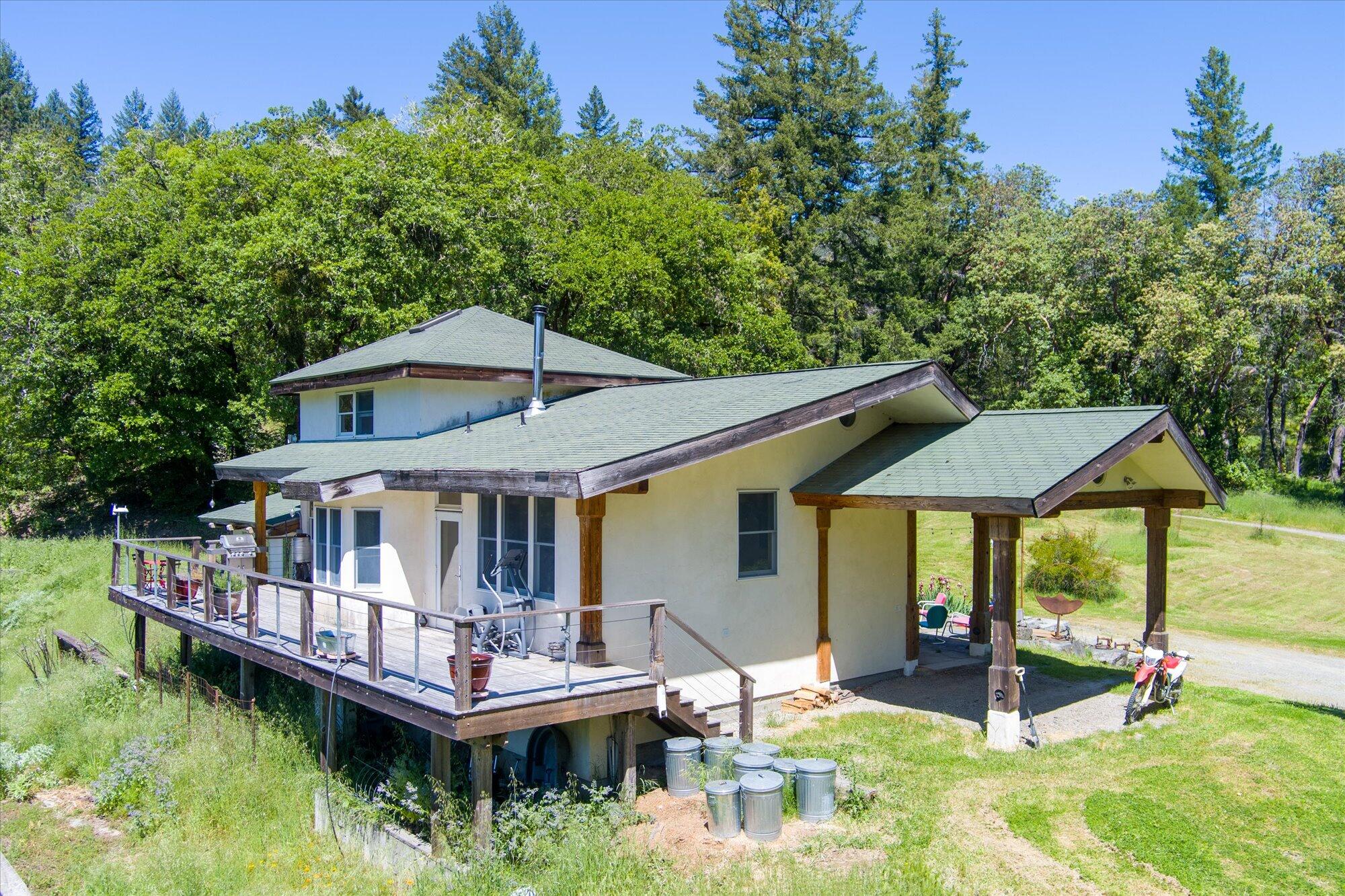 Main Residence: ''Rancho Villa'' Style Home Built: 2000-2001 | Size: ~2,750 sq ft Rooms: 3 bedrooms, 2 full baths Design: Big timber construction, Italian plaster walls, stone floors, large redwood deck with canyon views Highlights: First-floor primary suite Open-concept kitchen with a scarlet AGA professional stove Spacious great room with wood stove Chef's pantry Stone porch & stucco exterior Caretaker's Cottage 1 bed, 1 bath with a main great room & office Basement: Massive workspace, suitable for art or wine cellar Nestled in Heritage oak shade 3-Bay Workshop Garage Vehicle lift & compressor included ideal for on-site maintenance Bunkhouse (2015) 3 bedrooms, full bath, large kitchen/living area Chalet-style charm, tucked away for privacy Needs finishing touches Sleeper Cabin 1,250 sq ft with full bath, attached greenhouse, outdoor shower, and private deck Ideal for guests or rental potential Land & Off-Grid Systems 57 acres, timbered and secluded, bordering Chemise Creek Fully off-grid: Solar, hydro, and generator systems Water infrastructure: Multiple holding tanks, generous water supply, large artificial pond, bouldered swimming hole Infrastructure: Hangar (1,200 sq ft) for tall vehicles/equipment Helicopter pad, hiking/ATV trails, terraced gardens Dark skies perfect for stargazing Location: Remote but accessible. A few hours to Napa Valley and conveniently located near California's rugged North Coast Located in storied Humboldt County, rich in natural beauty and privacy Ideal For: Multigenerational families, Remote work retreats Artists, vintners, or homesteaders Buyers seeking a self-sufficient, off-grid lifestyle with high-end amenities.