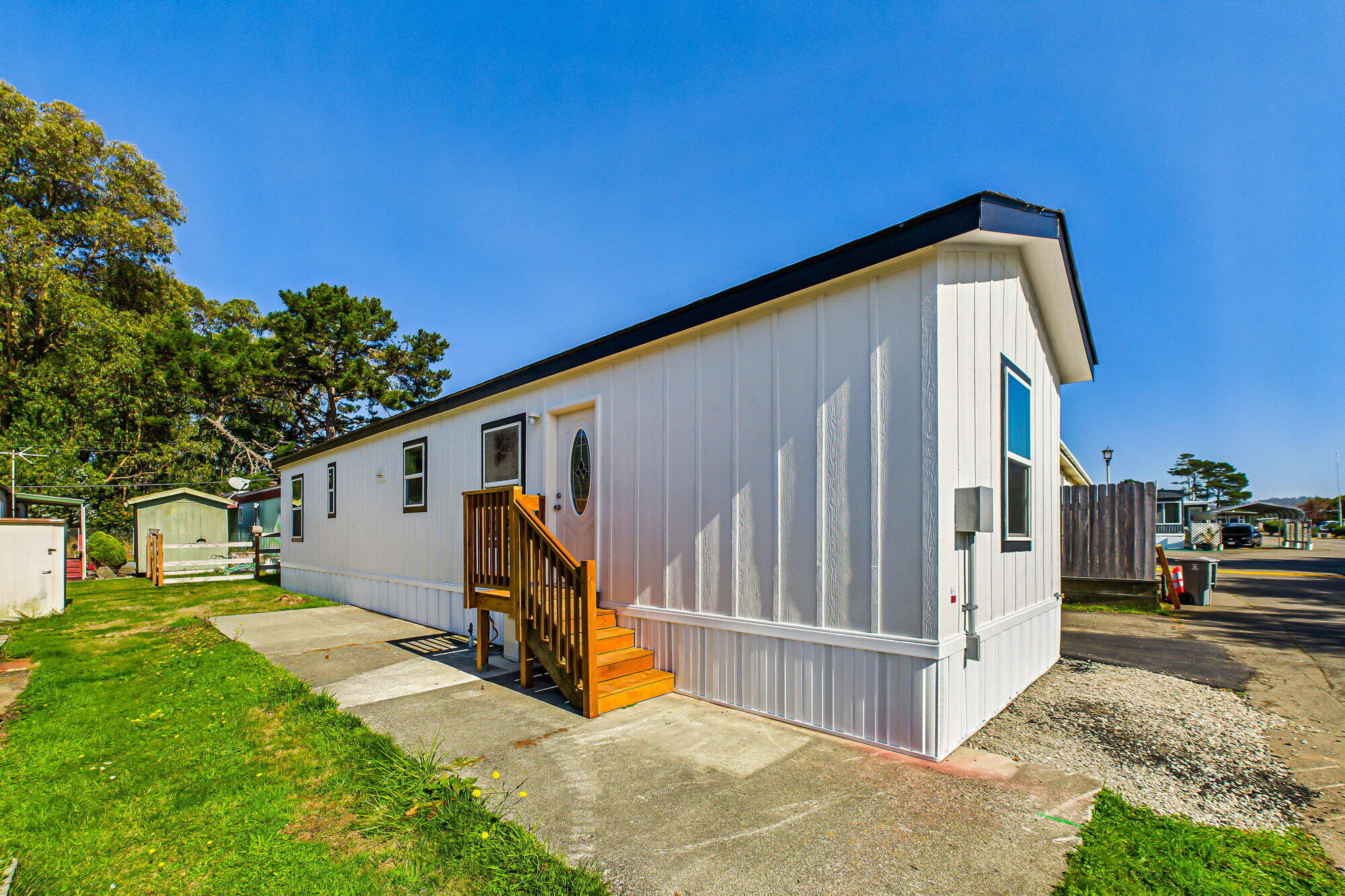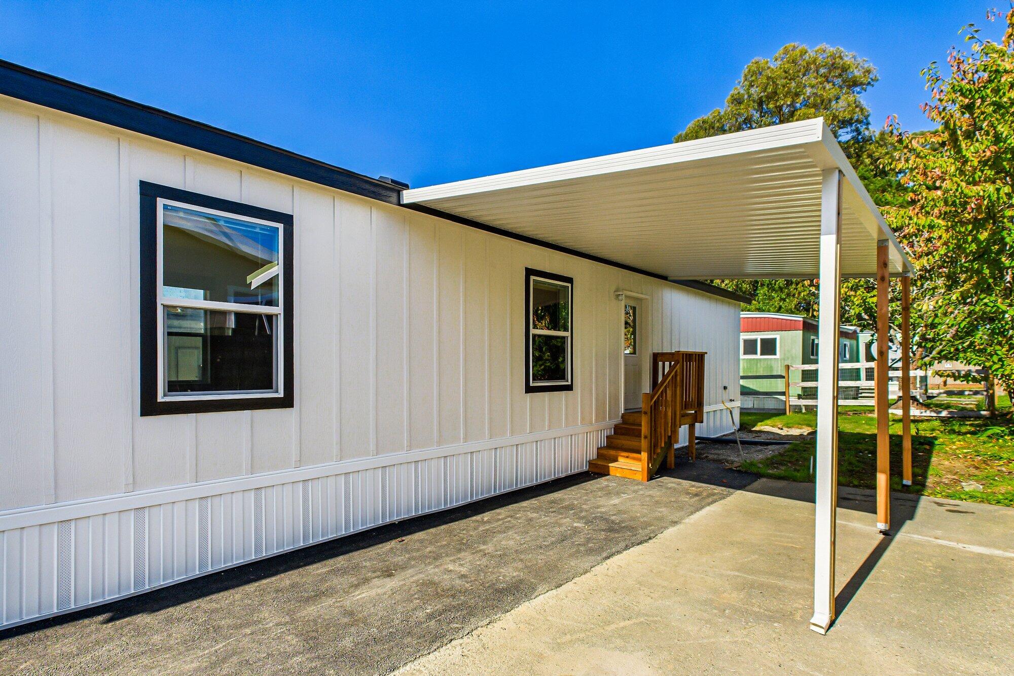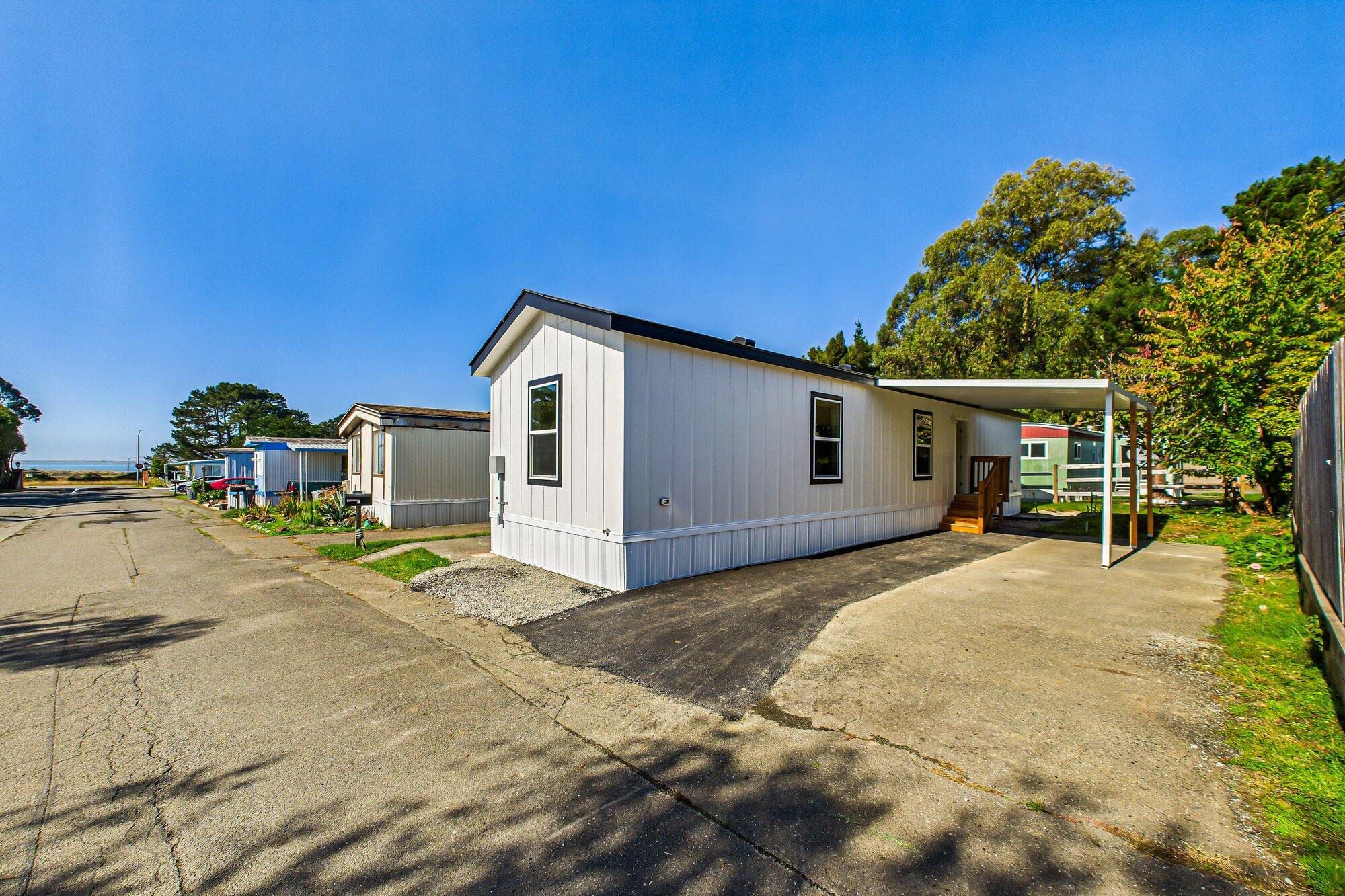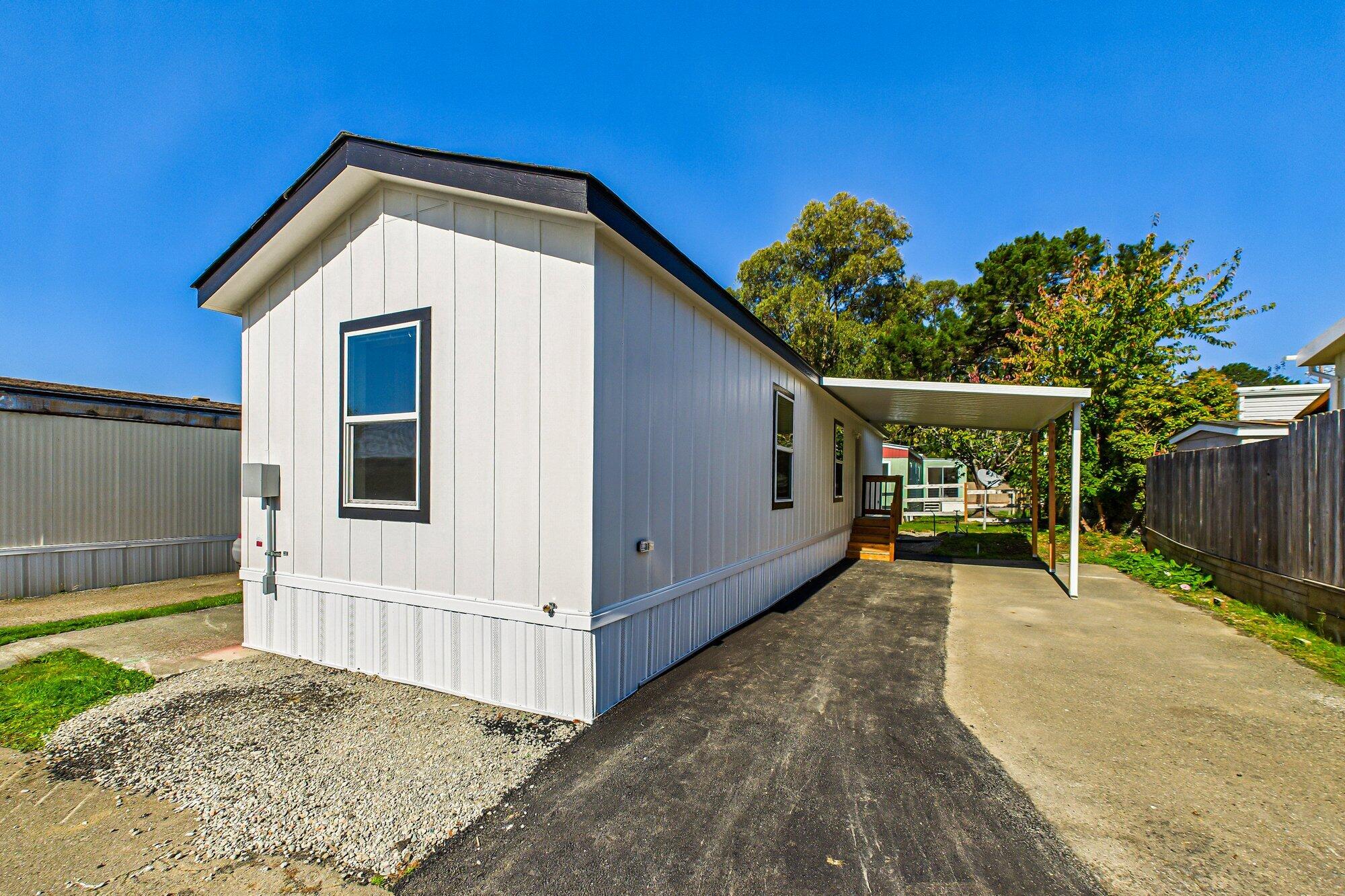 Brand New 2025 Single-Wide Manufactured Home located in the desirable Humboldt Bay Mobile Estates, a welcoming family park. This home includes a new carport for added convenience. Enjoy modern interior finishes and an open floor plan that creates a bright and spacious feel throughout the 756 sq. ft. of well-designed living space. The home features custom tile work in the kitchen and bathroom, adding a touch of style and sophistication to its inviting atmosphere. The park also allows fencing, offering extra convenience and security. Residents can also take advantage of the community pool and clubhouse amenities. New Buyer's space rent is $668.71
