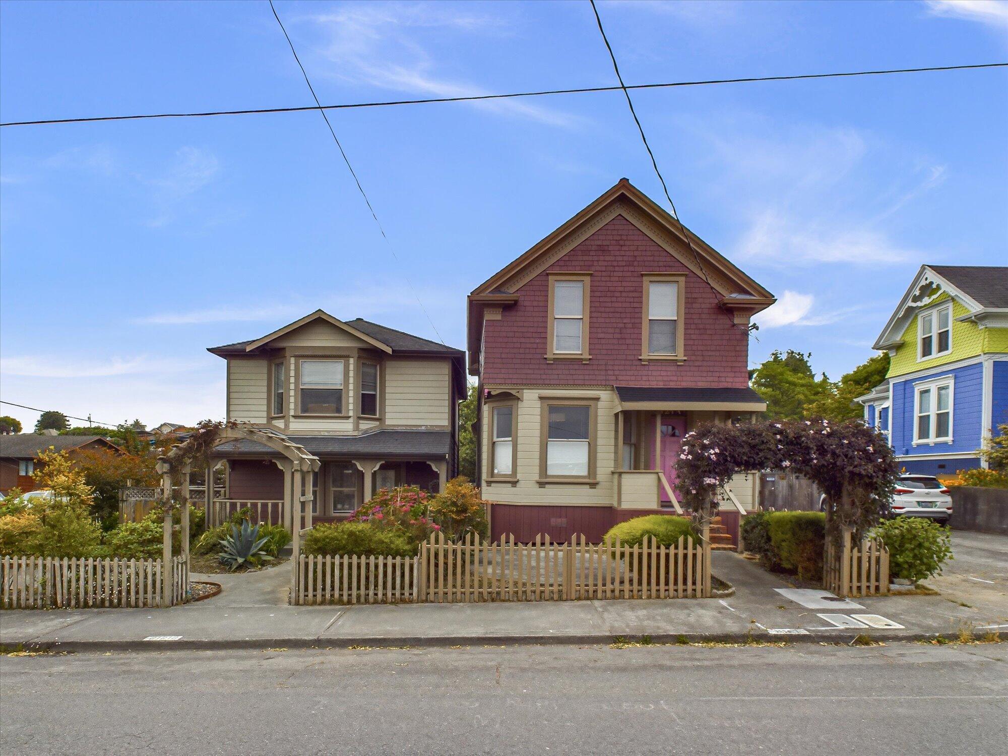 Very well maintained two home property on an oversized lot in desirable established neighborhood. The corner home (Unit B), built in 2006, offers approximately 1,300 sq. ft. with 3 bedrooms and 1.5 baths, featuring both front and back yard patios perfect for relaxing and entertaining. The second residence, (Unit A), is a charming Victorian built in 1907 offering approximately 1,700 sq. ft. with 4 bedrooms and 2 baths also complete with front and back yard patios. Each home is separately metered for all utilities, fully fenced and comes furnished. A sloping greenbelt behind the property adds privacy and a peaceful natural backdrop. Live in one home and rent the other to help offset your mortgage, or rent both for excellent income potential.