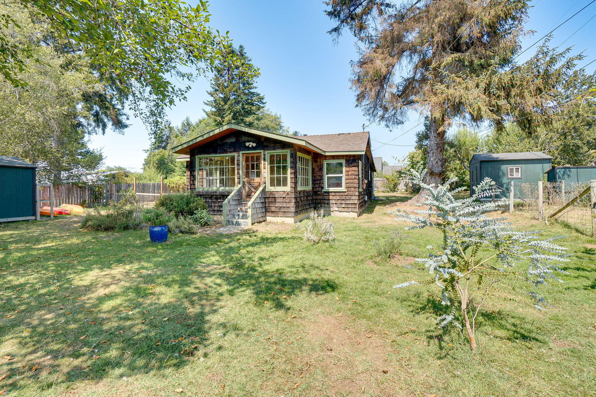 EASY TO SHOW! Bring us an offer! You're going to fall in love with this beautiful property and adorable cottage home on the East side of McKinleyville! This 1318sqft 3-bedroom 1 bath home sits on over 1/3 of an acre. The home offers a large sun porch as you enter through the front door and an oversized laundry/mud room off the back deck which was recently added. The property offers two 10x12 storage shops and a separate storage area for firewood. You have room for all of the critters on this property; there is even a fully fenced chicken coop ready to go. The property also includes many established fruit trees.