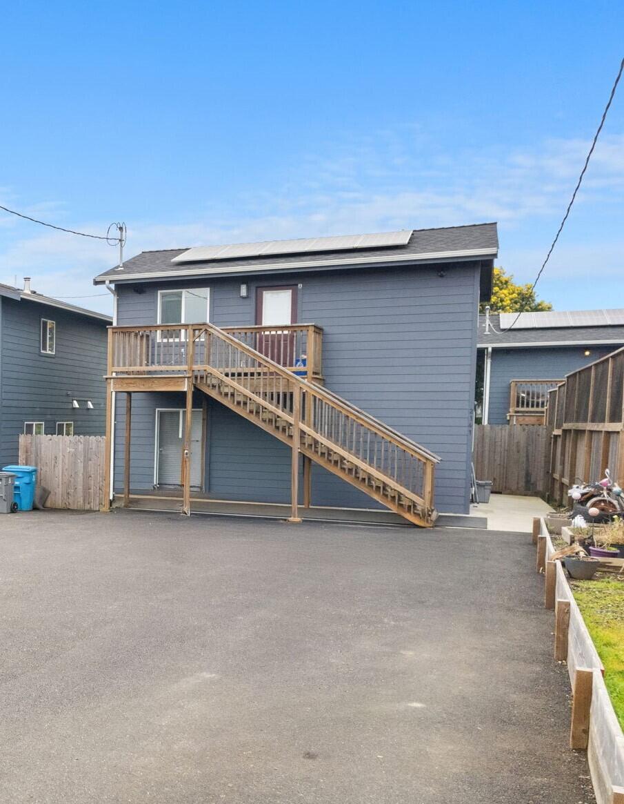 Income property in Arcata. Ideal situation for investors or live in one unit, rent the other for cash flow. Both units are currently rented $1250 and $1470. Built in 2020 these units are in very good condition. Onsite parking. One bed, one bath. Clean, low maintenance, solar array, fire suppression system and onsite Owner receives 1/2 laundry income monthly and machines are independently maintained. Tenants pay for garbage. Unit A pays their own PGE. Unit B owner pays PGE and water/sewer including laundry(on solar). Electric heat pumps. Vaulted upstairs ceiling. Development plan on file.Three additional duplexes adjacent to this are available for sale at the same price. Please see documents for further information.