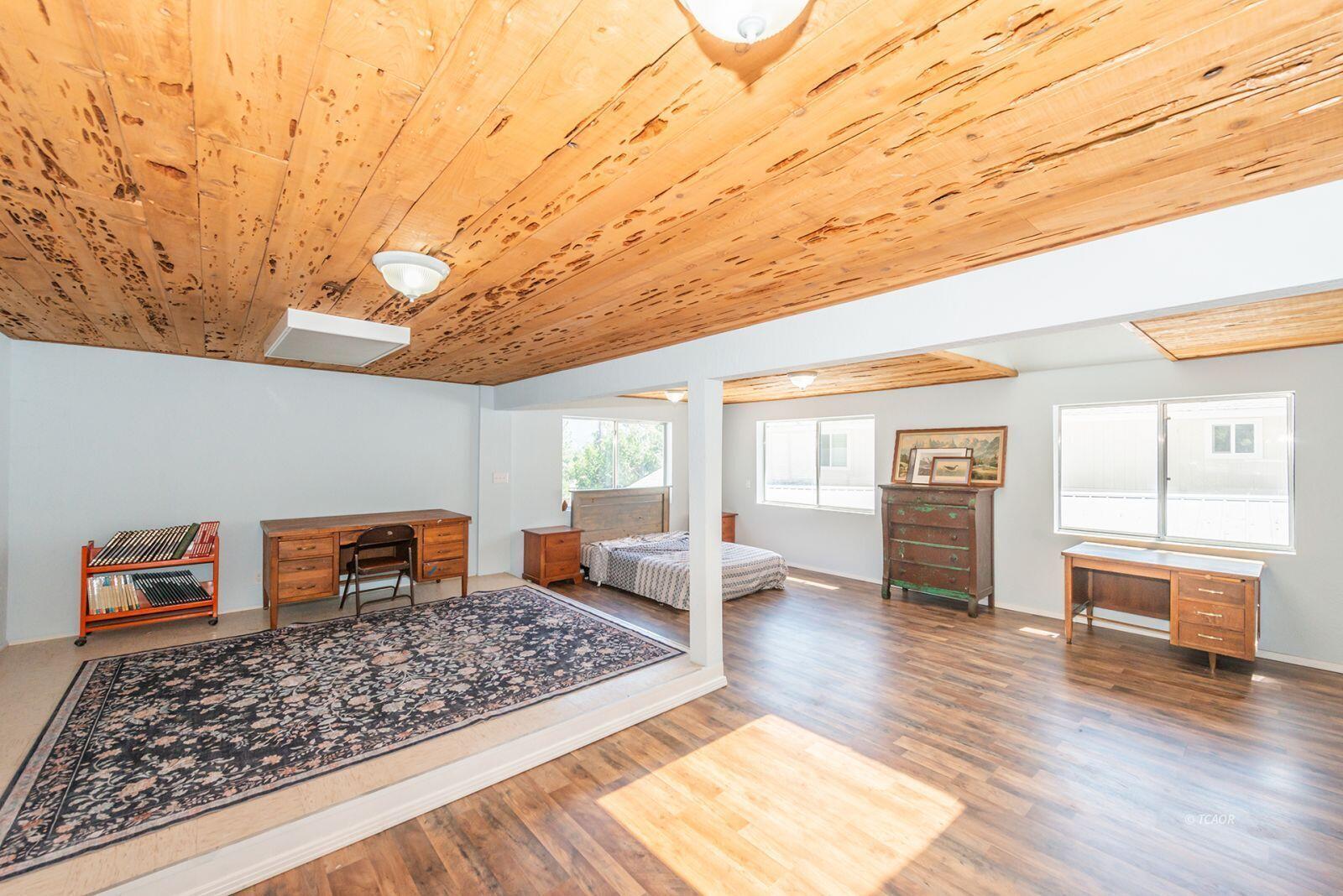 Welcome to this beautifully updated 2,304 sq. ft. home on 0.26 acres in the heart of Trinity Center. Offering 4 bedrooms, 2 bathrooms, and a thoughtful floor plan, this home blends comfort, style, and convenience. Step inside to find new luxury vinyl laminate flooring, fresh interior paint, updated lighting and fixtures, and new bathroom commodes. Living room and primary bedroom showcase elegant inlaid granite flooring, while the dining room, living room and primary suite each feature a slider to the side patios, perfect for outdoor entertaining. The upstairs bonus room is a standout-ideal as a fourth bedroom or a massive family room. Enjoy the unique charm of pecky cedar ceilings, a giant skylight, and walls of windows that flood the space with natural light. Car enthusiasts and hobbyists will appreciate the 4-car attached garage with loft storage. Outside, the fenced backyard offers low-maintenance landscaping, plus a garden shed for all your tools and storage needs. All this, just minutes from Trinity Lake and close to local amenities in Trinity Center, makes this home a rare find. Property has C1 zoning, for commercial retail, can have a business ran from your residence.