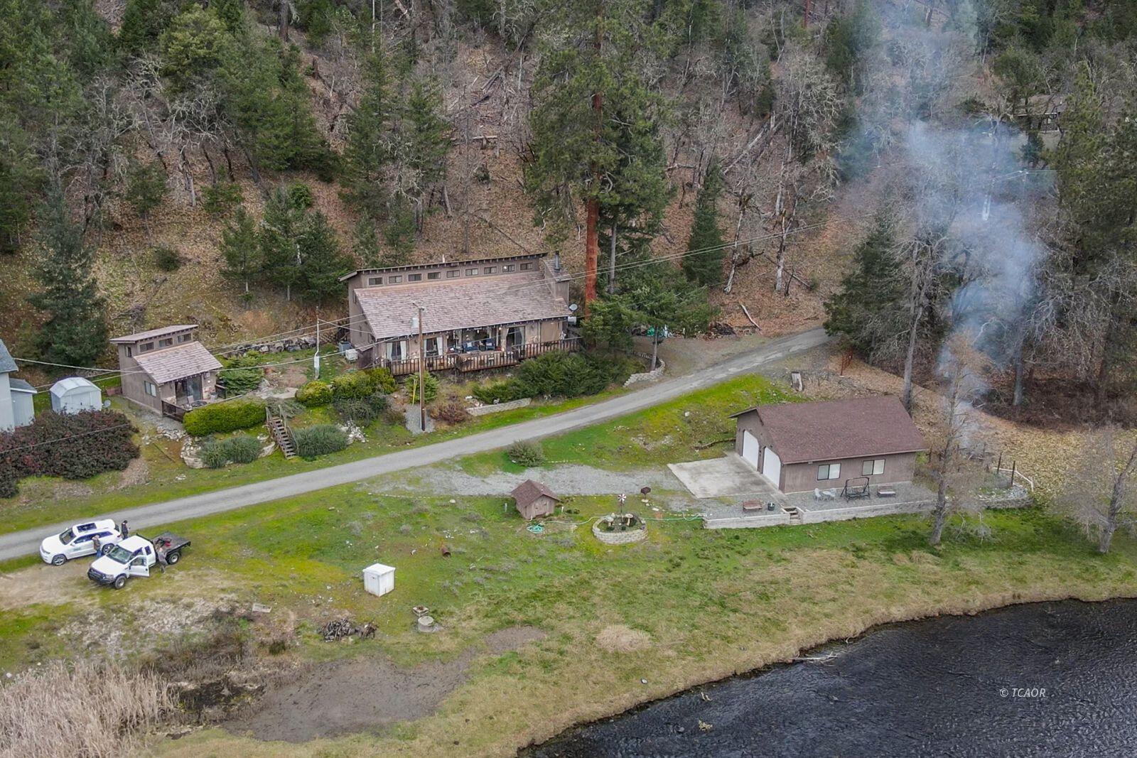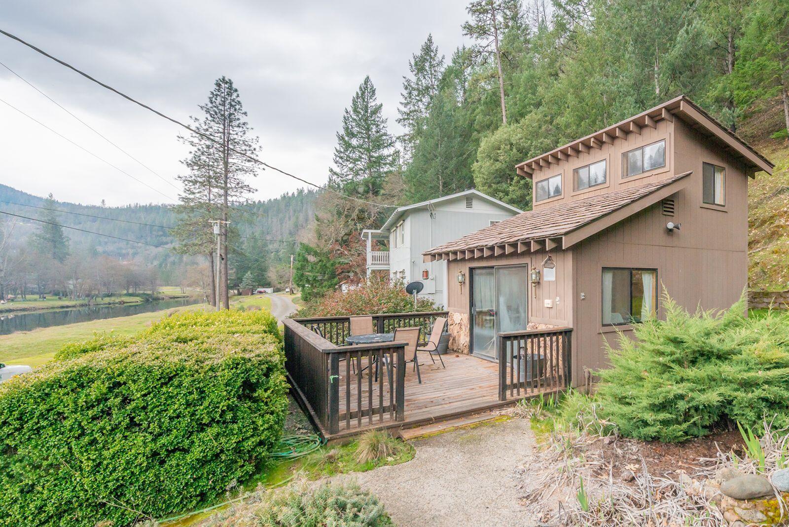 Calling all anglers! Rare opportunity to own prime riverfront property on the Trinity River, where you can launch from your own property and fish for steelhead right out your front door. This 2,200 sq. ft., 3-BD, 2.5-bath home sits on 1.26 acres and was built in 1986. Designed to capture the river views, you'll enjoy stunning water vistas from the living room, dining room, and primary suite, with sliding glass doors opening to wraparound covered decking - perfect for relaxing after a full day on the river. The main level features luxury vinyl laminate flooring throughout the living room, dining area, and primary en-suite. The kitchen offers tile countertops and easy access to the main living spaces, making it ideal for hosting fishing buddies and family gatherings. The primary suite is conveniently located on the main level, while two guest bedrooms and a full bathroom are upstairs, offering privacy for visitors. Outside, you'll find a charming she-shed with a loft, great for extended guests, extra storage, or even a bunkhouse setup. A detached four-car garage provides ample room for boats, drift rigs, gear, and all your outdoor toys. You've discovered true riverfront living!