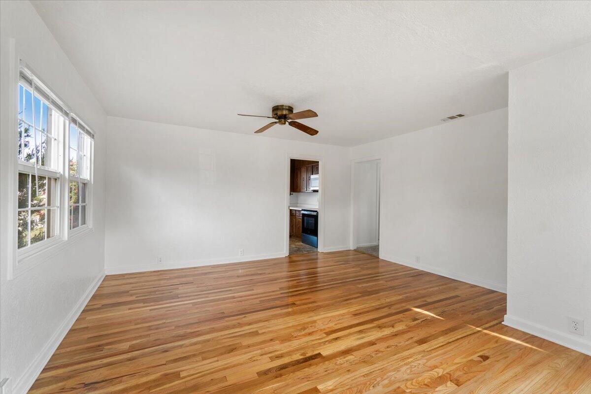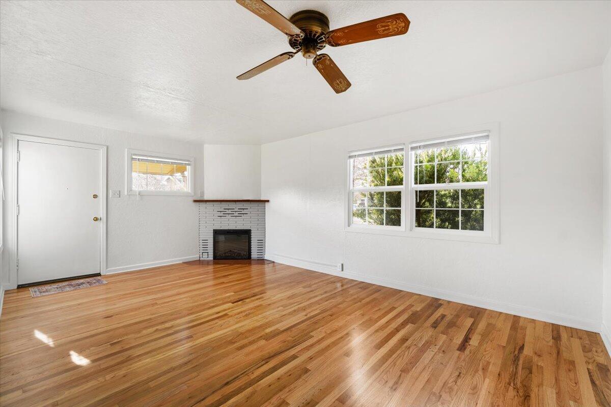 Well maintained and thoughtfully updated 3 bedroom, 1 bath home situated on a corner lot. This property features a spacious, fully fenced yard with mature landscaping, including established trees and shrubs, offering both privacy and room to enjoy the outdoors. A separate two car garage and shed offer plenty of storage. Inside, you'll find new carpet in all bedrooms along with beautifully refinished wood floors, creating a clean and refreshed feel. The kitchen has been updated with new appliances, and the dedicated laundry room equipped with a washer and dryer. Additional improvements include newer windows and a cozy fireplace insert and forced air heating installed in 2021. A great opportunity to own a clean, updated home with a large yard in an established neighborhood.