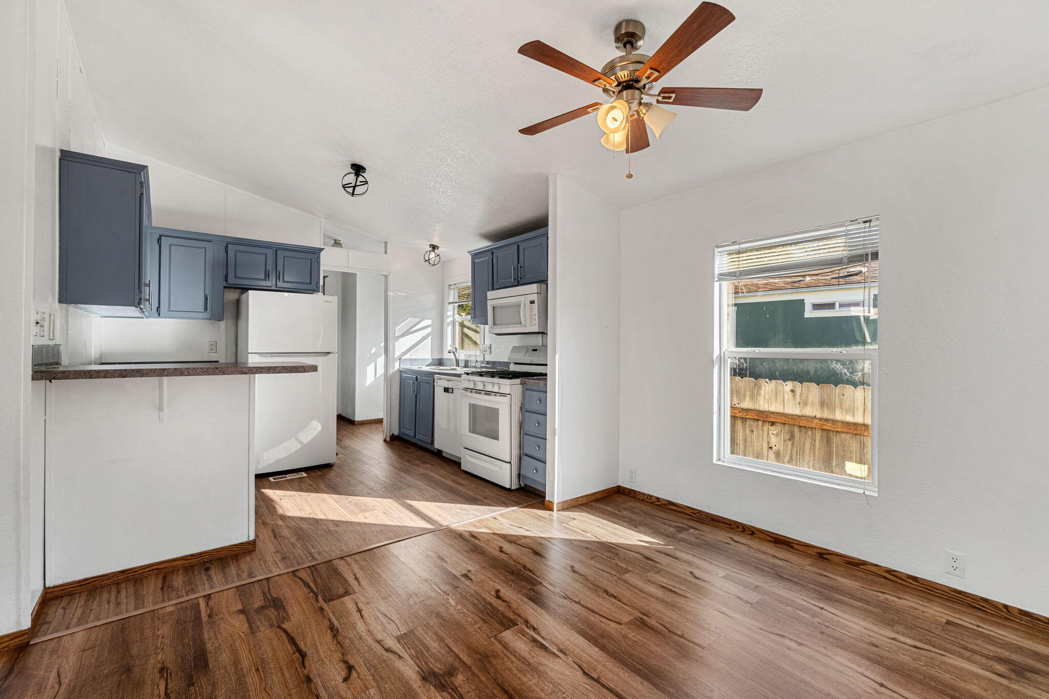 Lovely 3 bedroom 2 bathroom doublewide manufactured home in quiet family park. Vaulted Ceilings & Open floorplan throughout. Primary Bedroom with en-suite, featuring large soaking tub. Backs to greenbelt with no neighbor to rear. Fenced backyard, and cul-de-sac location provide little through traffic and a safe outdoor space for all to enjoy. Call your favorite agent for a private tour today!