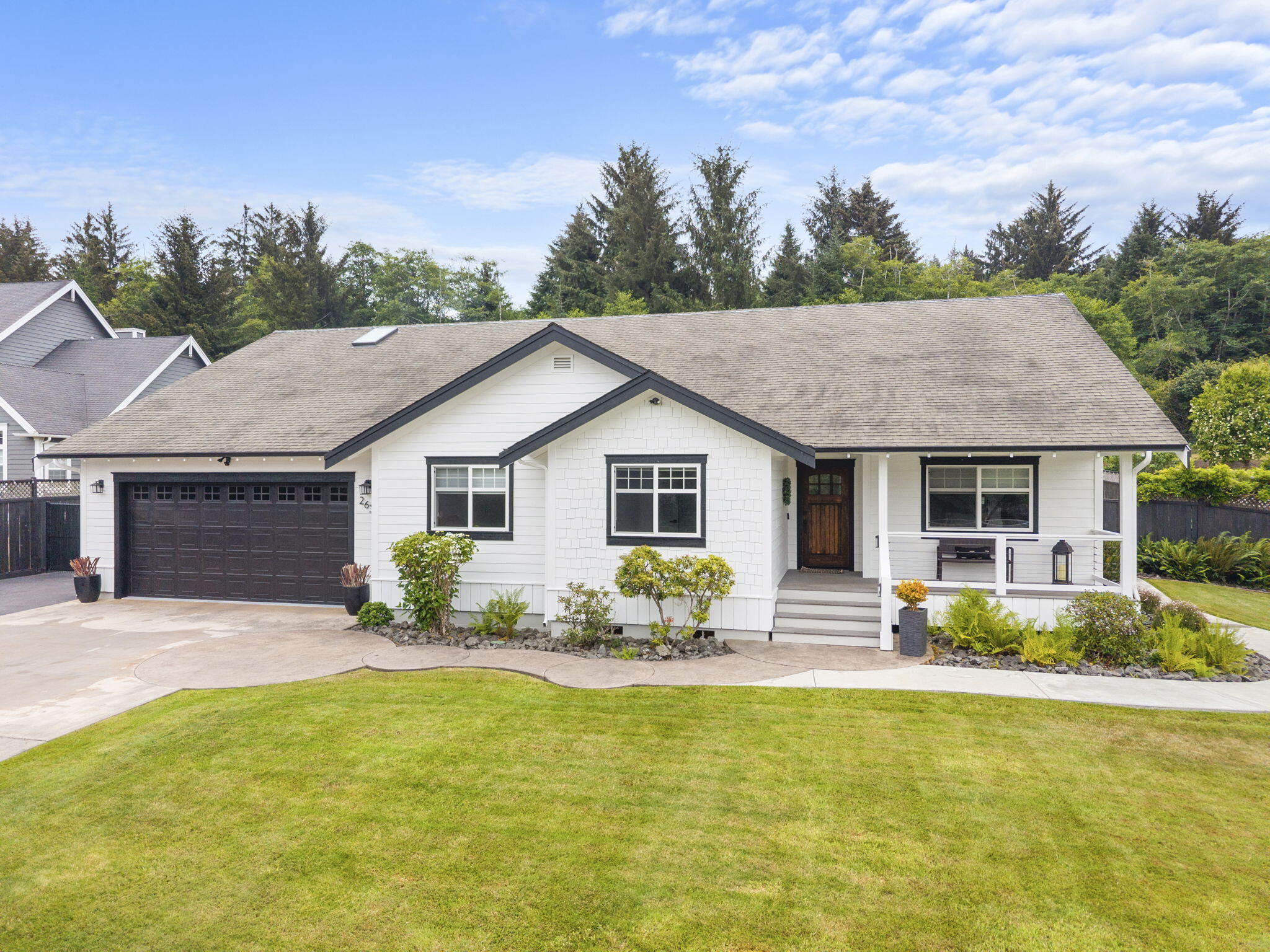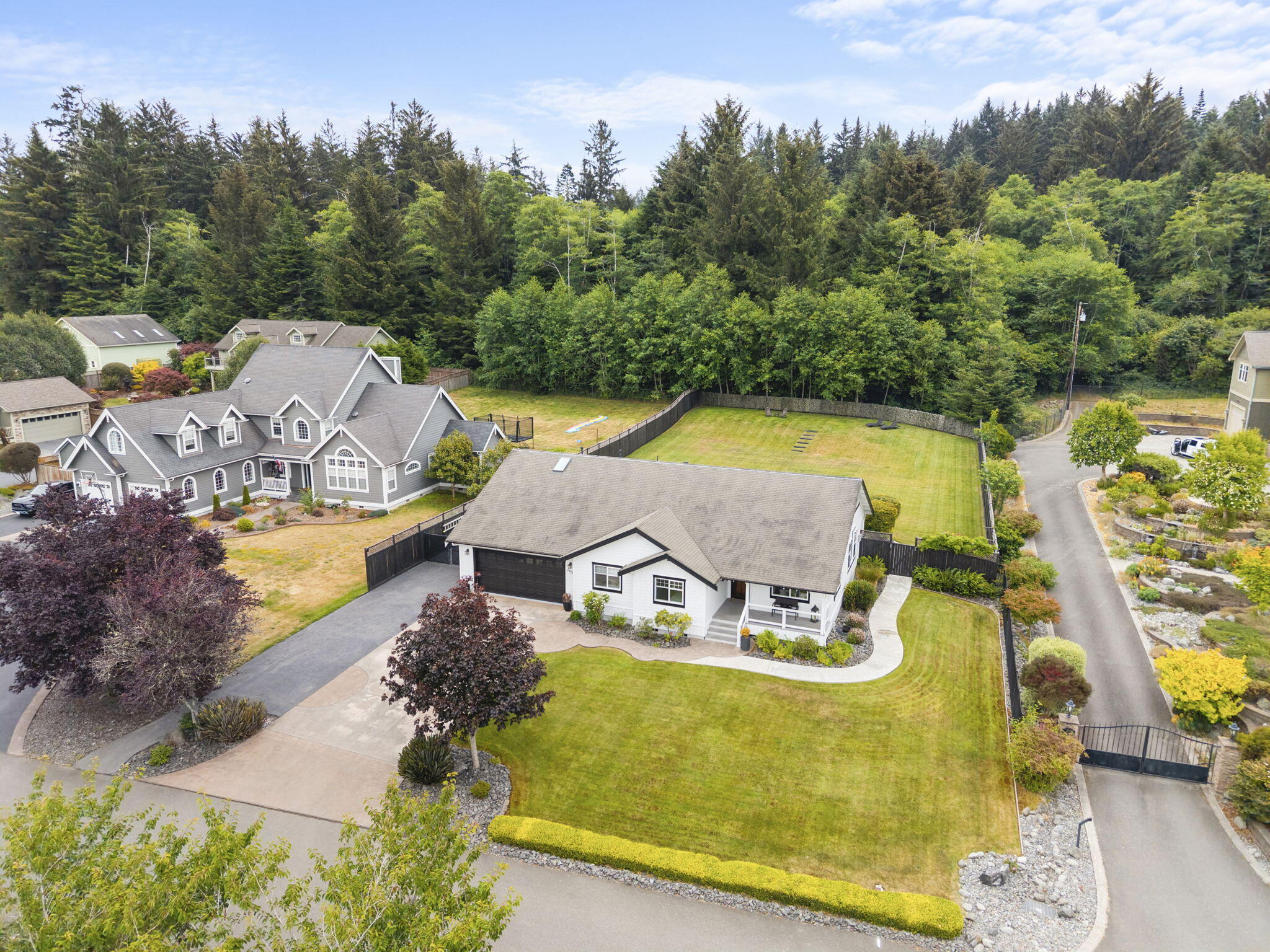 Personified perfection in one of McKinleyville's most desired communities! Located on the east side of town in the gated Visser Subdivision, this four bed, three bath masterpiece does not disappoint. The open concept living space provides you with a place to relax in front of the elegant fireplace, or entertain friends and family from the lavish kitchen island. The kitchen features granite countertops, maple cabinets with pull out drawers, double oven, walk-in pantry, and a breakfast bar with room for six! You can find the primary suite at the back of the house which has both a soaking tub, and an elegant tiled shower, capped off by a double vanity and oversized walk-in closet. The homes second story ensuite offers a private place to unwind while the bonus room allows you the flexibility of having an office space without sacrificing one of the four bedrooms. Located between the kitchen and garage, the interior laundry room with sink increases your comfort and yields extra storage space. The house sits on 0.62 acres and is highlighted by two covered porches, an immaculate lawn with automatic sprinkler system, graveled fire pit, and a standby generator with an automatic transfer switch. The driveway is flanked by a smooth sealed blacktop that extends into the backyard, creating ample space to park and store toys of any size.