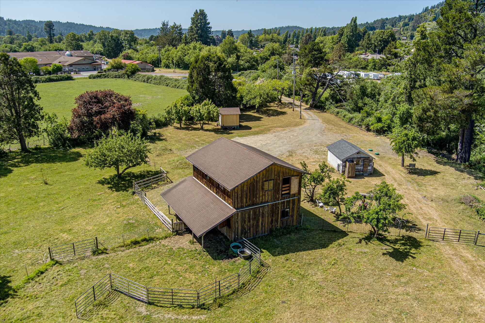 ~5-acre Blue Lake land, first time on the market~!! Ag-zoned, just steps from Downtown, this private mini-ranch boasts sweeping views, a barn, two outbuildings, and two bathrooms—perfect for family, farming, or livestock. With city water, septic, 60 Amp residential power & 3-phase 200 Amp Ag PG&E power, plus natural gas onsite, it blends rural charm with central location. Ready for your vision, this expansive property offers the ideal canvas to build your dream home and create a legacy in the heart of Blue Lake.