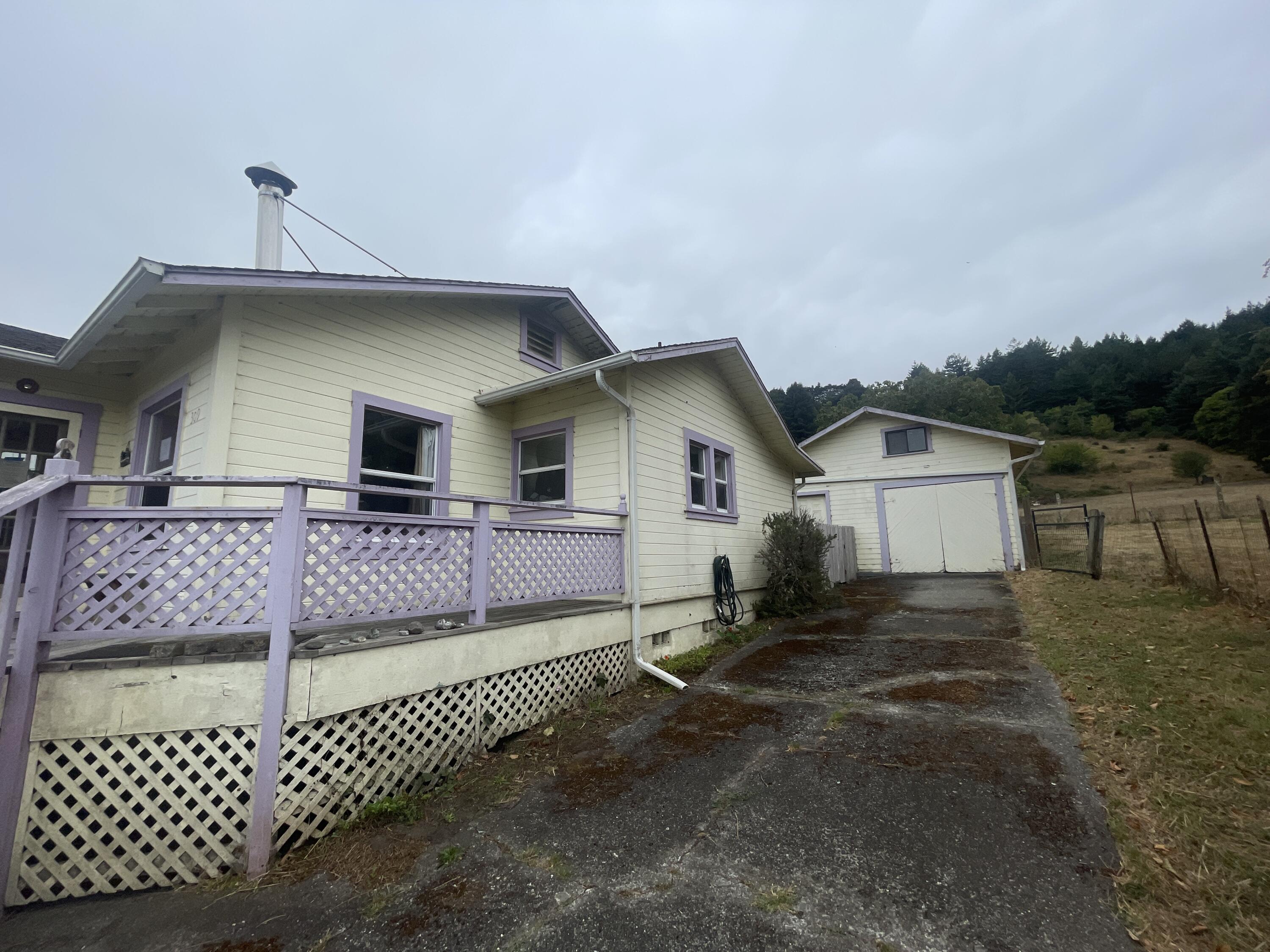 Sweet cottage on the west side of Rio Dell. Wooden flooring, large yard with mature trees. Open kitchen with an office nook, laundry inside., glass porch with bluff views. Detached garage with potential galore! Per CA law, no investor offers accepted within the first 30 days of listing.