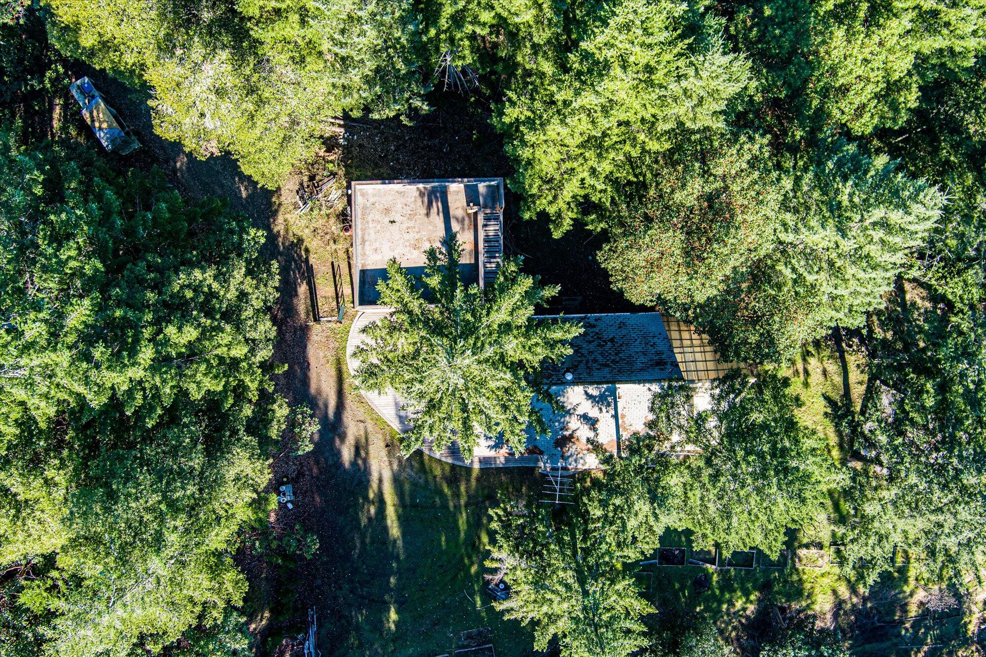 This exceptional 1-bedroom, 1-bathroom home spans 850 square feet and is situated on 26 picturesque acres, just 25 minutes from Highway 101 along a paved road, with PG&E power supply. This remarkable property is a rare find and includes an accessory dwelling unit (ADU) featuring an unfinished kitchen and a full bathroom, awaiting your personal touches, along with a covered porch for guests to enjoy. Additionally, the property boasts two finished outbuildings that can serve as a studio or extra sleeping lofts. Practical features include a cement bear bin and available propane hookups. The expansive garage is complemented by a full basement. Relax in the hot tub while taking in stunning views of Jewett Rock, all amidst beautiful madrone and fir trees that grace the landscape.