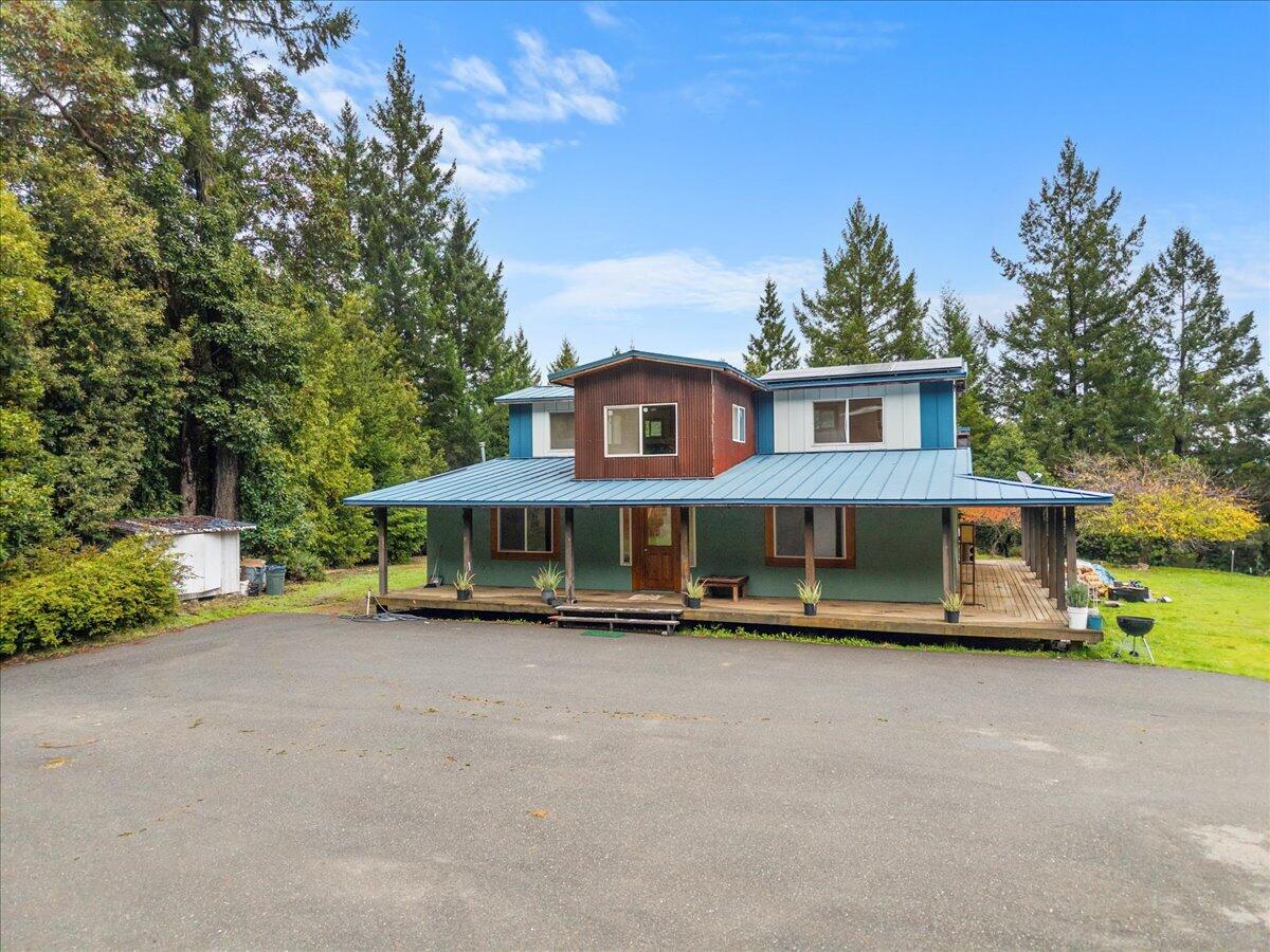 Discover the perfect blend of privacy, functionality, and self-sufficiency on this stunning 22-acre off-grid homestead. Just 15 minutes from Hwy 101, this spacious 4-bedroom, 2.5-bath home features beautiful bamboo flooring throughout, warm and efficient wood heat, and an additional propane heater. With 65,000 gallons of water storage fed by an efficient rain catchment system, plus a pond and two natural springs, this property offers exceptional water security. Power is supplied by a reliable solar system backed by a brand-new propane generator. The property includes a generous 2-car garage/shop with a large recreation space above, complete with its own full bathroom, ideal for guest quarters, a studio, or workspace. A second shop adds even more room for for projects, equipment, or storage. For those interested in income-producing potential, the property also offers a 5,000 sq ft mixed-light cultivation permit, giving you an established opportunity right in your front yard. Surrounded by natural beauty and designed for independence, this property is ready for your vision, whether you're seeking a homestead, a retreat, or a turnkey off-grid setup with income possibilities.