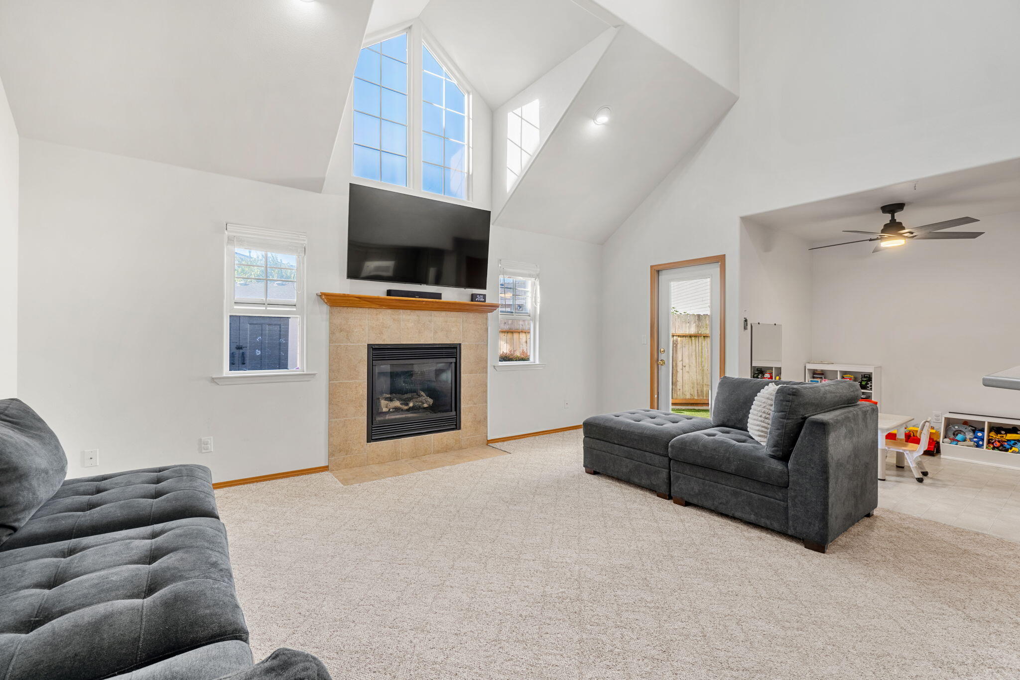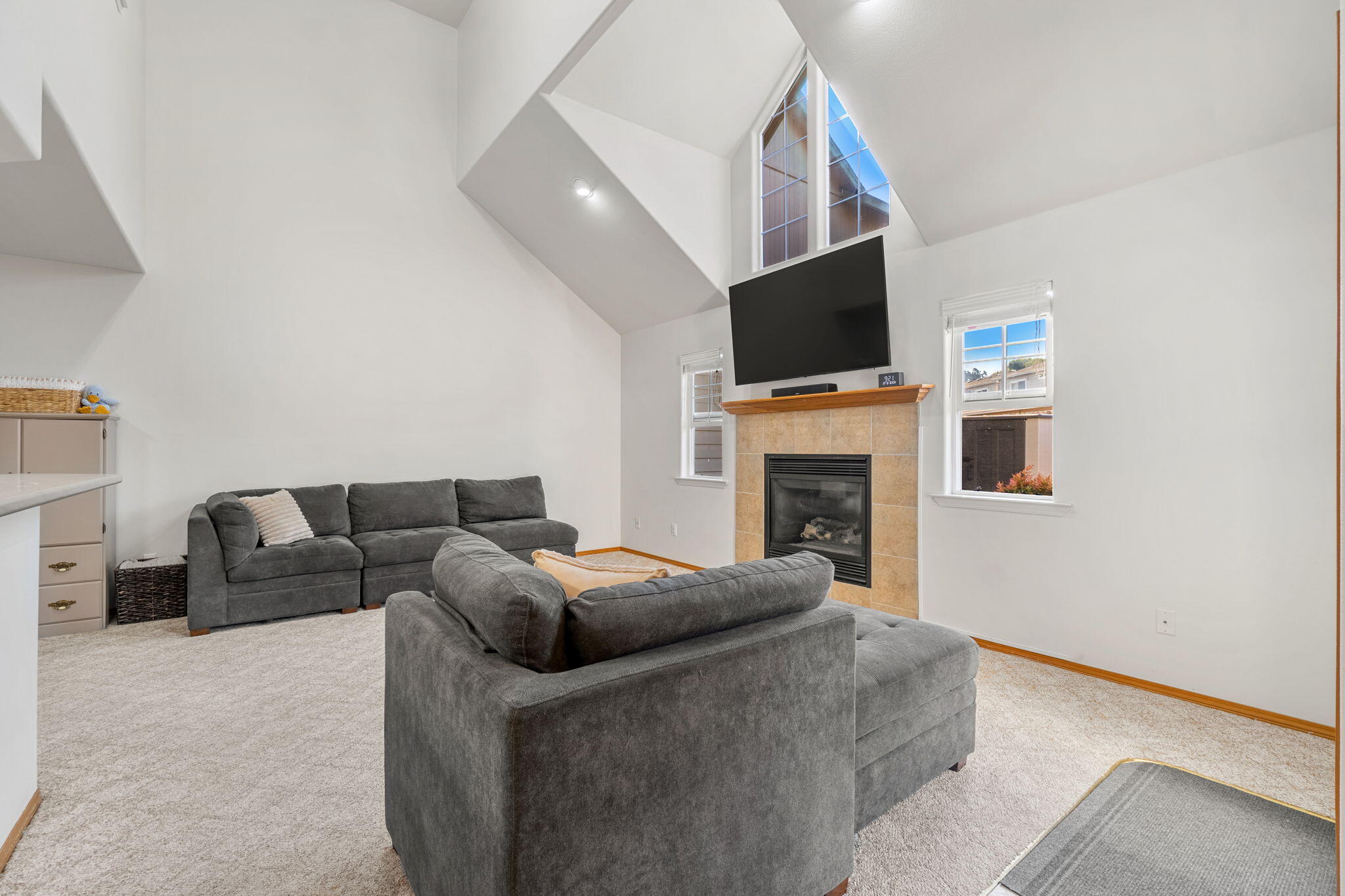 This charming three-bedroom townhouse feels like home from the moment you walk in. The open living and dining area is perfect for gatherings, with a warm gas fireplace, soaring cathedral ceilings, and a door to a cozy patio for morning coffee or evening relaxation. Downstairs, you'll find a convenient bedroom and full bathroom. Upstairs, there are two more bedrooms, another full bathroom, and a spacious, airy landing overlooking the living room, great for a kids' play area, home office, or cozy nook. Plus, you get two assigned parking spots for easy living. You don't want to miss out on this gem!