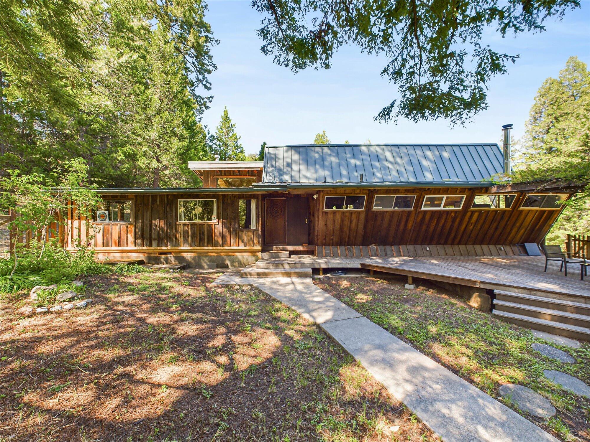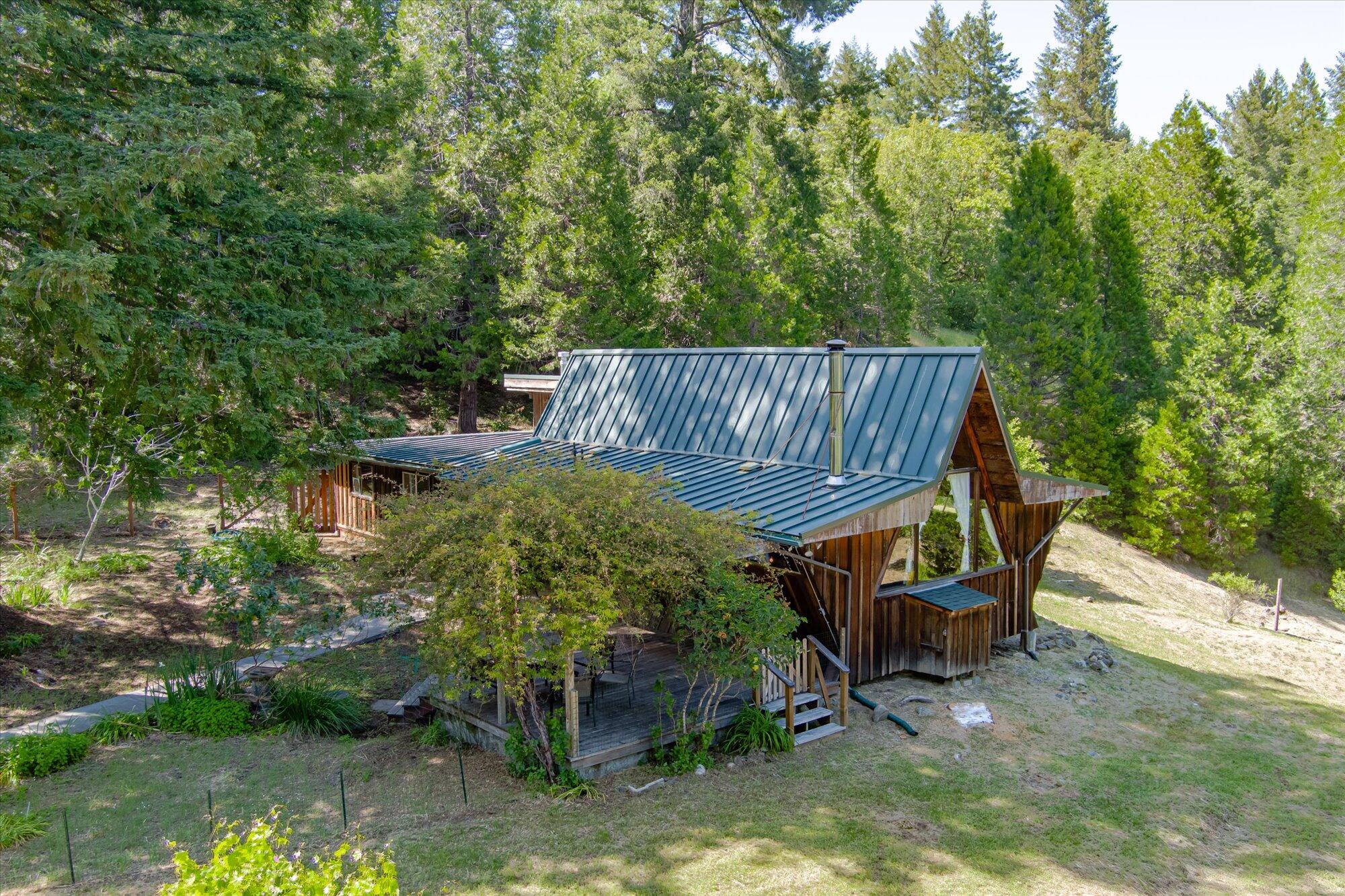Experience tranquility on this one-of-a-kind 38+ acre property blending rustic charm and modern comforts, just 15 minutes off Highway 101. The estate features 3 buildings: 1) a 1,600 sf custom redwood home with a star-shaped front, cathedral ceilings, huge wood beams, large windows (11x13 ft) with views of trees, pond, & Bear Buttes. The home includes 3 bedrooms, a loft, bathroom, and space for a second bathroom. 2) a cozy 1-bedroom, 1-bath cabin nestled in the woods. 3) a 1,900 sf workshop with a new roof. Enjoy PG&E power, wi-fi, upgraded electrical, wood and propane stoves, 3 dedicated fire hydrants, shed, water rights (creeks, spring), 23,000+ gallons (approx) of water storage, ponds, arbor with climbing rose, decks, a custom front door, plenty of windows, and outdoor electrical outlets. The property is accessible via a paved county road, ensuring both convenience and privacy. Much of the work is already done for you. Perfect for homesteading, remote work, or simply enjoying nature, the property even boasts a Little Library near the Snack Shack. As the first parcel developed in Salmon Creek by non-original ranchers, it offers a rich history, beautiful views, abundant water, and easy access from three roads. Explore open fields, fruit trees, gardens, hills, forests, 3 streams, 4 ponds, and two 100-foot Redwood trees in the front yard. Salmon Creek is a friendly community with a school, volunteer fire department, and regular gatherings. Wildlife is thriving here, and the property has ample space for domestic animals, with horses, goats, cows, sheep, chickens, ducks, rabbits, peacocks, dogs, and cats happily living on the property over the years. Each season brings its own magic, from summers bursting with warmth and wildflowers to the rare snowy winter day. Sold turnkey with most furnishings and appliances included (see list for details). Near the cute town of Miranda, world famous Avenue of the Giants and the Eel River. Call today for a showing!