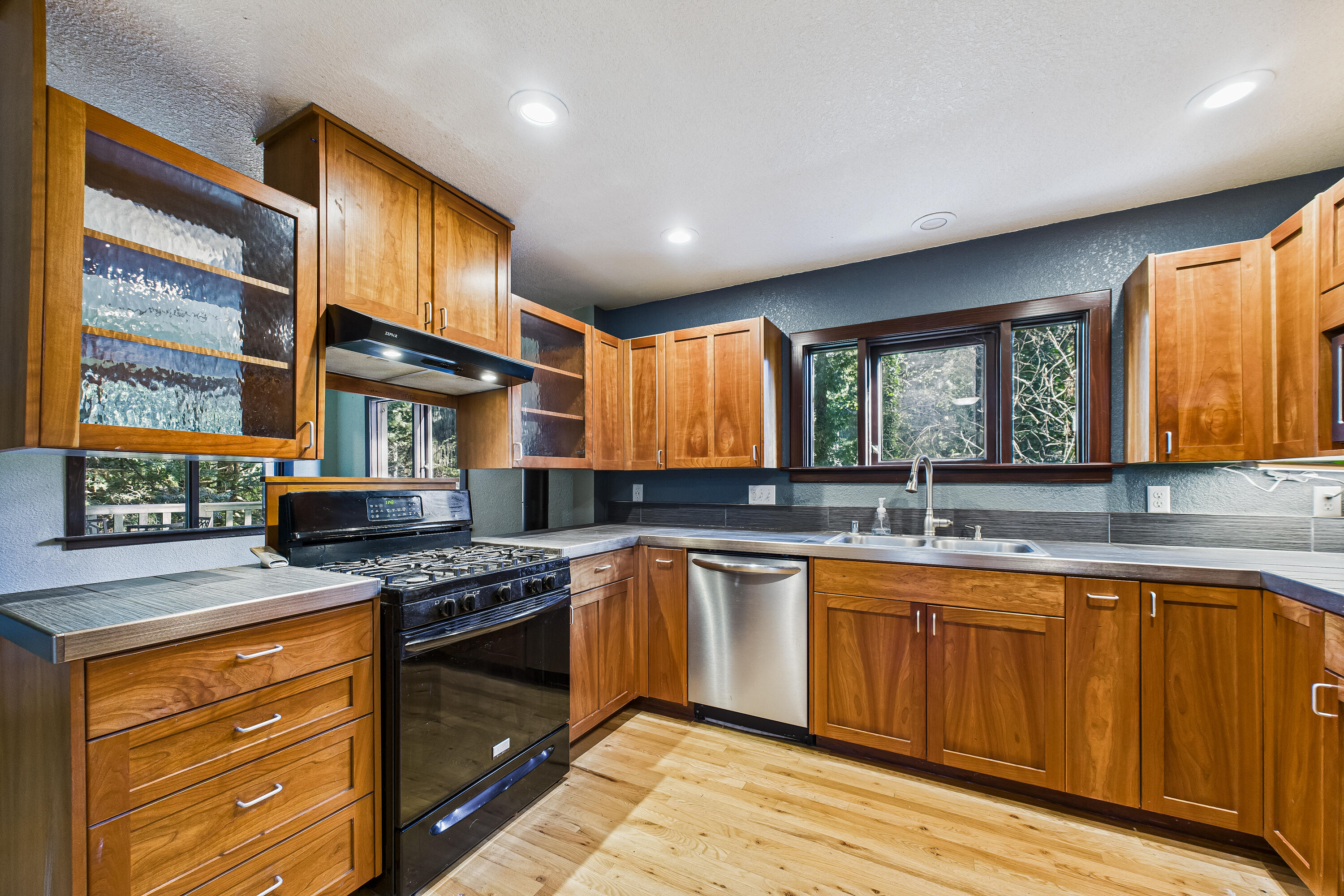 Open House, Saturday, Jan 24 (1-3). Tucked privately away in a sought-after Eureka location, 3539 J Street feels like a true nature retreat, offering the peace and seclusion of country living while remaining close to town. This charming Tudor-style home features a cozy, forestry-inspired atmosphere with 3 bedrooms and 1.5 bathrooms. Kitchen with custom cherry wood cabinets with large pantry. Bathrooms have solid oak counters with jojoba wood accents. A large backyard with a deck (plumbed for bathtub) invites you to unwind and take in serene forest views, creating an ideal space for quiet mornings or evening gatherings. Set in a great neighborhood with a double-car garage, this home is a rare blend of privacy, comfort, and convenience. Easy to show!