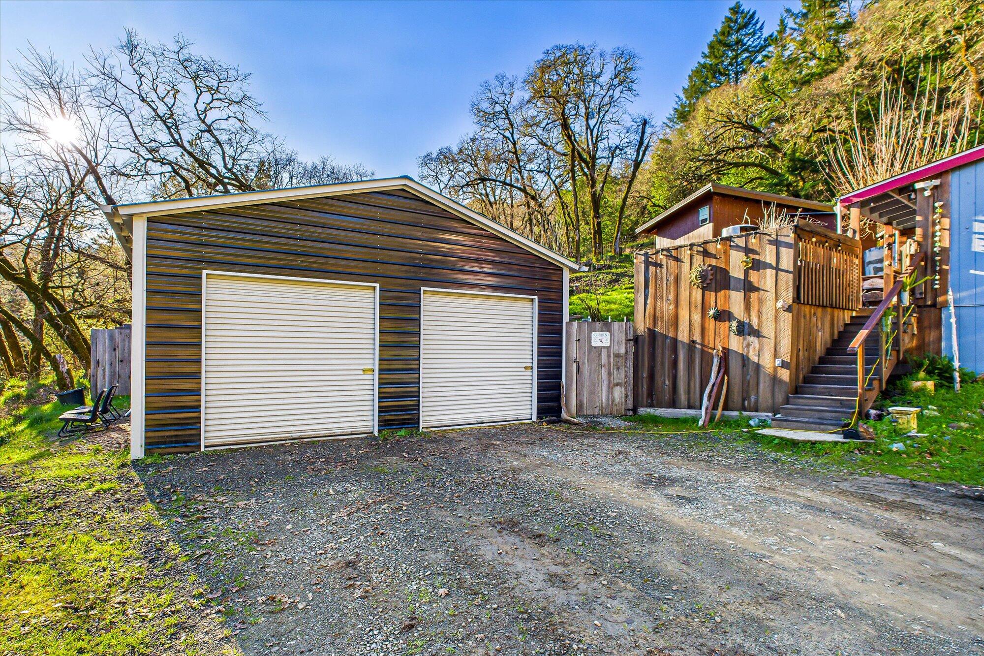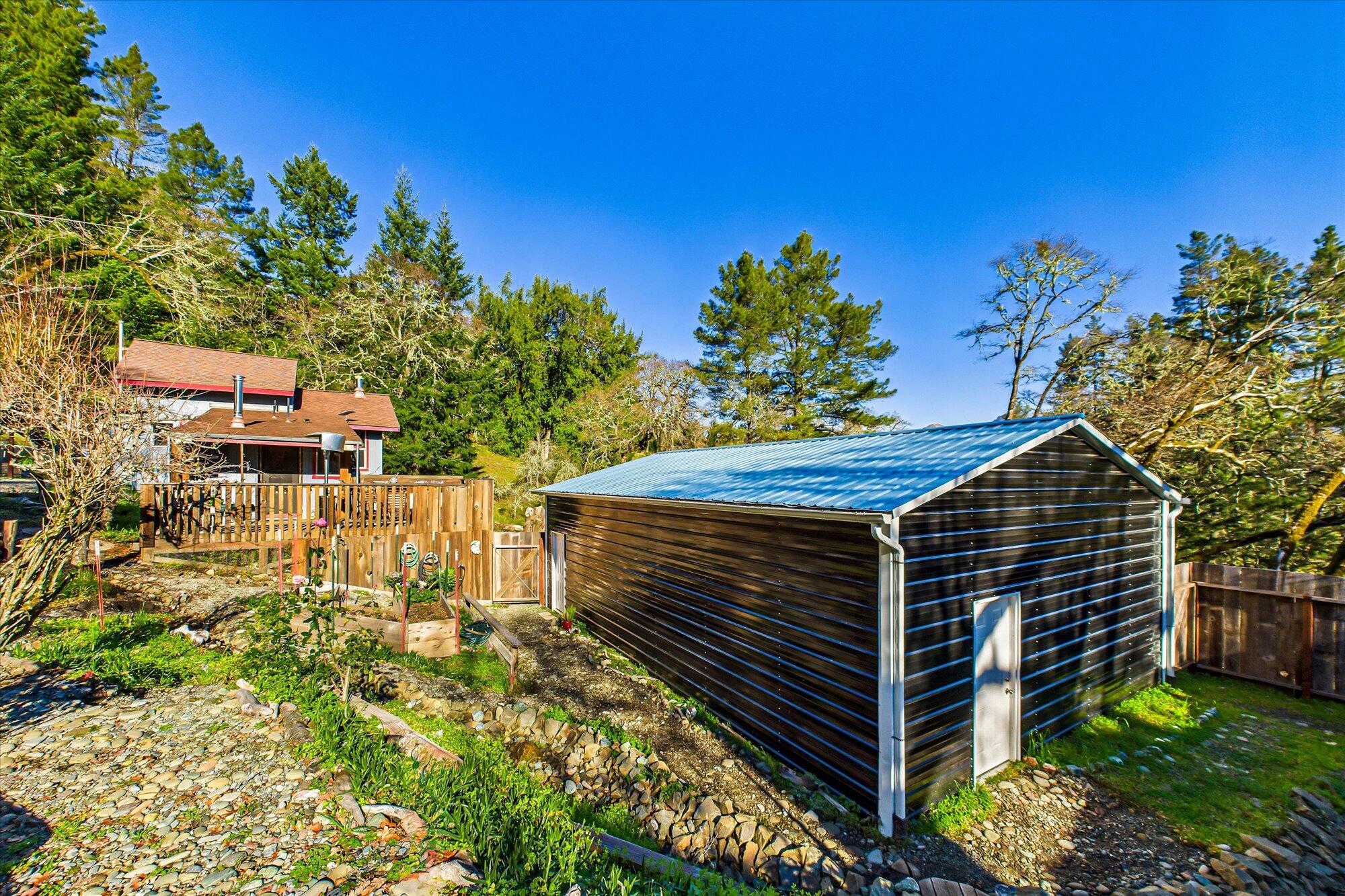 Charming Homestead on 23 Acres Near Garberville Tucked into a peaceful family neighborhood just minutes from Garberville, this 23-acre homestead offers the perfect blend of comfort, privacy, and functionality. The light-filled three-bedroom, two-bath home features an open living, dining, and kitchen layout with a warm, cozy feel—ideal for both everyday living and entertaining. Inside, you'll find thoughtful custom details throughout, including redwood slab countertops and shelfs, custom cabinetry accented with Eel River tumbled rock handles, and beautifully tiled Eel River stone transitions and custom hearth. Two gas and two wood-burning fireplaces add warmth and ambiance, while wood floors and newer, water-resistant, double-padded carpet in the bedrooms provide comfort and durability. Energy-efficient Bali blinds, a built-in four-foot wall safe, and a custom etched kitchen pan holder complete the interior upgrades. The kitchen and laundry are equipped with newer LG appliances, including refrigerator, dishwasher, range, washer, and dryer, along with a newer water heater, Ruvati sink, and Kraus faucet. Outside, the land truly shines. A mature and diverse orchard includes apple, pear, cherry, plum, fig, citrus, walnut, blueberry, blackberry, and thicket plum trees. The fully fenced, tiered garden is thoughtfully designed with French drains throughout the property to ensure excellent drainage year-round and is fed by large water tanks. Water security is exceptional, with multiple springs feeding a comprehensive system that includes a jet pump, pressure tank, whole-home filtration with UV filter, and approximately 14 water tanks providing a minimum of 38,000 gallons annually. All components are housed in a newer, dedicated shed, with newly run water lines throughout the property. Additional features include a pond, a small livestock barn, multiple storage sheds, a 10x24 outbuilding, and a large outdoor fire pit perfect for gatherings and seasonal burns. A one-year-old four-car tandem metal garage on a concrete pad offers ample space for vehicles, tools, or projects. PG&E power, a newer roof, and well-maintained infrastructure round out this exceptional offering. This is a rare opportunity to enjoy a turn-key rural lifestyle with abundant water, established gardens, and custom craftsmanshipjust a short drive to town. Schedule your private showing with your favorite realtor today.