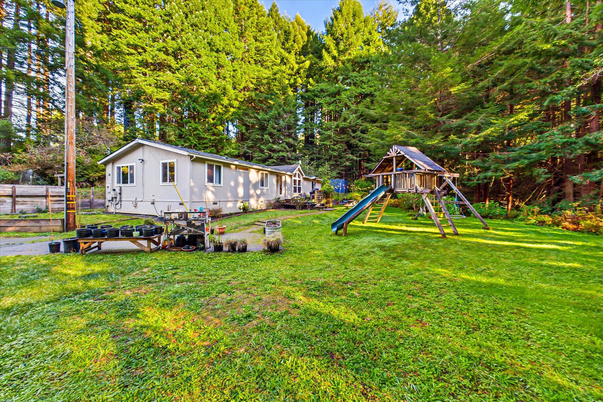 This three bedroom home is magically situated down a private lane in the coveted Jacoby Creek School District. Surrounded by Redwoods and lots of privacy this manufactured home has designer finishes. The open kitchen has luce di luna quartzite counters, a farm house sink, and upgraded kitchen aid appliances. Laminate floors, vaulted ceilings, a wood stove and custom tile work can be seen throughout, all tied together under a Brand New Roof. A lush lawn, fire pit, outdoor storage, and a three car garage add to the livability of this very special property.
