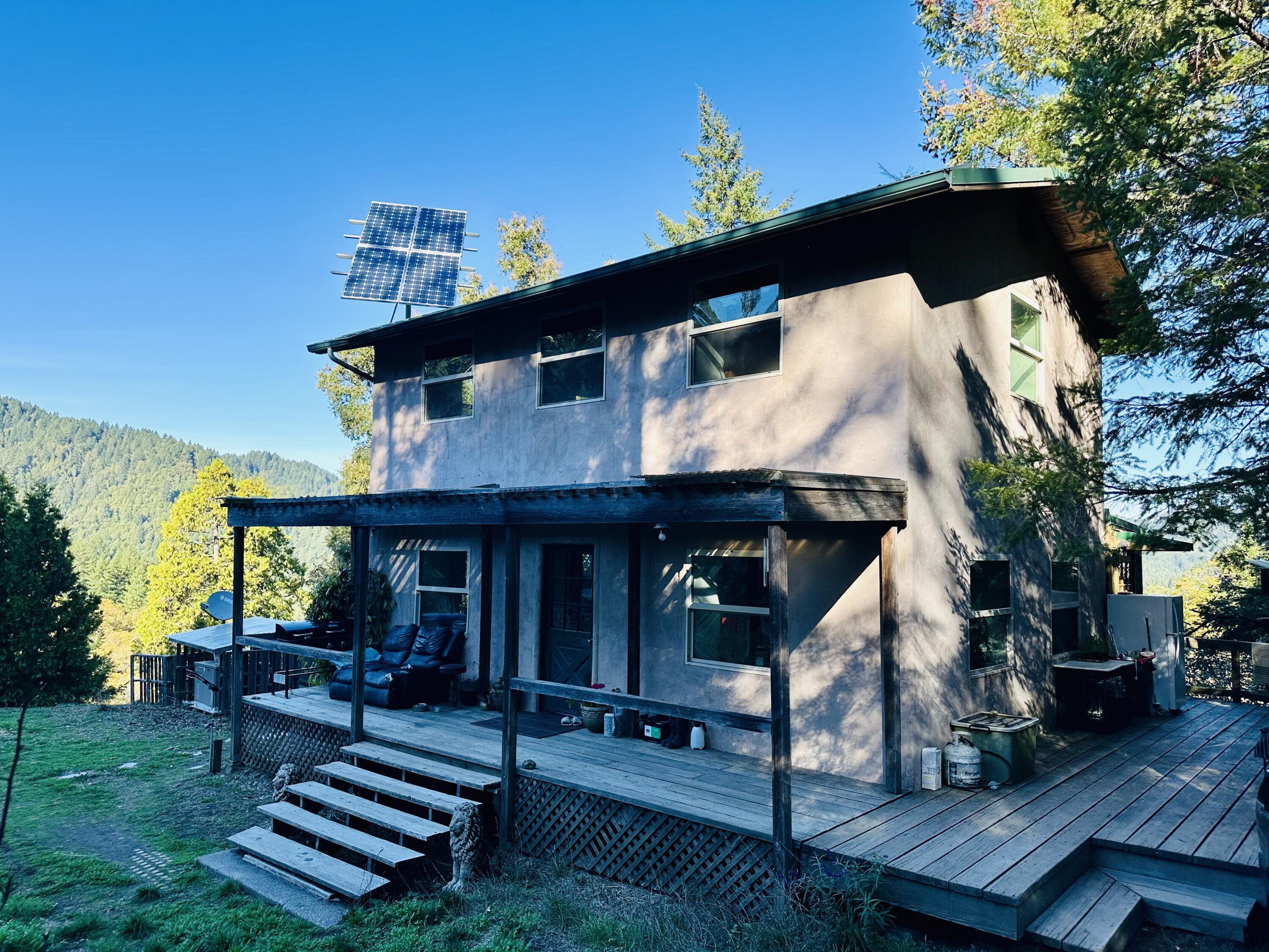 Custom straw bale home with stunning views in Salmon Creek. Set on 40 acres of rolling hills, oak meadows, and breathtaking scenery, this unique two-story residence features 2 bedrooms and 1 bathroom. Enjoy the arched entryways, abundant natural light, and mountain views from every window. The downstairs area includes a spacious open kitchen, a living room, and a bathroom. Upstairs, you'll find two well-placed bedrooms adorned with warm wood accents. Outside, discover custom rock work, off-grid living, and spring water. Additionally, there is an ADU with 1 bedroom and 1 bathroom, complete with a lovely deck to savor the views. A separate barn structure is also available for storage, animal or projects. Affordable home in a great community! Take a look today.