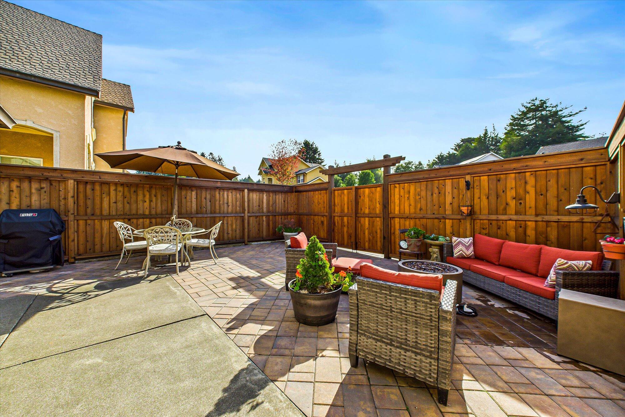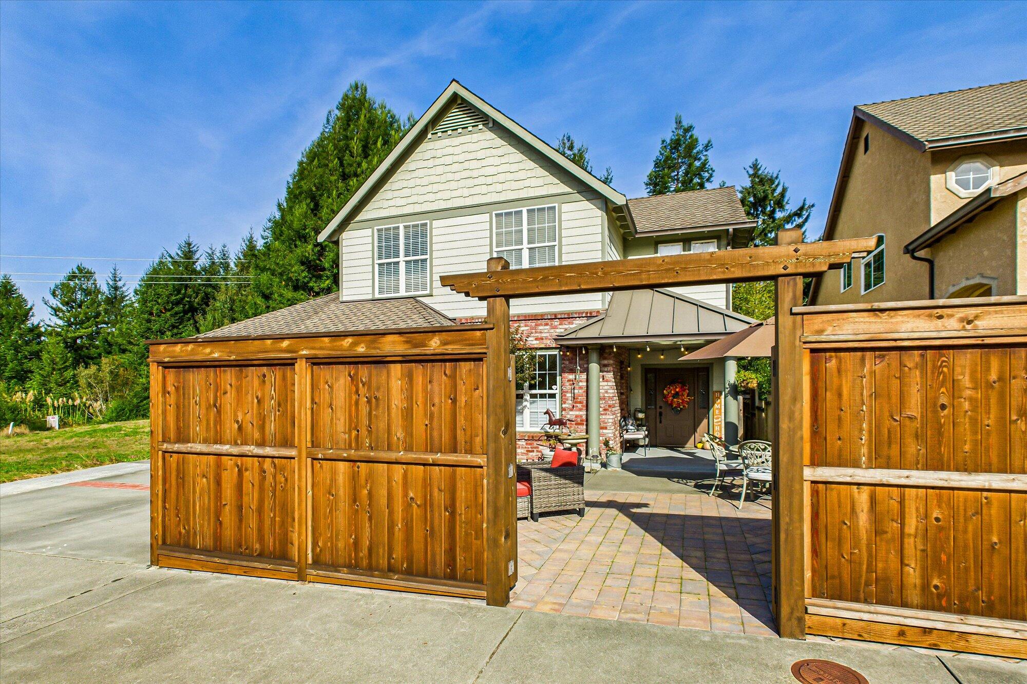 Let the redwood canopy and serenity of the ferns lead you to your happy place, home atop the hill in desirable Sunny Cutten. This charming but elegant custom built, family home is conveniently located to schools, shopping and medical, and is a good fit for any lifestyle. Beautifully designed vaulted ceilings and a floor plan that offers all primary living downstairs. Three bedrooms, open living space and a full bath upstairs. This house is perfectly designed for large or shared families. Luxury private primary en suite downstairs. A private back yard for warm summers and cozy winters and a stunning courtyard offering privacy and extending space. Both provide low maintenance landscaping. Private, gated community with no HOA. New carpet, Heater, water heater, dishwasher and disposal are new in 2023. Home equipped with automatic sprinkler system, and alarm system. Home is turn key ready. Home inspections and pest report are two years old and found under docs in MLS.