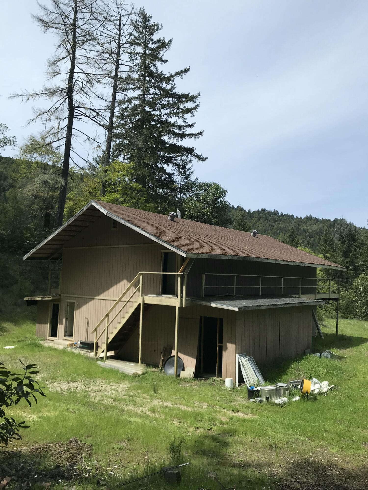 This 40+/- acre off grid paradise consists of two parcels straddling the HUM/MENDO county line. 17 acres is in Mendocino County, and 23 acres is in Humboldt. Together, both parcels create the perfect mix of wooded acreage and usable flat land. There is a well built 3,550 square foot, 2 story Ag building on the lower flat ready to customize to fit your needs. With 2 springs at the top of the property and 14k gallons of hard tank water storage in the shade on the upper flat, developing a gravity fed water system will be a breeze. Immerse yourself in nature and wildlife just a 45 minute drive from Garberville and enjoy the endless valley views to Pratt mtn. and beyond. Don't wait! Come see all this one of a kind rural property has to offer. Owner financing available for qualified buyer