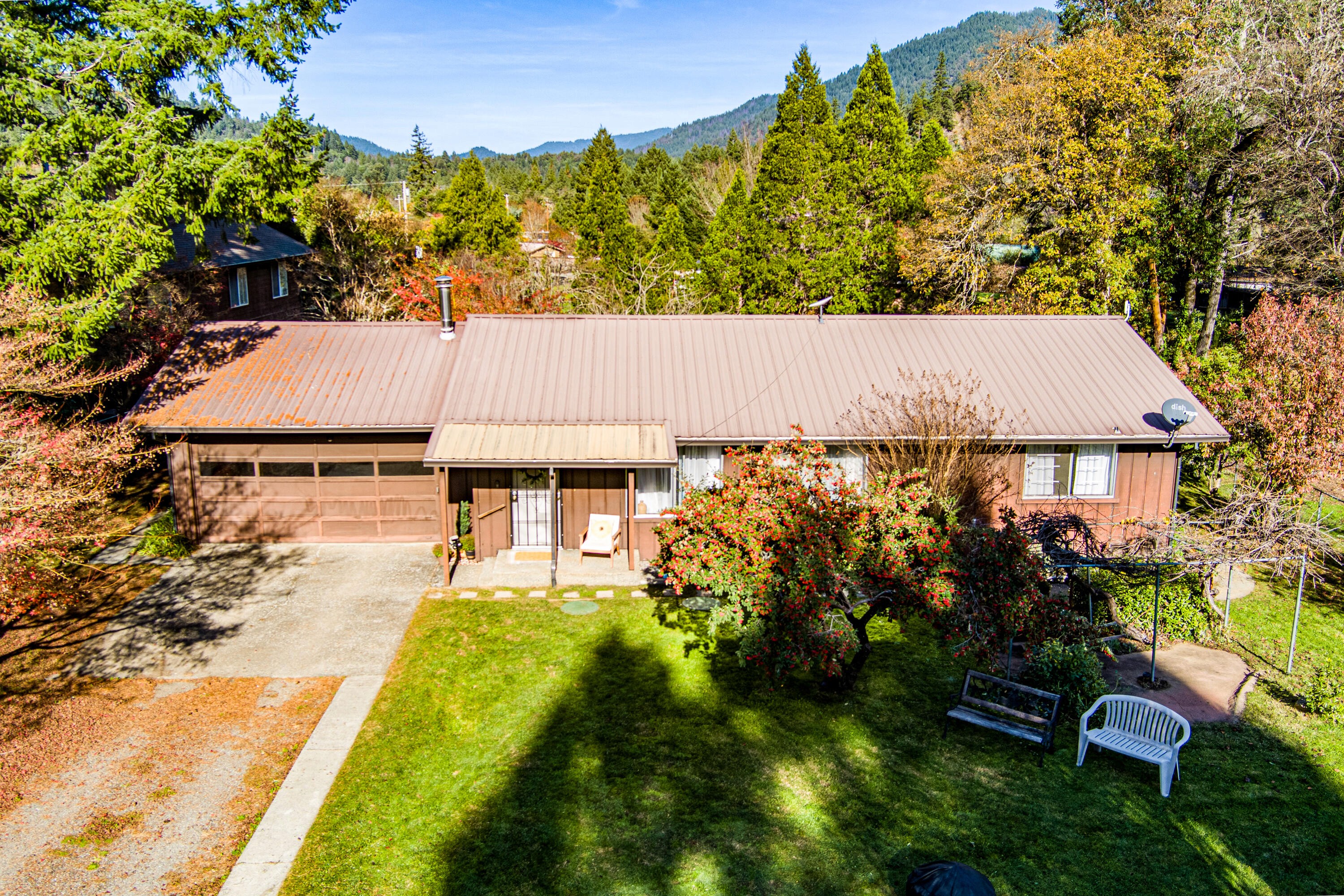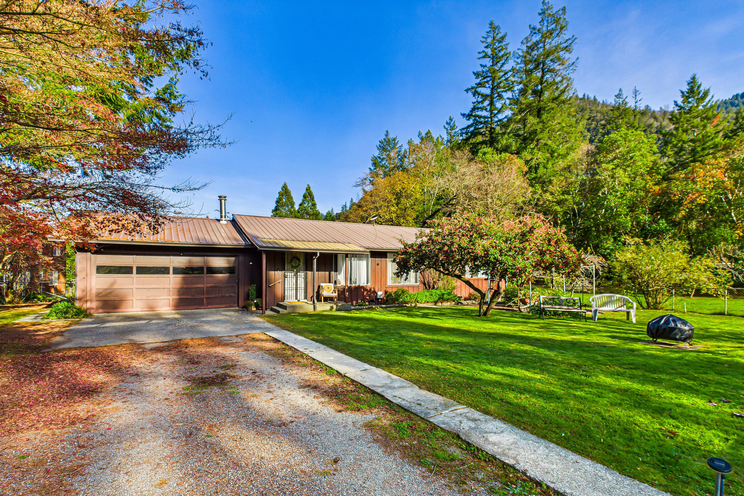 Well-Maintained Willow Creek Home on Over Half an Acre. This charming 2 bedroom, 2 bathroom single-story home offers 1,232 sq ft of comfortable living space on a 0.54-acre lot, less than 2 miles from town. Built in 1981 and recently updated, the home features new flooring throughout the kitchen, living room, and bathroom, plus a freshly painted interior. Enjoy the durability of a metal roof, a covered deck off the kitchen, and a 2-car garage with direct entry and ample cabinet storage. The property also includes a storage shed, sprinkler system, fruit trees, and partial fencing. A move-in-ready Willow Creek retreat with plenty of outdoor space and convenient proximity to town. Schedule your appointment Today!
