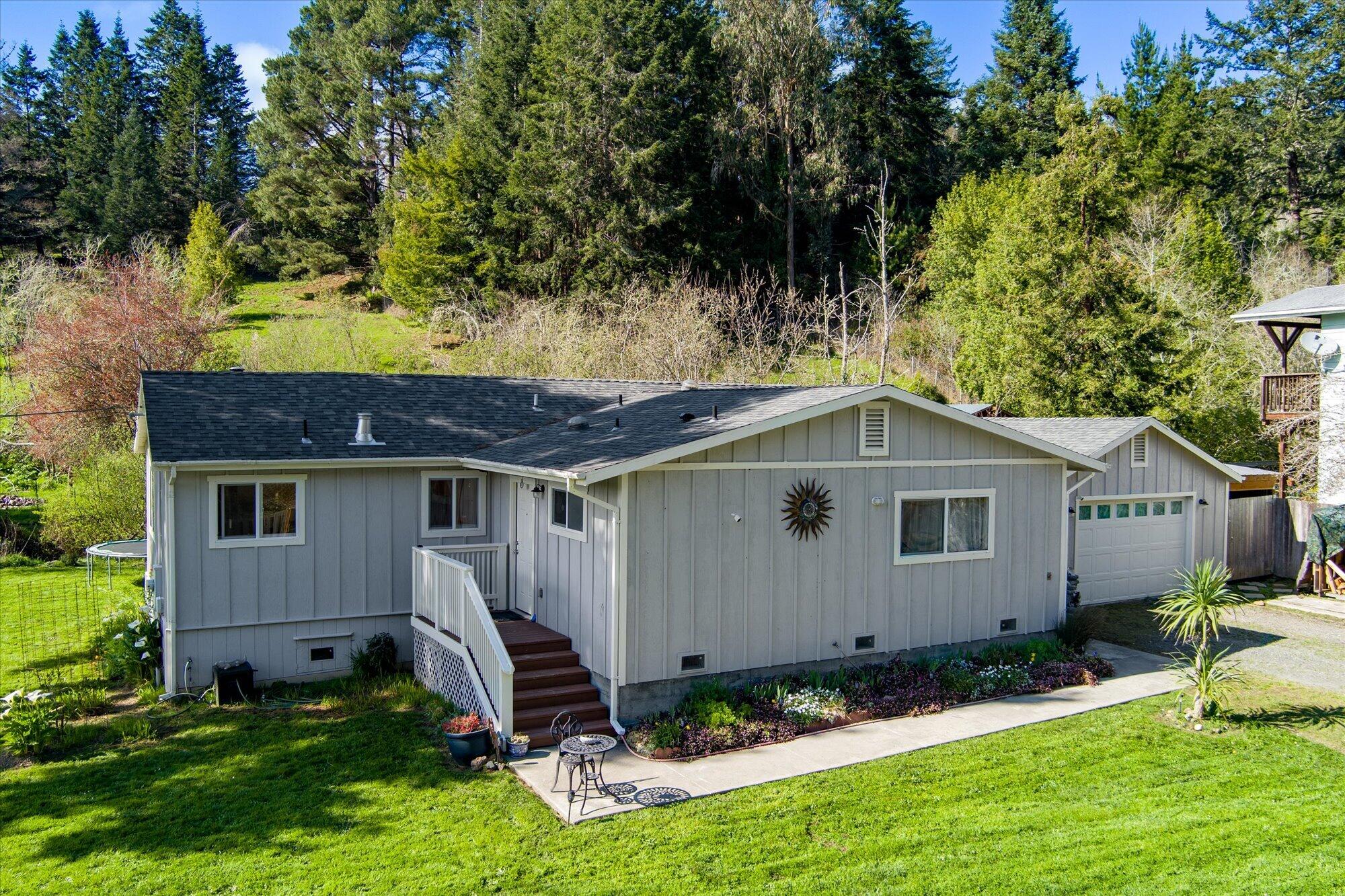 Set within a coveted sunny microclimate, this enchanting 1.89-acre homestead offers the kind of setting buyers dream about. Gated and fully fenced, the property provides a true sense of privacy and retreat. The newly remodeled 2-bedroom, 2-bath home is warm, inviting, and filled with natural light. The kitchen features beautiful wood cabinetry paired with stainless steel appliances, creating a space that feels both functional and timeless. A cozy woodstove anchors the living area, complemented by nature-inspired elements including rich wood tones and slate accents that bring warmth and texture throughout the home. An energy-efficient forced-air heating system adds comfort and convenience year-round, while a dedicated laundry room with utility sink adds everyday practicality. Thoughtful updates blend comfort and simplicity, allowing the surrounding landscape to take center stage. Outside, the property embraces a genuine homestead lifestyle. Fruit trees abound, a deer-fenced garden area invites you to grow your own food, and a chicken coop with run is ready for your feathered companions. Just beyond the back deck, Little Palmer Creek winds gently behind the home, creating a peaceful, storybook backdrop. A sturdy, artsy bridge provides access across the creek to a stretch of usable AG land. The property is cross-fenced for livestock, offering flexibility for animals, projects, or simply enjoying wide open space--an ideal canvas for your four-legged friends. A detached, finished two-car garage/shop is accessible from the laundry room and gated on both sides so you have privacy and security moving from the garage to the home. The garage/shop adds tremendous versatility, perfect for hobbies, creative pursuits, storage, or workspace. A rare combination of sunshine, privacy, beauty, and possibility. Call your favorite Humboldt County Realtor today for a private showing!