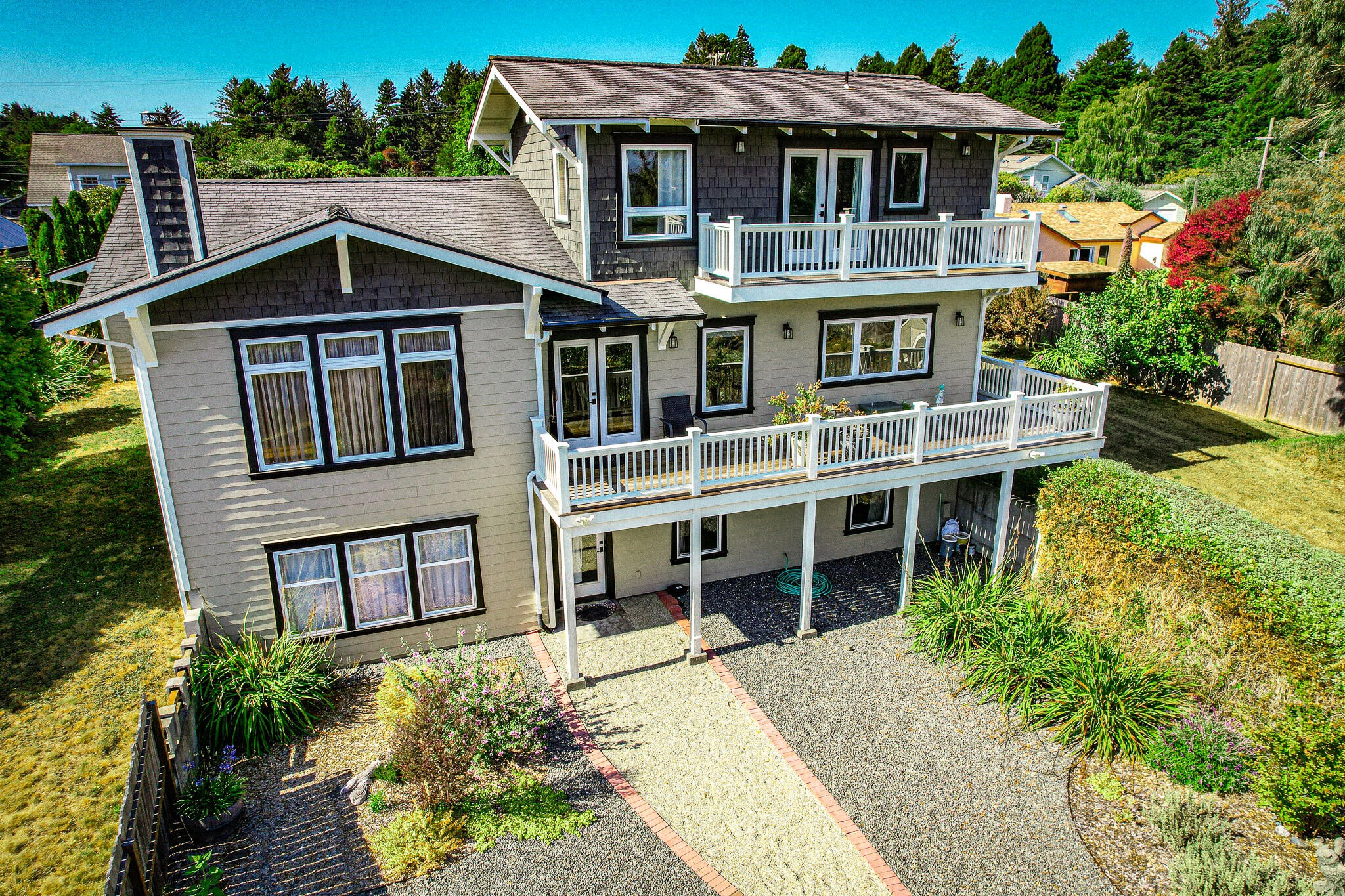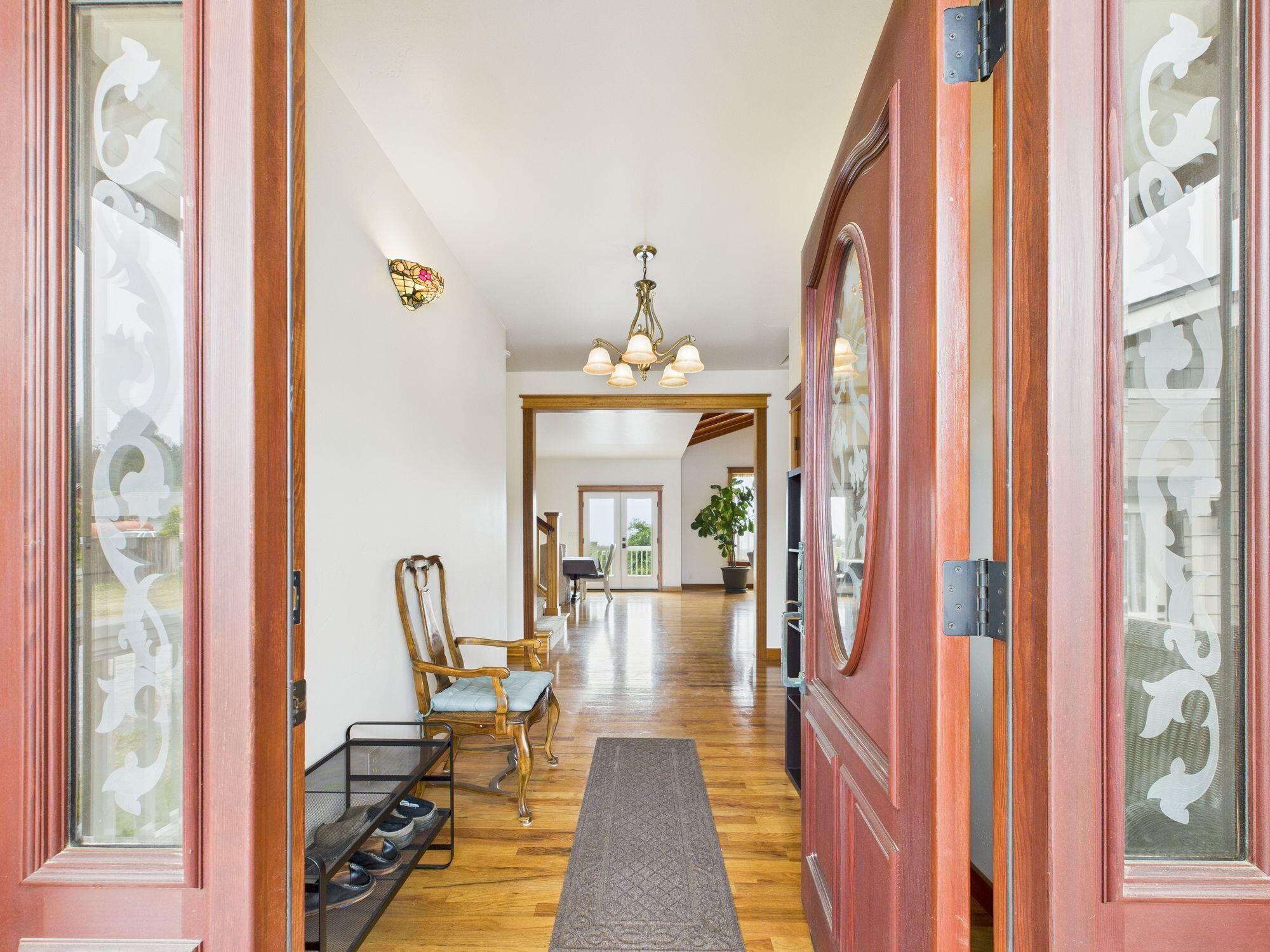 Custom-built in 2006, this freshly painted, unique home offers a top-level primary suite with a private deck and stunning views to Clam Beach. The main entry level features an open layout, gourmet kitchen, and wraparound deck with ramp access to the driveway. The daylight basement includes two spacious rooms, built-in desk, and a utility room housing radiant floor heating and on-demand hot water. The basement opens to a gated yard with space to relax or garden. Just minutes from Moonstone Beach—your coastal escape awaits. Call today for a showing!