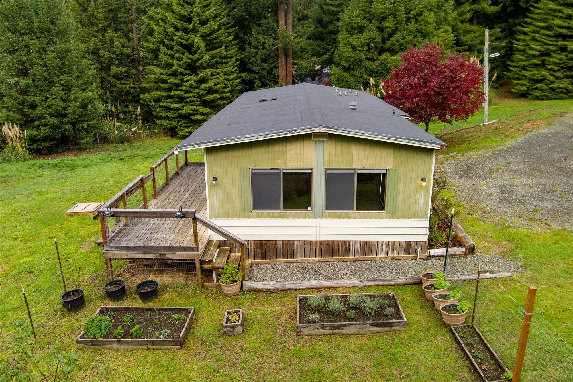 Discover peace, privacy, and usable acreage in this beautifully remodeled 1974 mobile home situated on 2.43 fully fenced private acres in desirable Bayside. This property offers the perfect blend of comfort, nature, and functionality. 🏡 Home Features 2 bedrooms, 2 bathrooms Updated and remodeled interior Light-filled living room with access to a large view deck overlooking the land and surrounding redwoods Functional kitchen layout and comfortable living spaces 🌲 Land & Exterior Useable 2.43 acres—ideal for gardening, animals, or hobby farming Surrounded by Bayside's iconic redwood views Fully fenced property, offering privacy and security 560 sq ft detached garage for storage, workshop, or parking Open space with multiple potential uses