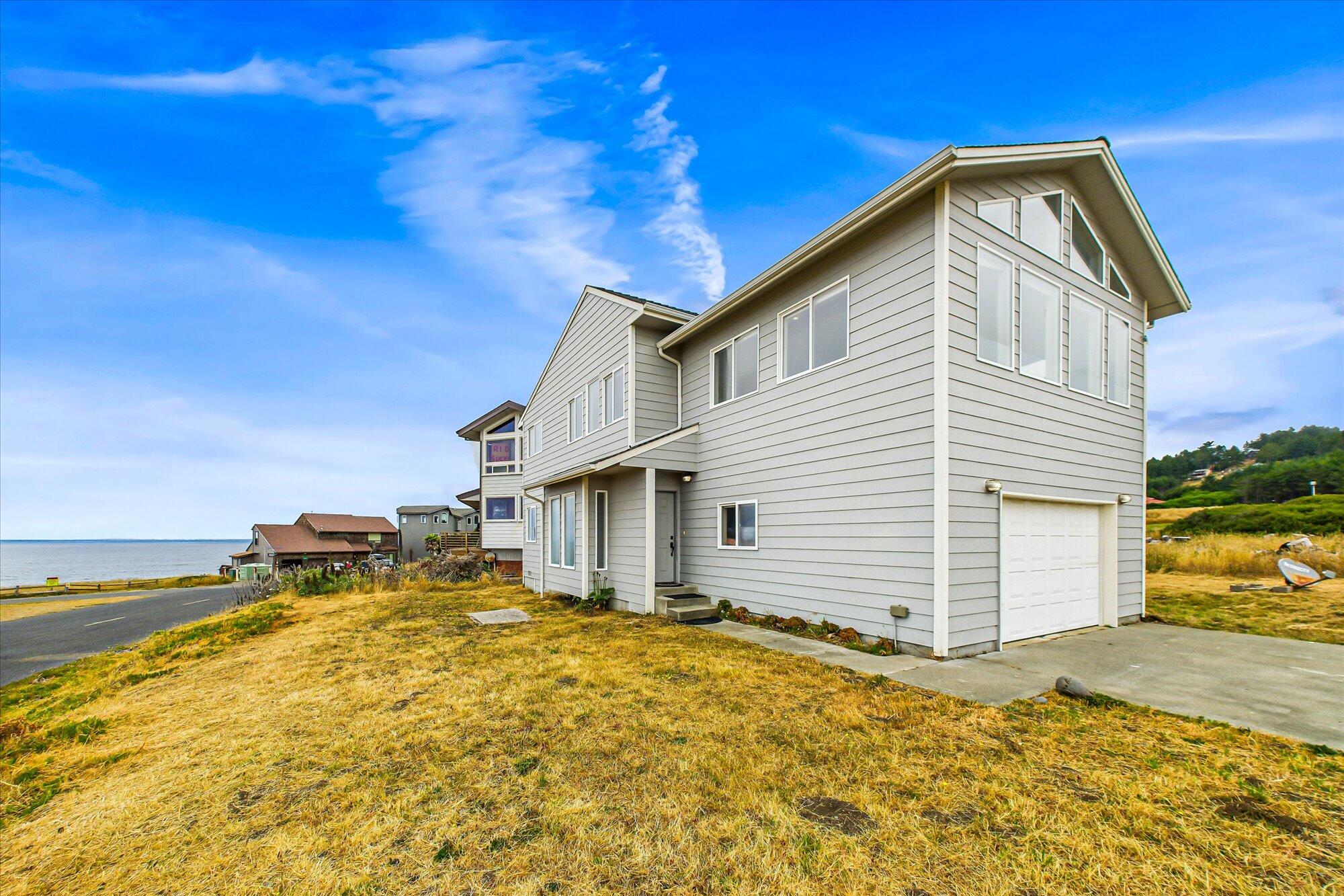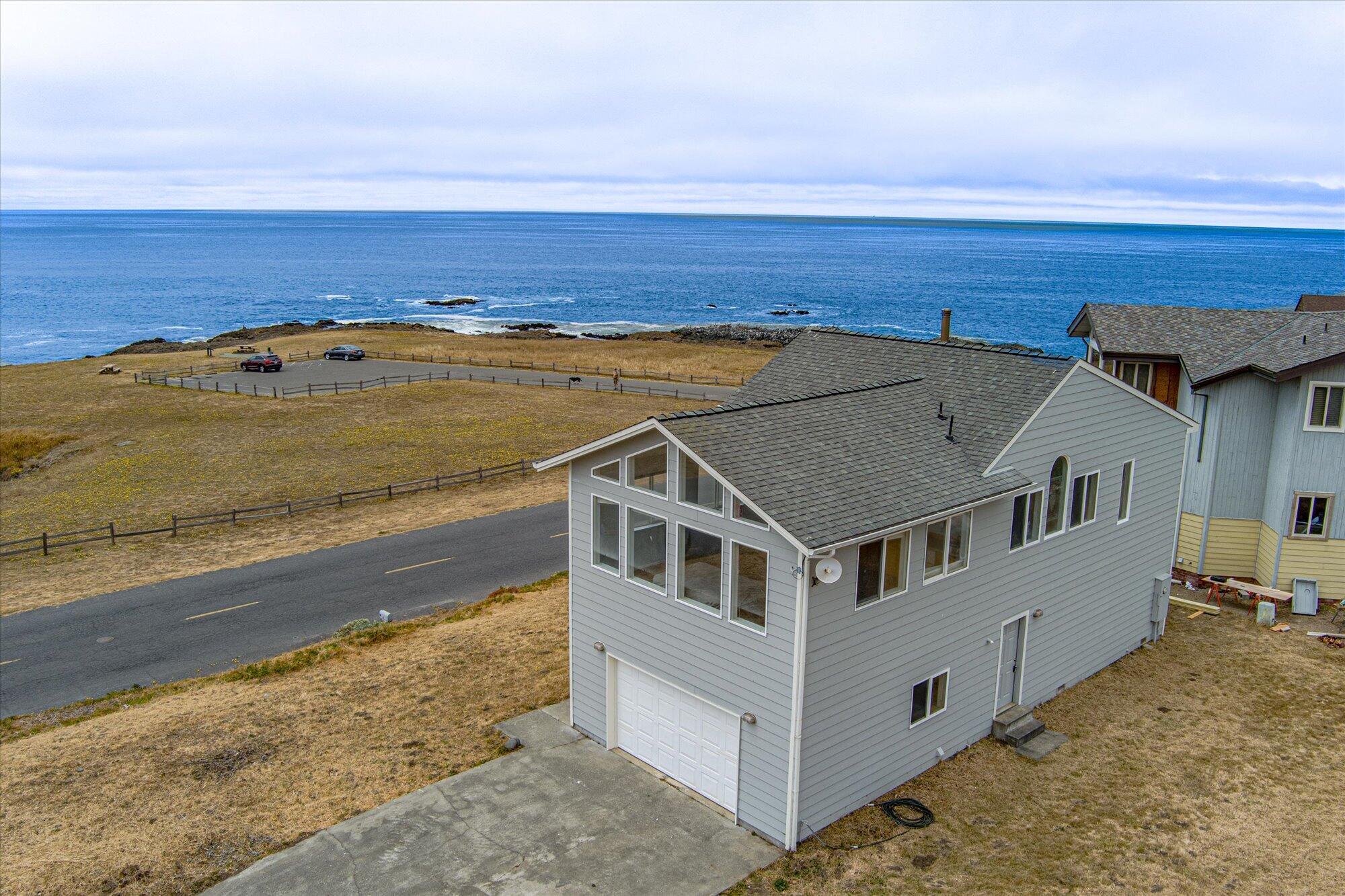 Welcome to 5 Clam Ct - where the Pacific meets your front door. Perched just above the shoreline in Shelter Cove, this stunning 3-bedroom, 2-bath home offers truly unobstructed ocean views that will never be compromised thanks to its rare position near Abalone Point. With panoramic vistas from nearly every window, you'll feel immersed in the beauty of the Lost Coast. The home features vaulted ceilings and a light-filled layout that brings in the sights and sounds of the sea. Upstairs, a spacious primary bedroom with a cozy kitchenette is the perfect place wake up to waves and sip coffee with a front-row seat to the horizon. Downstairs, the full kitchen opens to a welcoming living space with a gas stove, and vaulted ceilings-- ideal for gathering or simply soaking up the coastal char Whether you're looking for a full-time residence, vacation getaway, or income-generating retreat, this 1,500 sq ft gem delivers comfort, character, and views that stretch on forever.